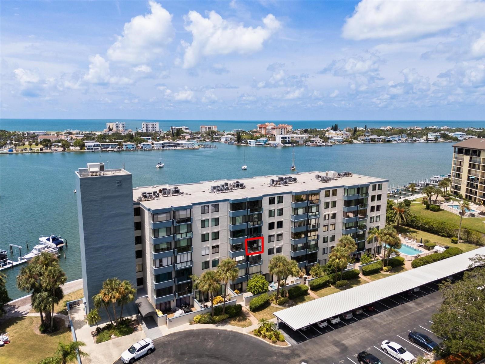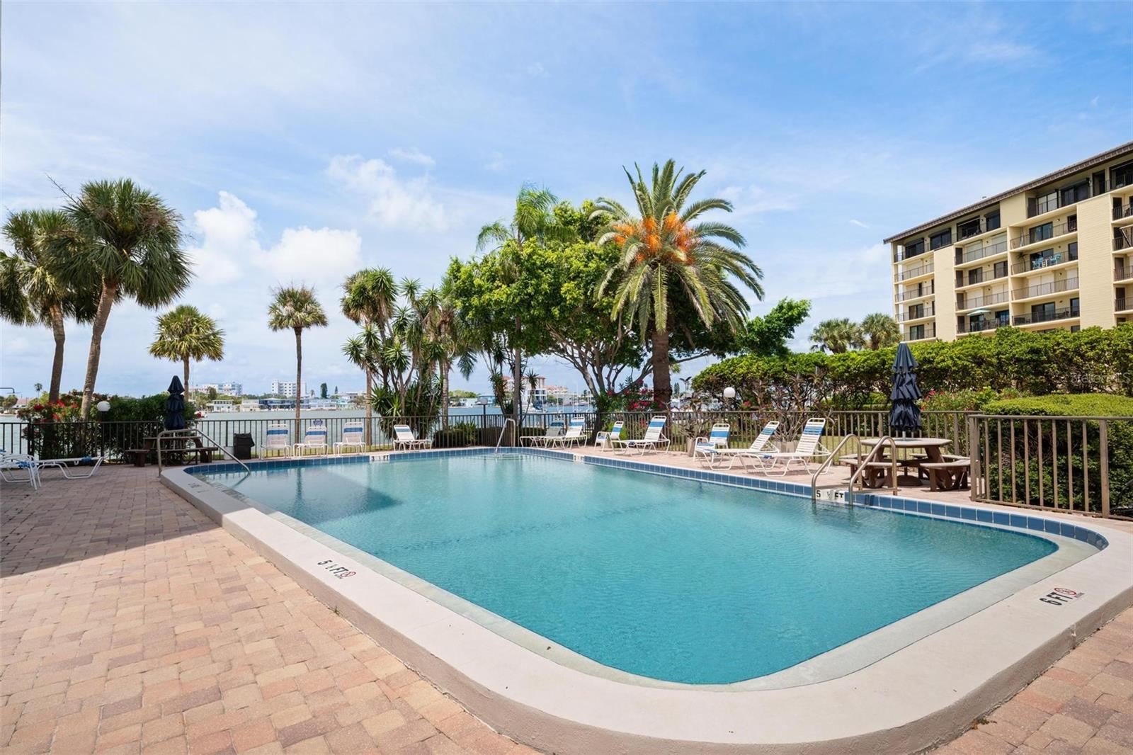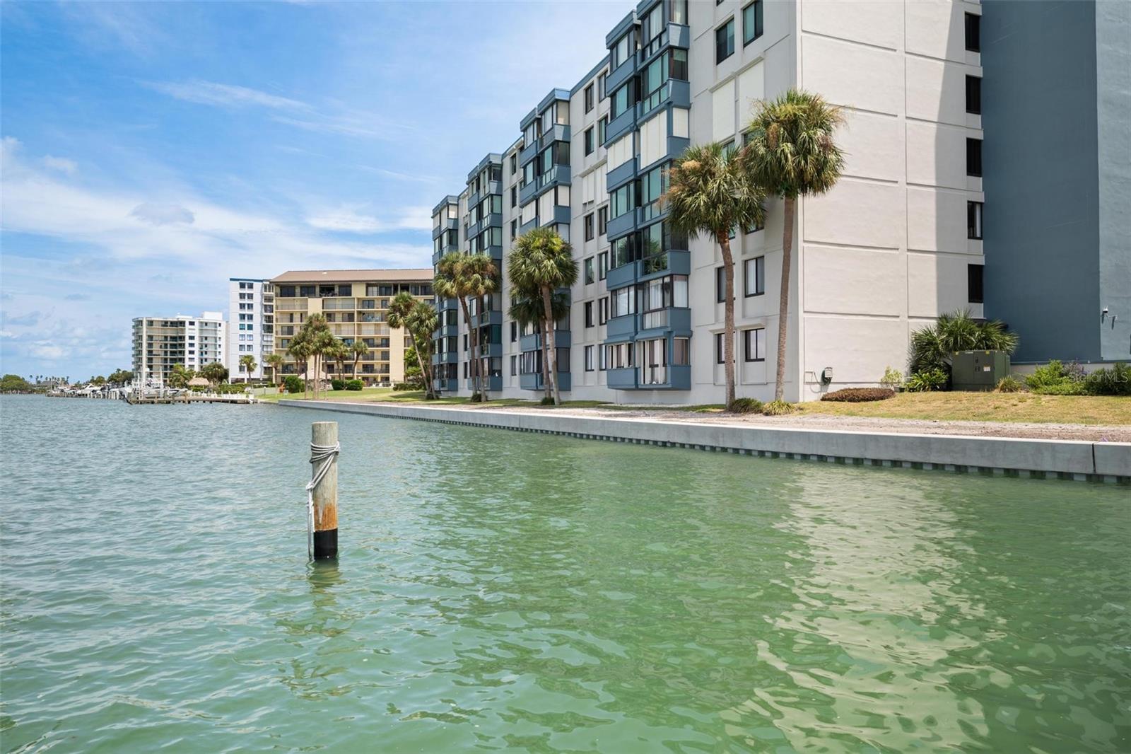 WOW! NO HURRICANE DAMAGE OF HELENE OR MILTON.. The strong building did well and this unit is still ready for move in.. Boat lifts available for rent to owners -Ease on down to an Island Estate condo favorite in Clearwater Beach area for all the right reasons. Live large in this moderately updated 2-bedroom 2 full bath condo with furnishings and ample square footage. A wonderful way to start the day as casting morning light provides a peaceful lovely day. Fun for entertaining with an expansive kitchen and built-in bar area. Large walk-in closet off the kitchen for storage. larger primary bedroom with walk-in closet. The video shows it all! This condo provides choice-living with a waterside pool and grilling area. NEW SEAWALL. (Something worth inquiring when investing in waterside condos). View boating activity on Mandalay Channel (west gulf view) while lounging or entertaining bay level pool. Boating enthusiasts have a place to call home with rentable boat slips for the owners along with fishing deck and kayaks. Finish your afternoon swim and walk over to your rented boat slip or available kayaks and head across the water for more fun. Kayak, paddle, jet ski or sail across the bay to visit your favorite restaurants. Boat parking available at the famous Frenchy's restaurant. Other beach/bay conveniences from this condo include Hogan's, Palm Pavilion, Salty's, Sandpearl Resort Hotel. So many ways to get to the beach no need for a car! Living on Island Estates, you may simply cruise around using the trolley or bike down the block to Island Way Bar and Grill, stop in for a pedicure at one of the nail salons, or do your shopping at PUBLIX, (the beach's only main grocer) Clearwater Public Beach Recreation Center and library sits directly across water from condo. Bring your best pickle ball game! So much fun so little time!
