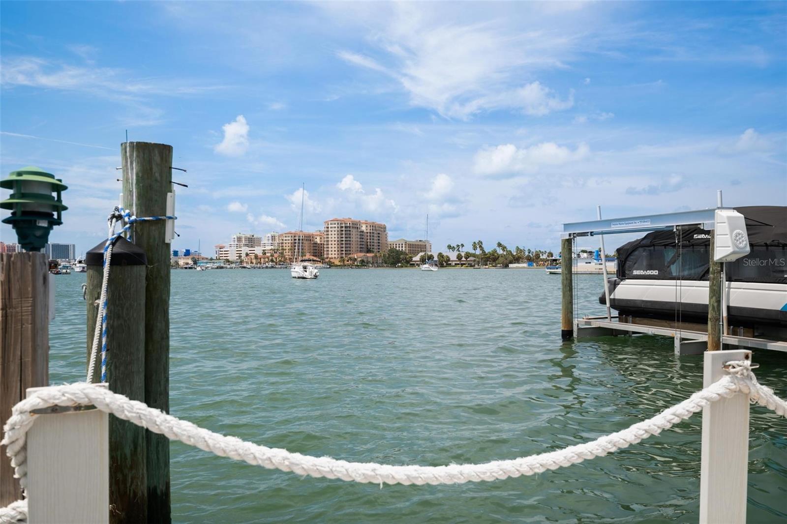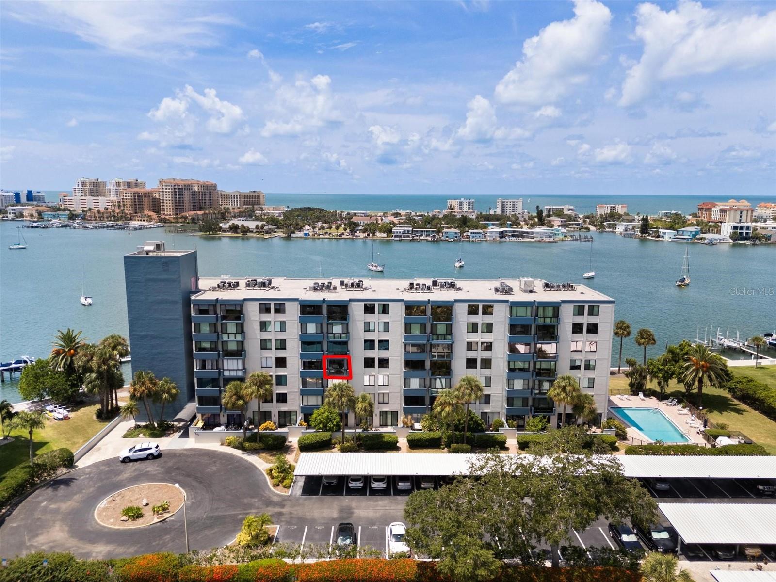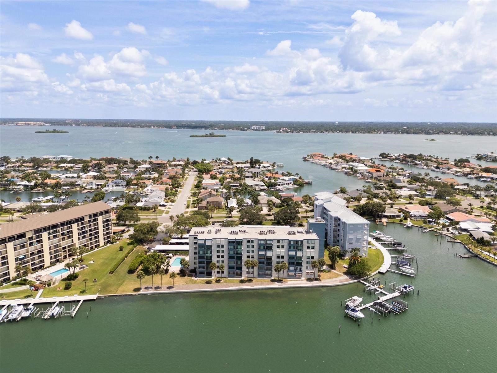 WOW! NO HURRICANE DAMAGE OF HELENE OR MILTON.. The strong building did well and this unit is still ready for move in.. Boat lifts available for rent to owners -Ease on down to an Island Estate condo favorite in Clearwater Beach area for all the right reasons. Live large in this moderately updated 2-bedroom 2 full bath condo with furnishings and ample square footage. A wonderful way to start the day as casting morning light provides a peaceful lovely day. Fun for entertaining with an expansive kitchen and built-in bar area. Large walk-in closet off the kitchen for storage. larger primary bedroom with walk-in closet. The video shows it all! This condo provides choice-living with a waterside pool and grilling area. NEW SEAWALL. (Something worth inquiring when investing in waterside condos). View boating activity on Mandalay Channel (west gulf view) while lounging or entertaining bay level pool. Boating enthusiasts have a place to call home with rentable boat slips for the owners along with fishing deck and kayaks. Finish your afternoon swim and walk over to your rented boat slip or available kayaks and head across the water for more fun. Kayak, paddle, jet ski or sail across the bay to visit your favorite restaurants. Boat parking available at the famous Frenchy's restaurant. Other beach/bay conveniences from this condo include Hogan's, Palm Pavilion, Salty's, Sandpearl Resort Hotel. So many ways to get to the beach no need for a car! Living on Island Estates, you may simply cruise around using the trolley or bike down the block to Island Way Bar and Grill, stop in for a pedicure at one of the nail salons, or do your shopping at PUBLIX, (the beach's only main grocer) Clearwater Public Beach Recreation Center and library sits directly across water from condo. Bring your best pickle ball game! So much fun so little time!