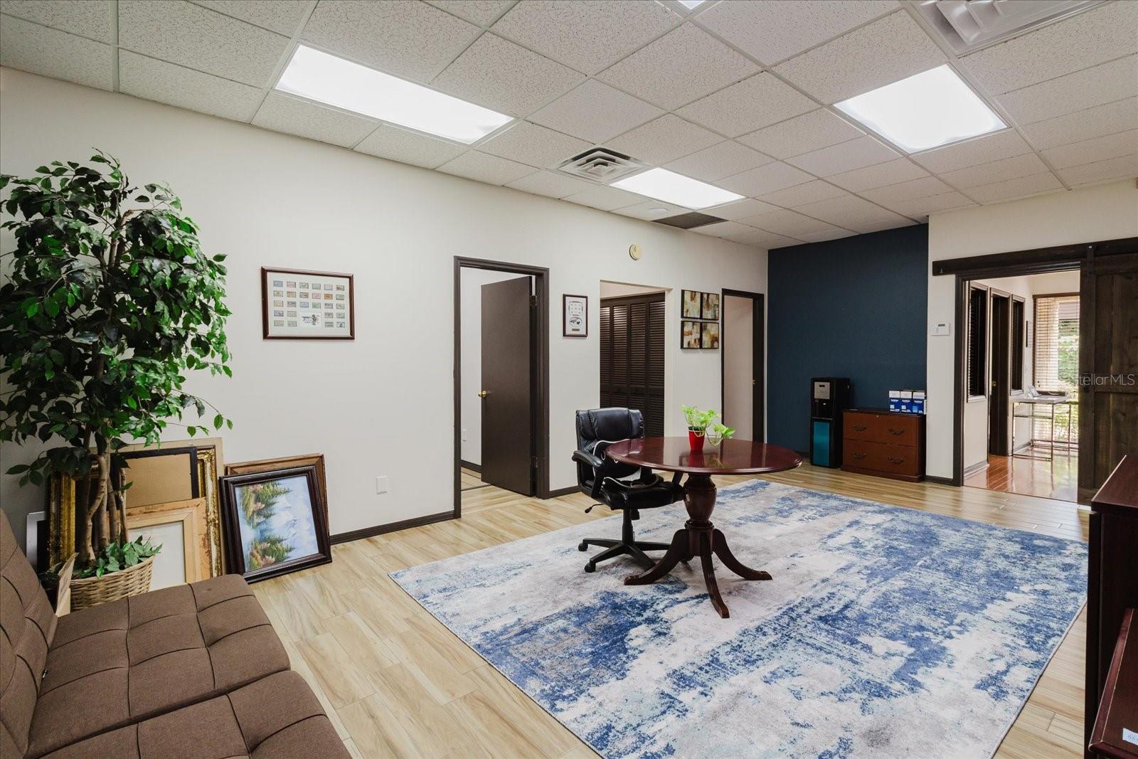 Perfect location! Druhill professional office condos are right in Downtown Clearwater near the Courthouse and Morton Plant. Units 707 & 708 have been combined to create an optimally sized 1,935 sq/ft space with 5 private offices, a conference room, an additional meeting area, two bathrooms (one includes a shower), a kitchen, a lobby, and an additional generously sized storage room (could be a smaller 6th private office). The park is well maintained and offers ample parking (4 spaces per 1,000 sq/ft). Condo fees of $1,181 include building maintenance, roof, landscaping, sewer, trash, water, management fees and reserves, and even liability and casualty insurance. This is a perfect opportunity for a medical office or professional office like a CPA or lawyer, or any organization's headquarters.