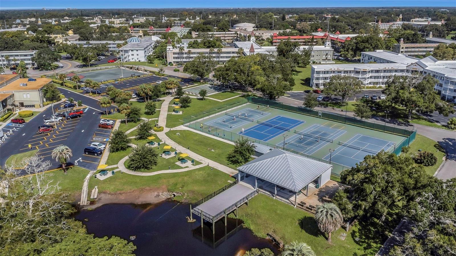 BEAUTIFUL 2 bed 2 bath CORNER UNIT condo on the 3rd floor. Walking into your Livingroom you will notice an ABUNDANCE OF NATURAL LIGHT and lush carpet and PLANTATION SHUTTERS and a separate space for dining. Your kitchen is remodeled with PLENTY OF COUNTER SPACE to please any chef! There is a BONUS ROOM that is very spacious with gorgeous views of mature green landscaping. The primary bedroom is large enough for a king bed, with lots of closet space and an en suite bath with step in shower. This unit is located near the eastside recreation center. On Top of the World is a 55 plus community with two activity centers and two private GULF COURSES with 9 and 18 holes free exclusively for resident owners. There are two swimming pools (one heated), an exercise room , fitness classes, dancing , clubs, craft and hobby rooms, socials, horse shoes, tennis, pickleball courts, cards, entertainment and billiards and grilling area. Let's not forget about the on site Good Karma Cafe and bake meals and snacks. A very PET FRIENDLY community with a fenced dog part and covered seating. Close to the beaches, transportation and restaurants. If financing 35% down is required . This is a leasehold estate deed.