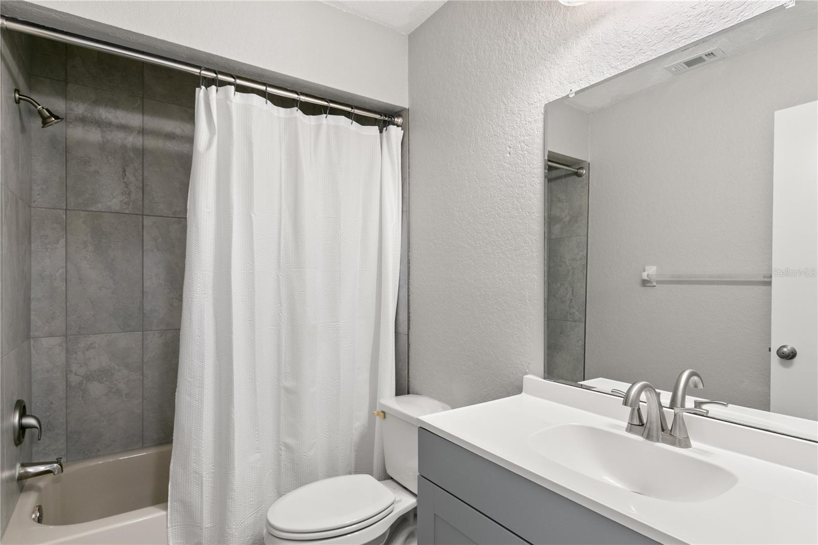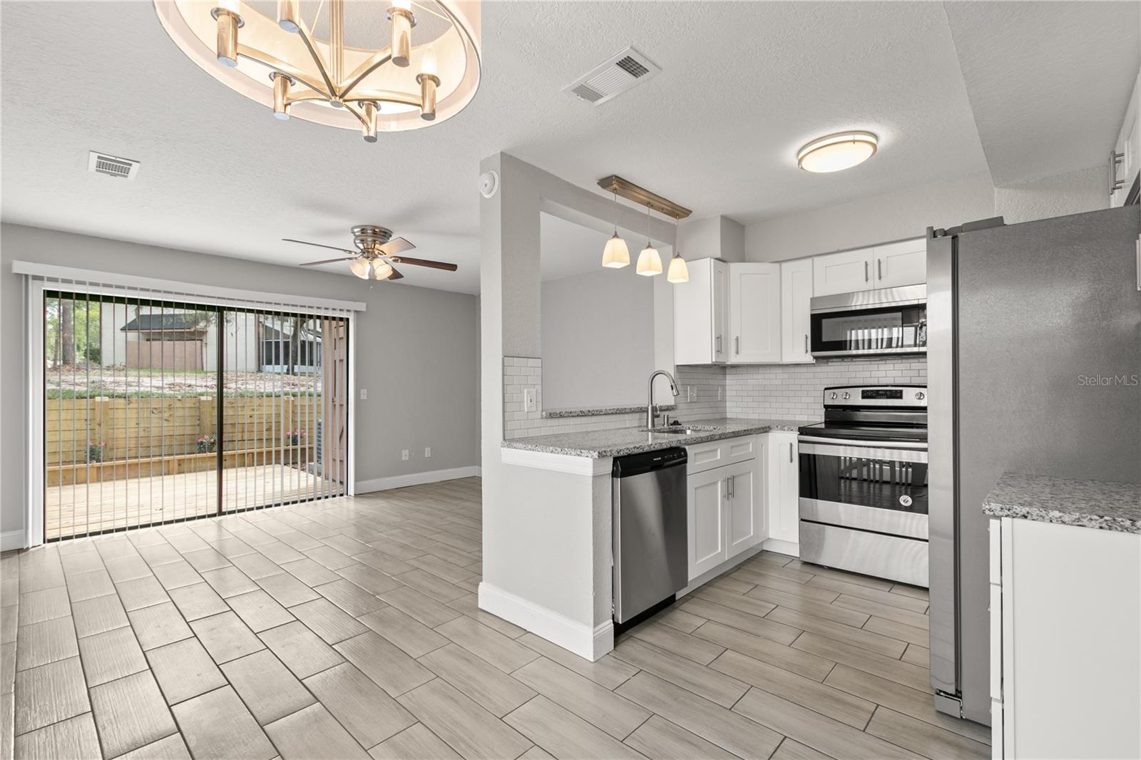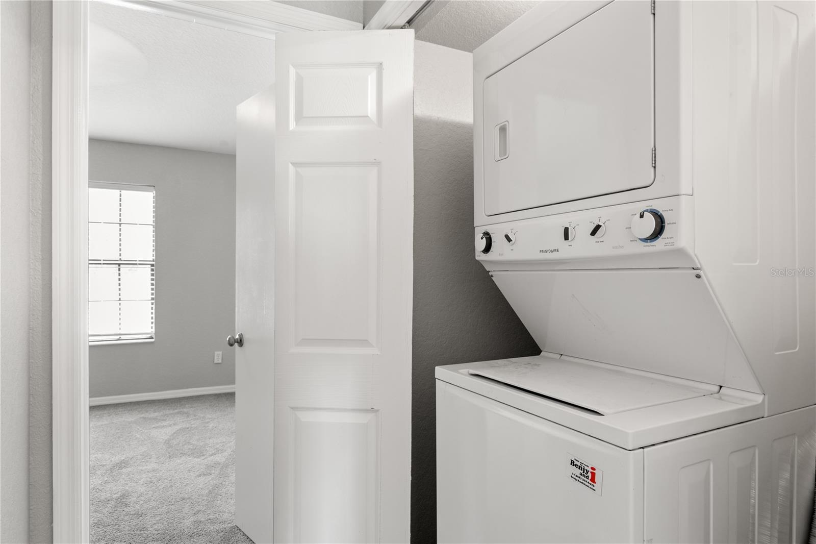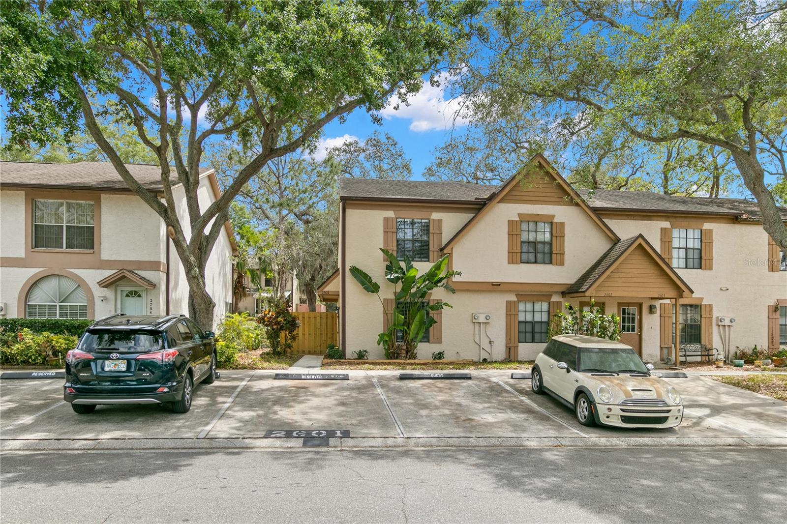 This 2-bedroom, 2.5-bath residence offers stylish upgrades, functional living space, and peace of mind with a seller-provided home warranty for the new owner's comfort and confidence. As you enter into the home you’ll immediately find yourself in a flexible living area featuring newer tile flooring that spreads itself throughout the main level. This area could be used as a second living room, office, craft room, or workout area. It flows seamlessly into a tastefully renovated kitchen with crisp white shaker cabinets, sleek stone countertops, and stainless steel appliances. Adjacent to the kitchen is a cozy family and dining area, perfect for entertaining. Sliding doors on the side and back of the home lead out to your private patios which also includes an outdoor storage closet. The first floor also includes a tastefully updated half bath. Upstairs, you’ll find two generous bedrooms, including a primary suite with soaring vaulted ceilings, a large wall closet, a linen closet, and an updated en suite bathroom. The second bedroom features a large closet and easy access to the full guest bathroom with a tub/shower combo and updated tile floors and tiled shower wall. The second floor also features a convenient laundry closet with stackable washer and dryer. The community offers a sparkling pool—ideal for enjoying the Florida lifestyle year-round. Brigadoon of Clearwater is situated in a fantastic location near Moccasin Lake Nature Park, Alligator Kapok Park, downtown Safety Harbor (approx 12 mins away), shopping, dining, and major roadways including US-19, providing quick access to Tampa and both airports. Don’t miss your opportunity to own this move-in ready gem in one of Clearwater’s most convenient neighborhoods. Schedule your private showing today!