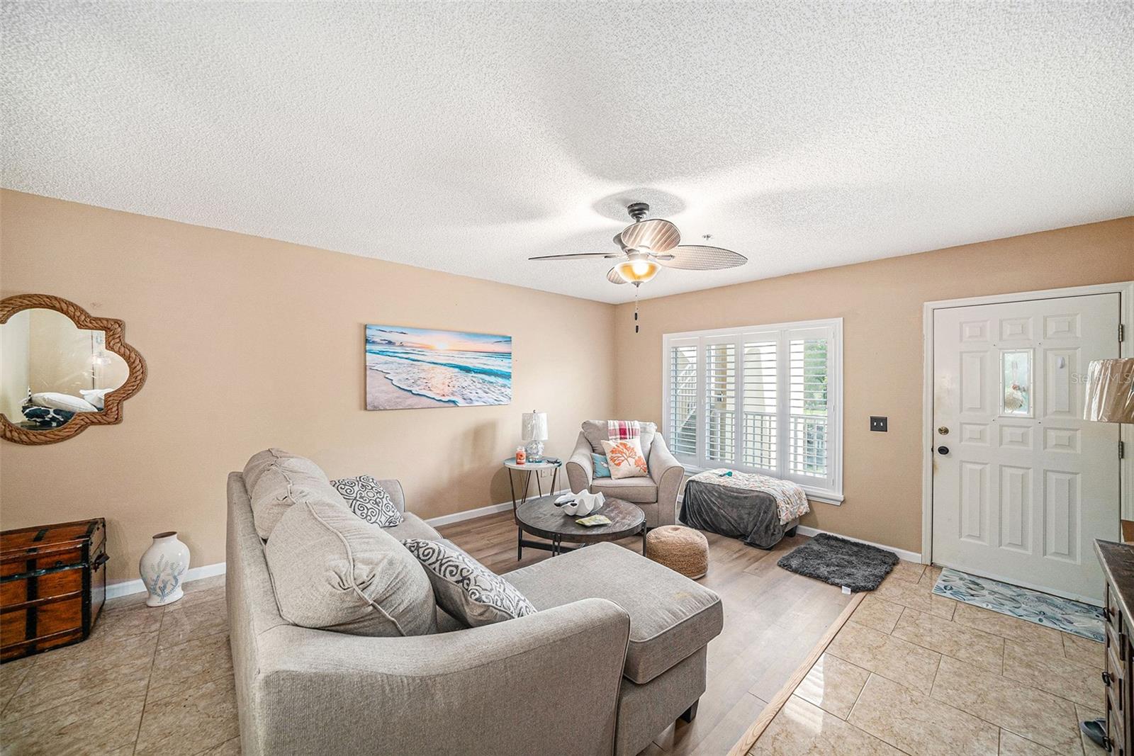 Welcome to your peaceful oasis in the heart of On Top of the World, Clearwater’s premier gated 55+ active community. This inviting two-bedroom, two-bathroom condo on the second floor offers stunning views of tranquil ponds and serene lakes, creating a perfect retreat for relaxation. Upon entering, you’ll be greeted by a bright and airy front living room filled with natural light, enhanced by large windows and plantation shutters. The interior has been freshly painted, and new fans and light fixtures add a modern touch throughout. Beautiful wood-look vinyl flooring flows seamlessly in the living room and a hallway leads you into the kitchen and dining area. The well-appointed kitchen features elegant granite countertops, matching appliances, and a convenient separate pantry, making meal prep a delight. Enjoy picturesque lake views from the dining room, perfect for enjoying your morning coffee or hosting family dinners. Both bedrooms are designed for comfort, featuring plantation shutters and wood-look vinyl flooring. The primary bedroom includes double closets and a private attached bathroom, both thoughtfully updated for your convenience. The second bedroom also offers ample closet space, ideal for guests or as a home office. This condo includes a stackable washer and dryer for in-unit laundry, along with plenty of additional storage throughout. On Top of the World offers an impressive array of amenities, including multiple pools, tennis courts, shuffleboard courts, and two golf courses. Stay active in the fitness center, participate in a variety of clubs and organizations, or unwind in the community clubhouse or library. With multiple lakes and a dog park, there’s something for everyone to enjoy. The HOA fees cover basic cable, water, sewer, trash, and the security of a gated community with a guard. Located close to shopping centers, banks, and the vibrant restaurants of Downtown Dunedin, you’ll also be just a short drive from the stunning Gulf beaches. Don’t miss the opportunity to make this lovely condo your new home in a vibrant and welcoming community. Schedule your visit today and experience the best of Florida living!
