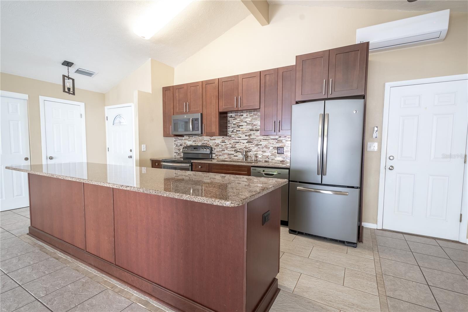 This inviting three-bedroom, two-bath home, situated on a spacious corner lot, offers a blend of modern updates and comfortable living. The tree-shaded yard provides plenty of curb appeal, while the freshly painted exterior (2022) and durable dimensional shingle roof (2021) add to its well-kept appearance. The vinyl fence adds privacy and with ample parking—including space for a boat or trailer plus driveway parking for up to six vehicles—this home is ready for both everyday living and special occasions. Inside, an open floor plan greets you, highlighted by vaulted ceilings and clerestory windows that flood the space with natural light. The heart of the home is the updated kitchen, where soft-close wood shaker cabinets, granite countertops, and a suite of stainless steel appliances bring style and function. The kitchen’s ceramic tile floor and elegant tile backsplash complete the look, while the breakfast bar offers a casual spot to gather. The kitchen flows easily into the living and dining areas, making the layout perfect for daily life and effortless entertaining. The spacious living room features ceramic tile flooring and a ceiling fan with a light kit for added comfort. The adjacent dining room continues the neutral tones and vaulted ceiling, with a wall sconce adding a cozy touch. Together, these areas create a warm and welcoming environment for both family dinners and social gatherings. For additional space, the expansive family room (14' x 27'10") is a standout feature. The charming brick accent wall gives the room character, while a built-in closet and mini-split system ensure comfort year-round. This versatile room is ideal for a variety of uses—whether you envision a home theater, playroom, gym, or office, the possibilities are endless. The primary bedroom offers a calming retreat with its neutral color palette, ceramic tile flooring, and ceiling fan. The attached en-suite bathroom features a mirrored vanity with ample storage, a walk-in tiled shower with a built-in bench, and a glass enclosure for a sleek, modern feel. The additional bedrooms are well-sized, each with ceramic tile floors, ceiling fans, and built-in closets, making them comfortable spaces for family or guests. The outdoor space offers the perfect spot for relaxing or entertaining. The fenced-in backyard provides privacy, and the deck just outside the sliding glass doors is a great place to enjoy your morning coffee or host a weekend BBQ. Conveniently located just two blocks from Allen’s Creek Park, 1-mile to Morningside Recreation Center for swimming and tennis, and a short drive to beaches, Eagle Lake Park, local schools including St Petersburg/Clearwater College, shopping, dining, and medical facilities, this home offers a central location without sacrificing peace and privacy. With a 2023 2.5-ton AC unit installed, a Hot Water Heater in 2023, and all the modern updates you need, this home is ready for you to move in and make it your own.