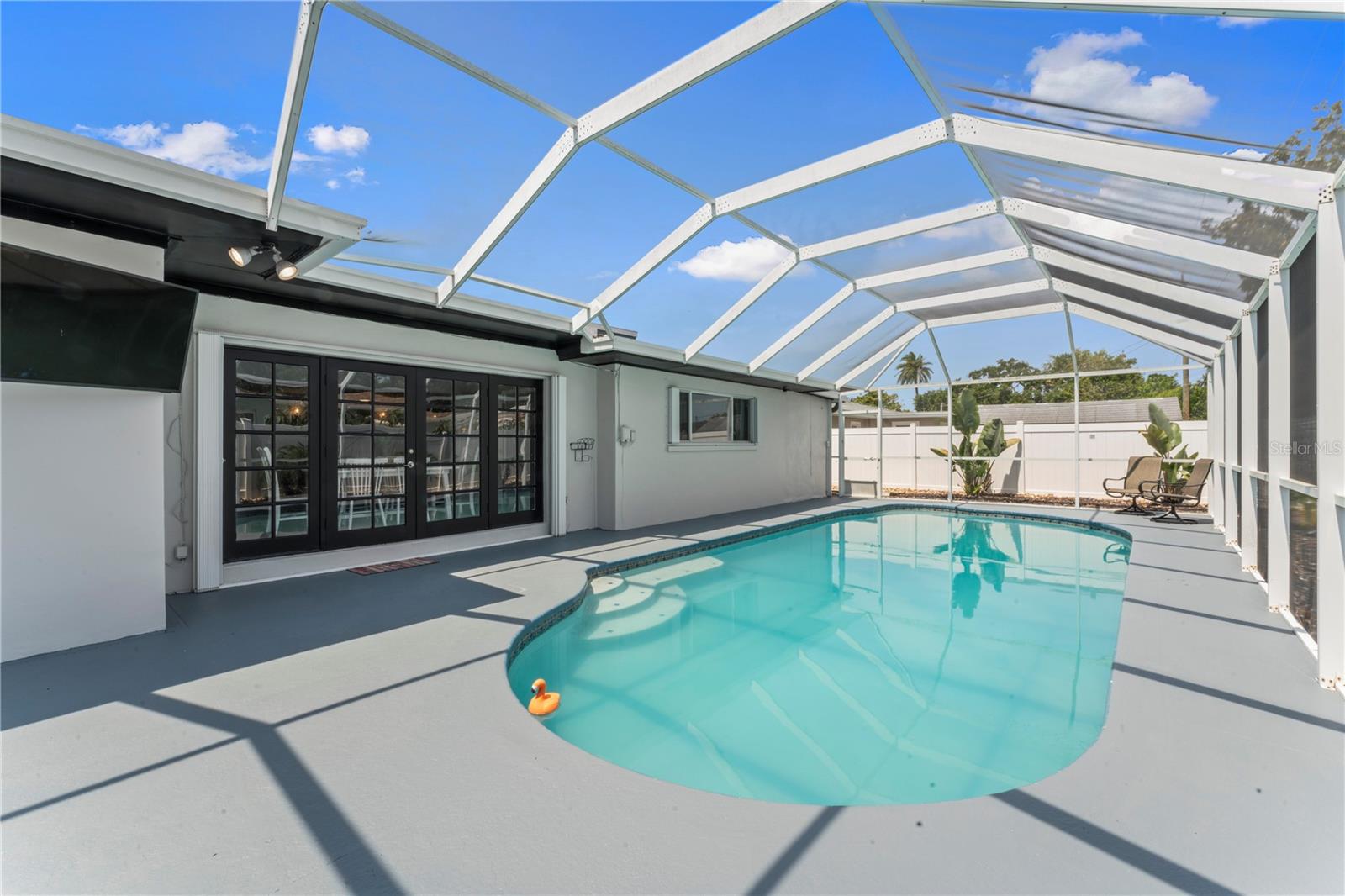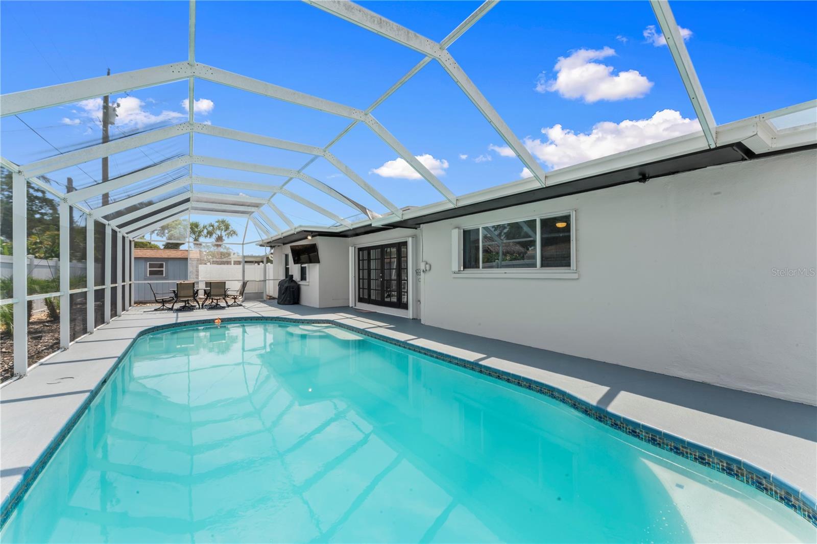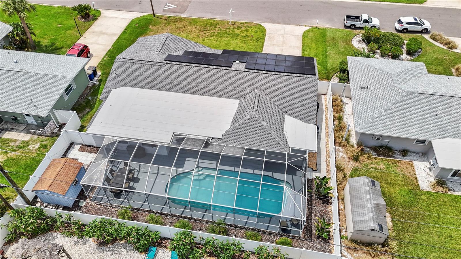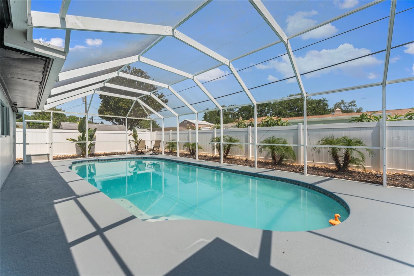 Under contract-accepting backup offers. Welcome this tastefully updated, nearly 2,100 sq ft pool home which offers 4 bedrooms, 3 full bathrooms and a 2-car garage and is located in one of Clearwater’s most desirable neighborhoods. This property sustained no storm or flood damage from last year’s hurricanes and is located in flood zone x, meaning no flood insurance is required. It's also in a non-evacuation zone, with no HOA fees, and comes equipped with numerous energy-efficient upgrades including a fully paid-off 11 kw solar panel system for significant cost savings and year-round peace of mind. Inside, you’ll find elegant wood-look tile flooring throughout the entire home (yes, no carpet!), and a gourmet kitchen featuring quartz countertops, a Frigidaire Professional built-in refrigerator and freezer as well as ample cabinet space. The open-concept living and dining area, complete with french doors, flows seamlessly to a large screened-in lanai and pool area which is perfect for entertaining or relaxing in private comfort. The flexible floor plan includes two large bedrooms with ensuite bathrooms, ideal for multi-generational living or a luxurious guest suite. Two additional bedrooms provide endless possibilities. Additional features include new exterior paint (2025), newer roof (2022), newer HVAC and water heater, built-in hurricane shutters, an impact-rated garage door, and a whole-house water filtration system. This home is ideally situated being just 15 minutes from world-famous Clearwater Beach, less than 15 minutes to Costco, Target, Home Depot, Lowe’s, countless dining options, Ruth Eckerd Hall, Safety Harbor, Dunedin and the St. Pete-Clearwater Airport, 25 minutes from Downtown St Petersburg and the Tampa International Airport and 30 minutes from Downtown Tampa. This home combines convenience, comfort, and long-term value. Don’t miss your opportunity to see this exceptional property, schedule your private showing today!
