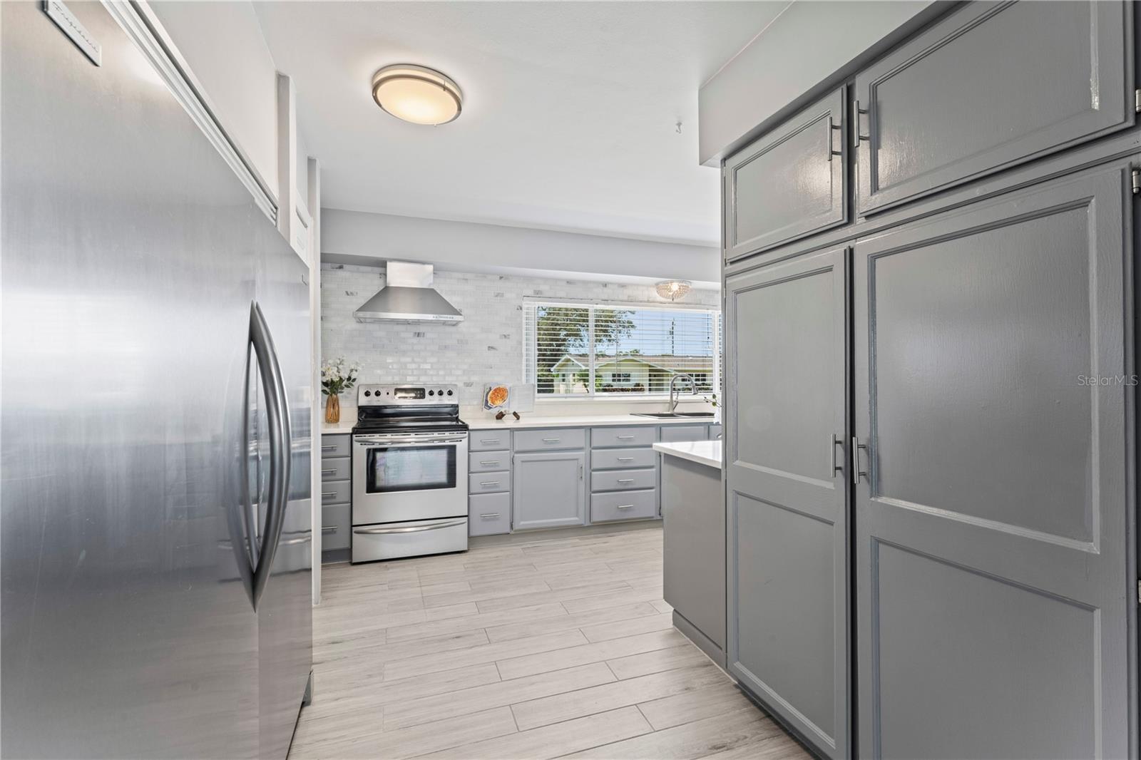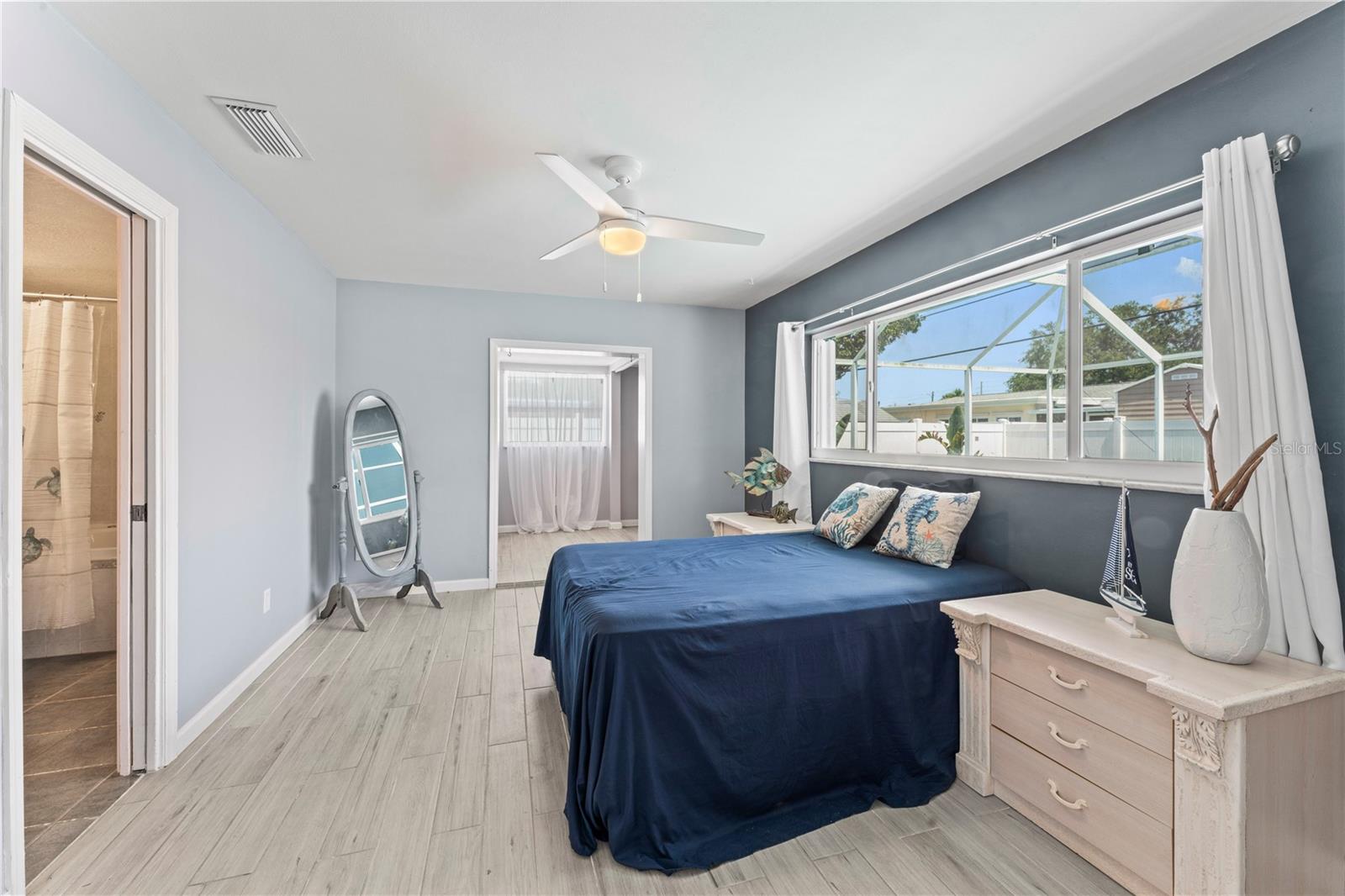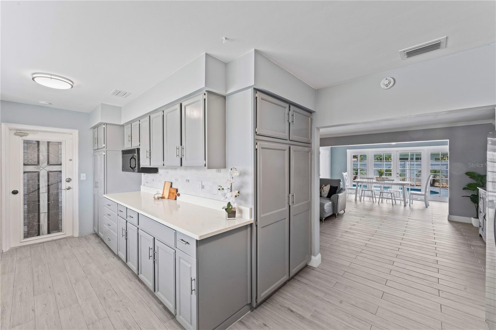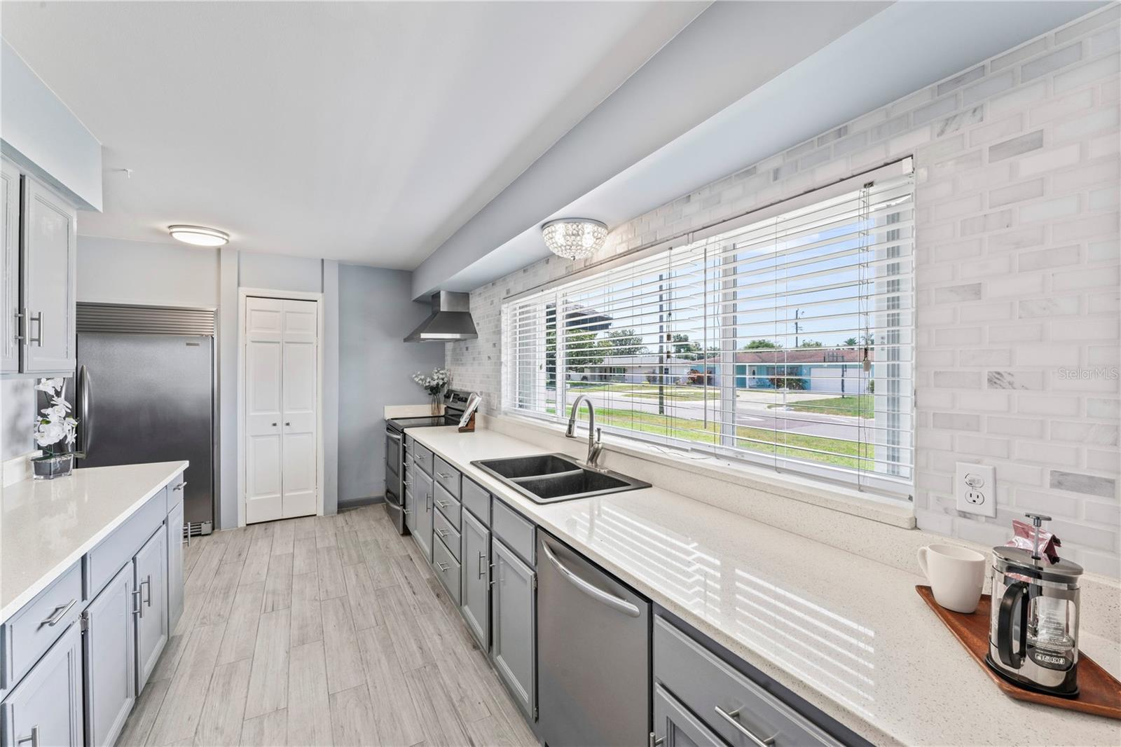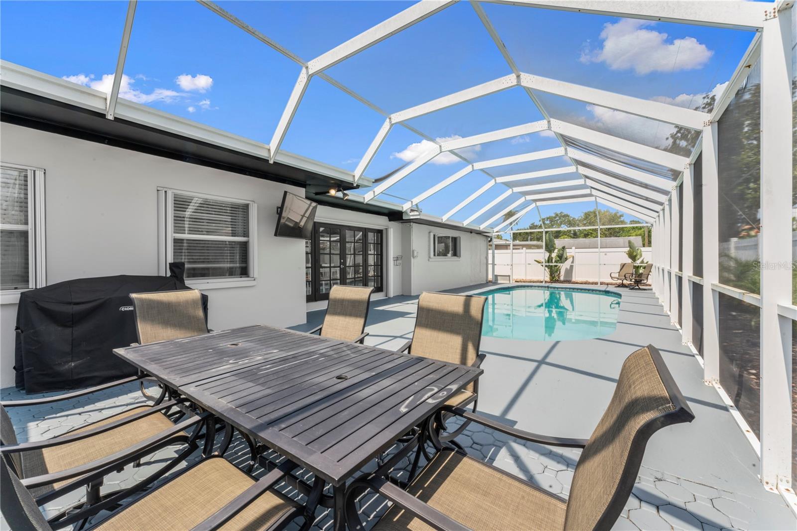 Under contract-accepting backup offers. Welcome this tastefully updated, nearly 2,100 sq ft pool home which offers 4 bedrooms, 3 full bathrooms and a 2-car garage and is located in one of Clearwater’s most desirable neighborhoods. This property sustained no storm or flood damage from last year’s hurricanes and is located in flood zone x, meaning no flood insurance is required. It's also in a non-evacuation zone, with no HOA fees, and comes equipped with numerous energy-efficient upgrades including a fully paid-off 11 kw solar panel system for significant cost savings and year-round peace of mind. Inside, you’ll find elegant wood-look tile flooring throughout the entire home (yes, no carpet!), and a gourmet kitchen featuring quartz countertops, a Frigidaire Professional built-in refrigerator and freezer as well as ample cabinet space. The open-concept living and dining area, complete with french doors, flows seamlessly to a large screened-in lanai and pool area which is perfect for entertaining or relaxing in private comfort. The flexible floor plan includes two large bedrooms with ensuite bathrooms, ideal for multi-generational living or a luxurious guest suite. Two additional bedrooms provide endless possibilities. Additional features include new exterior paint (2025), newer roof (2022), newer HVAC and water heater, built-in hurricane shutters, an impact-rated garage door, and a whole-house water filtration system. This home is ideally situated being just 15 minutes from world-famous Clearwater Beach, less than 15 minutes to Costco, Target, Home Depot, Lowe’s, countless dining options, Ruth Eckerd Hall, Safety Harbor, Dunedin and the St. Pete-Clearwater Airport, 25 minutes from Downtown St Petersburg and the Tampa International Airport and 30 minutes from Downtown Tampa. This home combines convenience, comfort, and long-term value. Don’t miss your opportunity to see this exceptional property, schedule your private showing today!