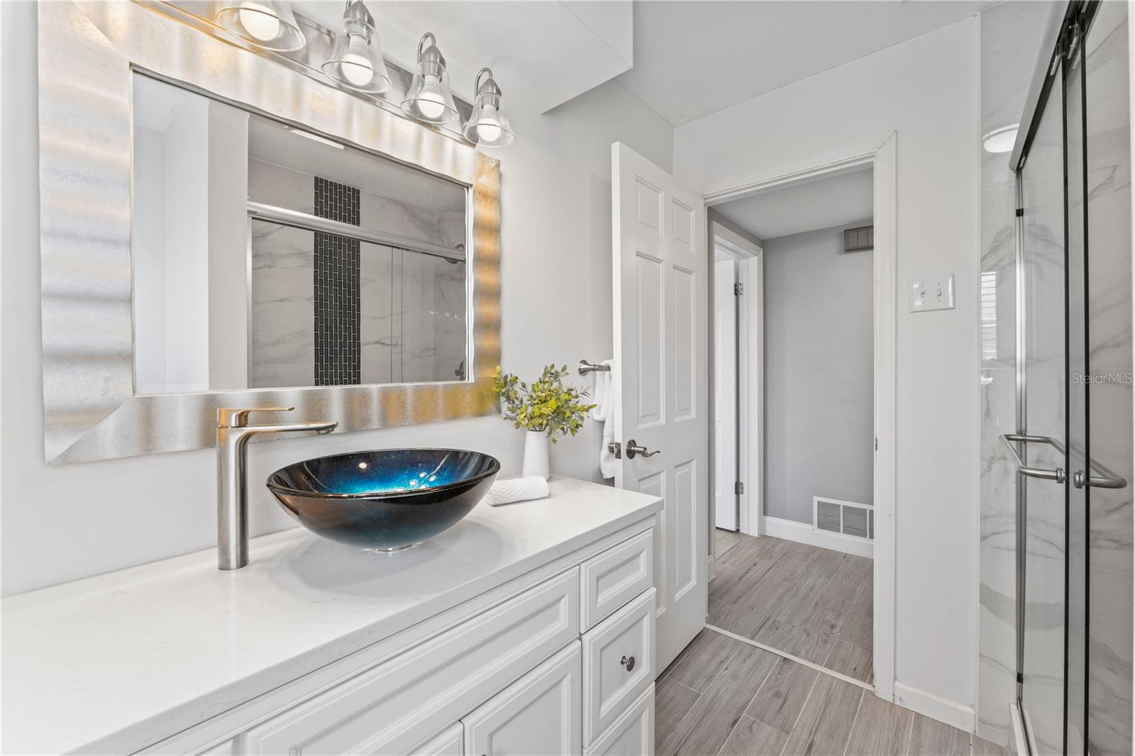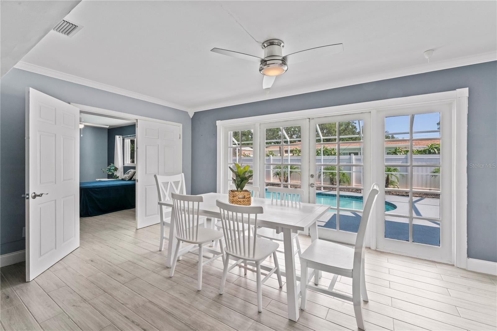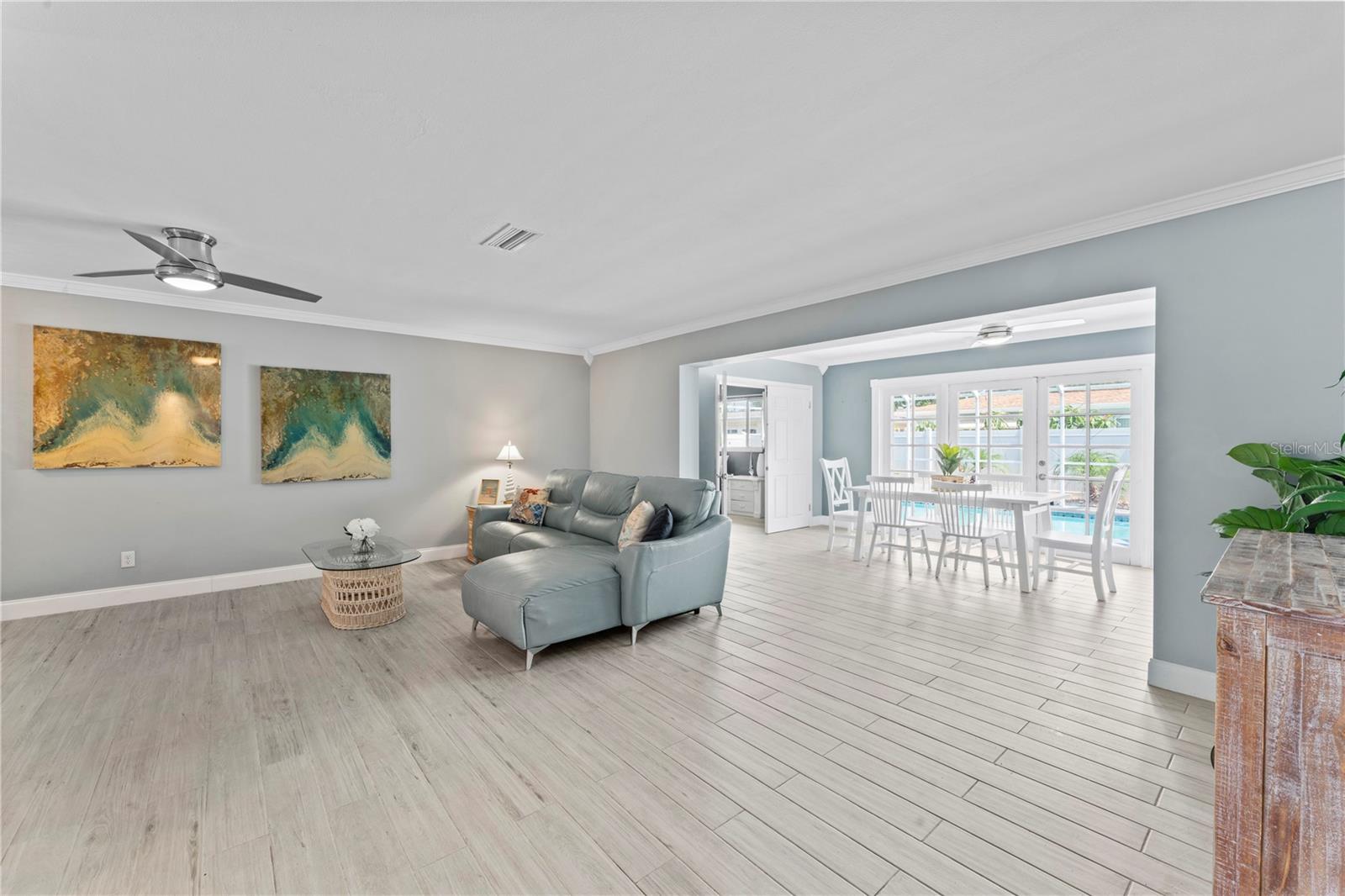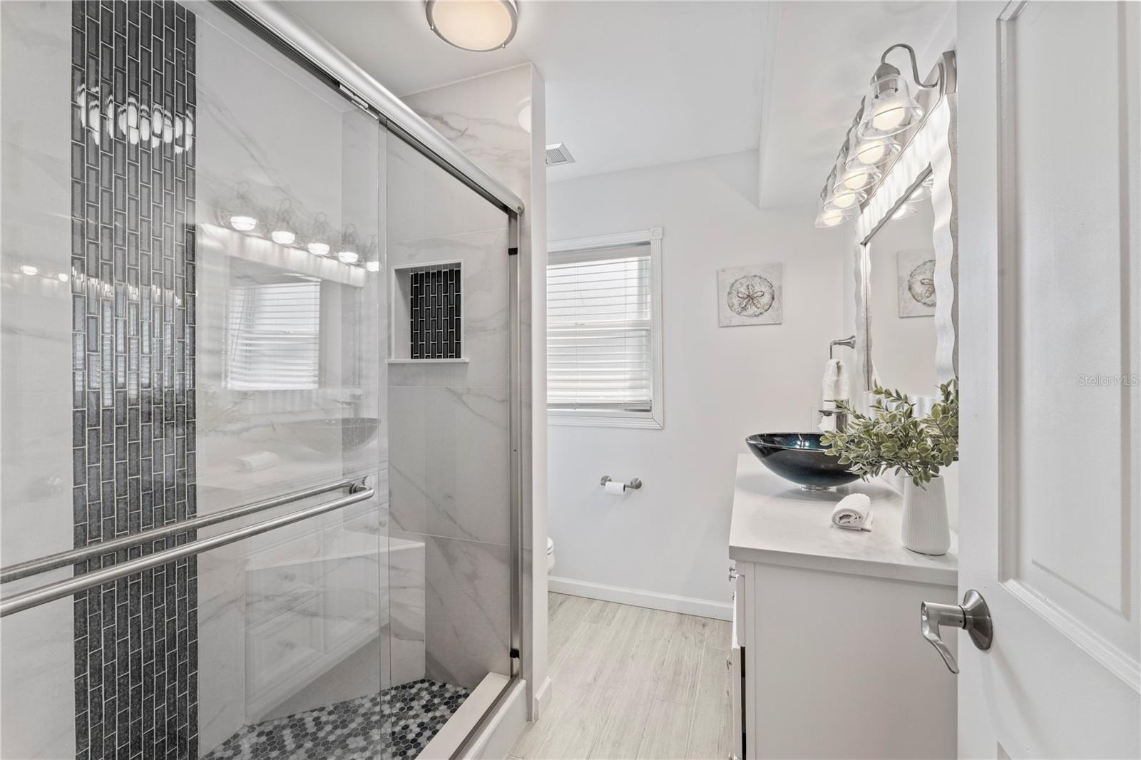 Under contract-accepting backup offers. Welcome this tastefully updated, nearly 2,100 sq ft pool home which offers 4 bedrooms, 3 full bathrooms and a 2-car garage and is located in one of Clearwater’s most desirable neighborhoods. This property sustained no storm or flood damage from last year’s hurricanes and is located in flood zone x, meaning no flood insurance is required. It's also in a non-evacuation zone, with no HOA fees, and comes equipped with numerous energy-efficient upgrades including a fully paid-off 11 kw solar panel system for significant cost savings and year-round peace of mind. Inside, you’ll find elegant wood-look tile flooring throughout the entire home (yes, no carpet!), and a gourmet kitchen featuring quartz countertops, a Frigidaire Professional built-in refrigerator and freezer as well as ample cabinet space. The open-concept living and dining area, complete with french doors, flows seamlessly to a large screened-in lanai and pool area which is perfect for entertaining or relaxing in private comfort. The flexible floor plan includes two large bedrooms with ensuite bathrooms, ideal for multi-generational living or a luxurious guest suite. Two additional bedrooms provide endless possibilities. Additional features include new exterior paint (2025), newer roof (2022), newer HVAC and water heater, built-in hurricane shutters, an impact-rated garage door, and a whole-house water filtration system. This home is ideally situated being just 15 minutes from world-famous Clearwater Beach, less than 15 minutes to Costco, Target, Home Depot, Lowe’s, countless dining options, Ruth Eckerd Hall, Safety Harbor, Dunedin and the St. Pete-Clearwater Airport, 25 minutes from Downtown St Petersburg and the Tampa International Airport and 30 minutes from Downtown Tampa. This home combines convenience, comfort, and long-term value. Don’t miss your opportunity to see this exceptional property, schedule your private showing today!