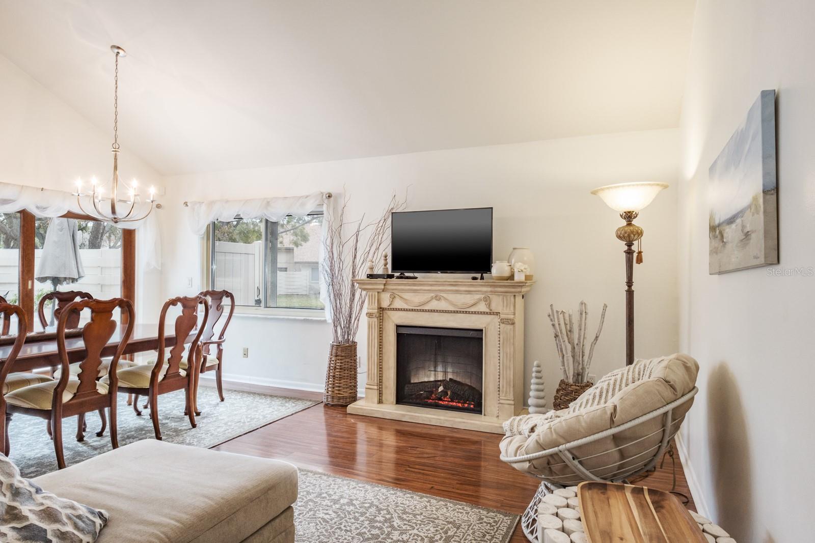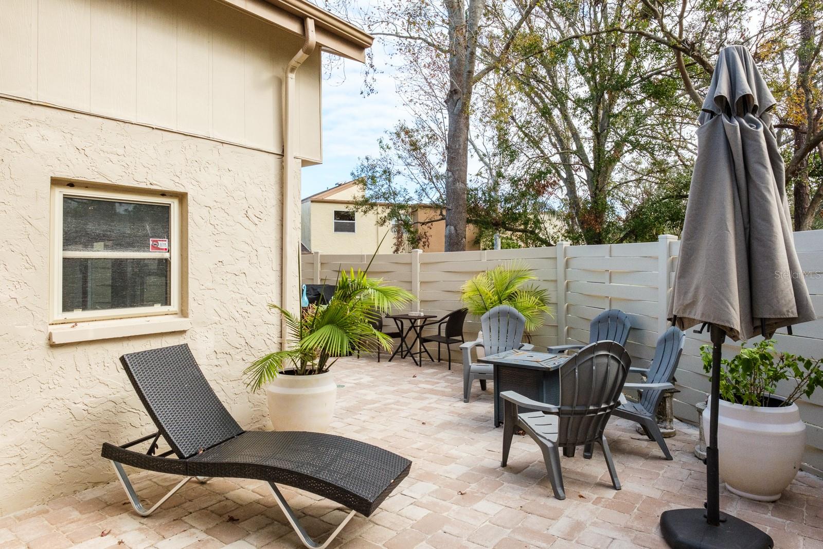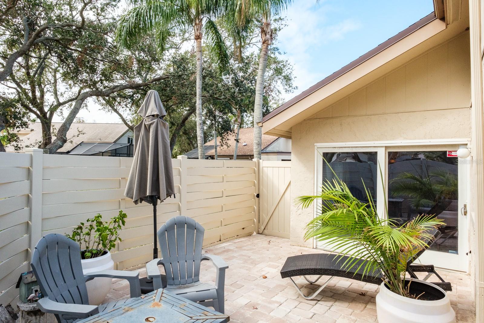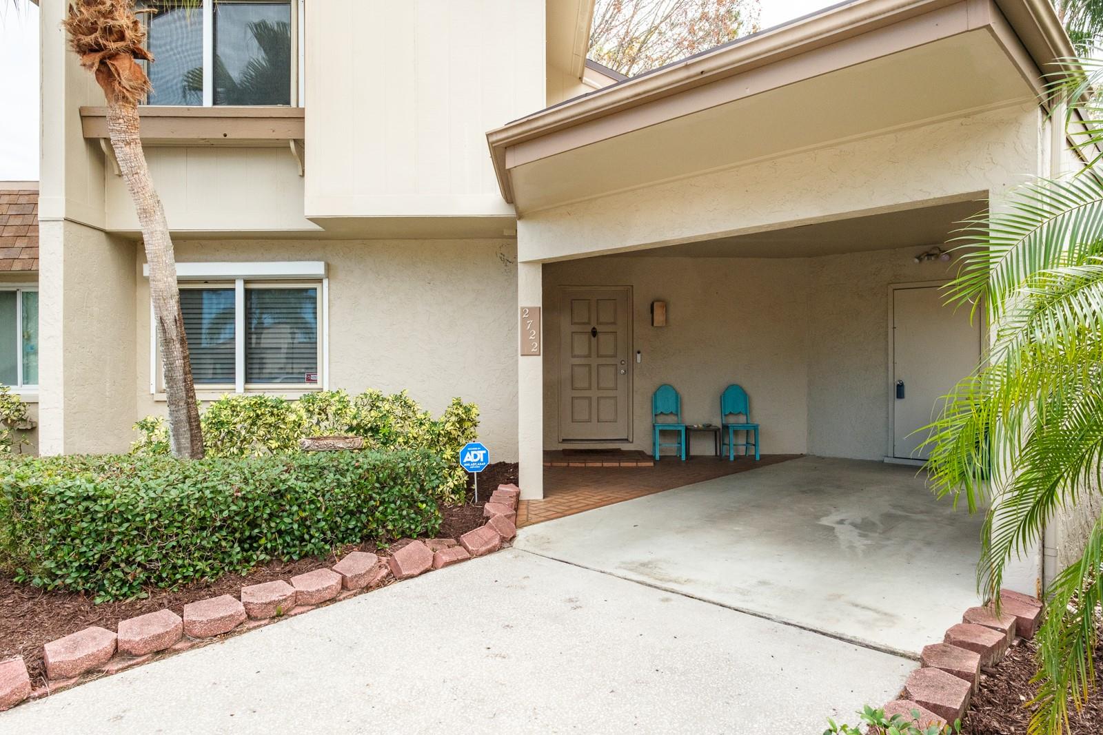 Location, Location!! Fabulous Countryside Community. High and Dry, NO Flood insurance required! Carefree Living… This 2 story, end unit home offers 3 bedrooms, 2 baths with a covered carport with over 1,400 sq ft of living. Enter into the spacious Great Room that has been recently painted, ideal for family gatherings or entertaining featuring laminate flooring and vaulted ceiling. Gorgeous kitchen (remodeled 2022) boasting tile flooring, fabulous quartz countertops, tile backsplash, range and built-in microwave (12/2024), dishwasher (2024), and refrigerator. A large separate eat-in space overlooks the spacious outdoor entertaining area, ideal for extending your entertaining and living outdoors featuring brick pavers and vinyl fencing for privacy. The first floor also features a primary bedroom with beautiful tile flooring, offers a wall closet and ceiling fan. The full bathroom (remodeled 2022) boasts stunning floor to ceiling tile with a fashionable framed glass, full walk-in shower, single vanity with quartz countertops. Laundry closet is located in the hallway with additional bonus under the staircase storage. Lots of storage and large closets! Second floor staircase wood railing upgraded 2 years ago. The second-floor features 2 spacious bedrooms with split bedroom plan offering a Juliet balcony overlooking the first floor Great Room. Both bedrooms feature laminate flooring, walk-in closet, bonus closet in the 3rd bedroom for extra attic storage, chair rail. Hall bath is ideal featuring full walk-in shower with floor to ceiling tile with listello accents, brand new framed glass and vanity with quartz countertop (2024). Additional updates include 2.5 Ton AC 12/2024, Roof 2021, Elec Panel 2019, Newer Water heater, Hurricane shutters for nearly all windows. Extra storage closet is located under the carport. Walk or Bike on the Pinellas Trail located just outside the community. Close to shopping, restaurants, medical as well as our fabulous beaches in Clearwater and Dunedin. HOA fee includes exterior and grounds maintenance, cable TV, internet, exterior insurance, roof, pest control, gutter cleaning and community pool. True carefree Florida living!