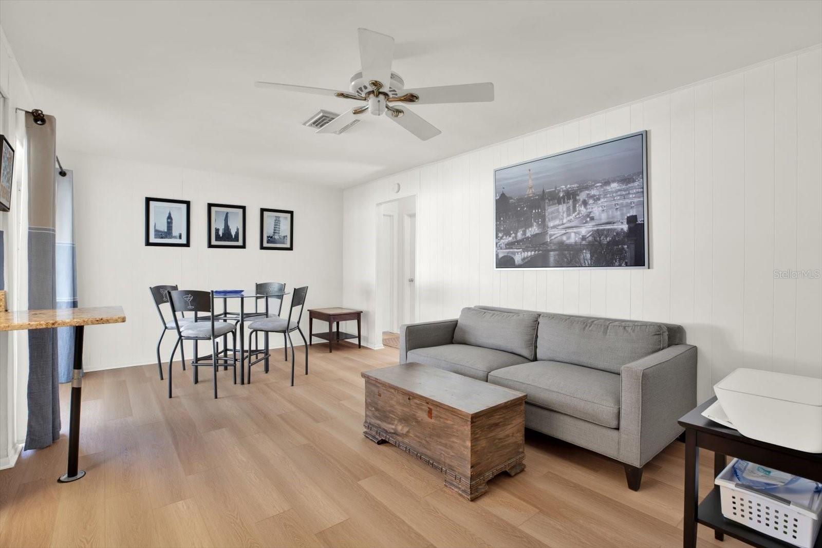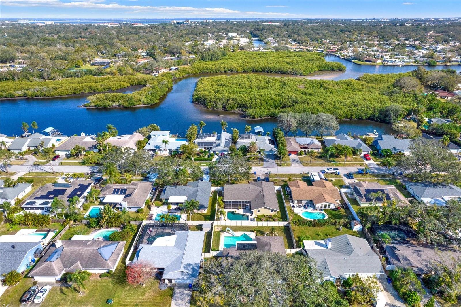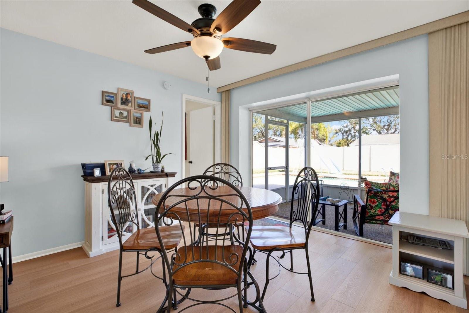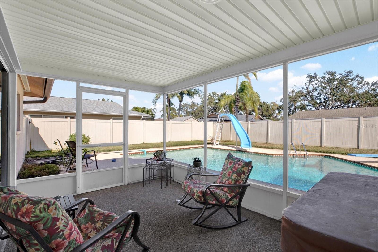 Welcome to this fabulous 3-bedroom, 2-bathroom block pool home in Clearwater's desirable Arvis Circle non-deed restricted community. This charming property boasts fantastic curb appeal with mature trees and a sidewalk in front. Step inside to a spacious split-bedroom floor plan featuring a combo living/dining area and a separate family room, all highlighted by easy to care for laminate flooring – perfect for entertaining and family gatherings. The kitchen is a chef's dream with white cabinetry, granite countertops, newer stainless-steel appliances (less than 4 years old), and a convenient closet pantry. The primary bedroom offers a walk-in closet and an en-suite bathroom with a shower/tub combination. Both secondary bedrooms are generously sized with ample closet space and share a hall guest bath. The spacious screened-in back porch is accessible from both the dining and family rooms via sliding glass doors and provides the perfect spot to relax with a hot tub and plenty of seating. The expansive backyard is an oasis, featuring an oversized 8' deep pool with a slide and diving board, a newer vinyl fence, and plenty of green space for outdoor enjoyment. Updates and features include hurricane-grade windows on the front and sides with shutters on the back, a NEW HVAC SYSTEM (2022), a 10-year-old roof, a 3-year-old water heater, and rain gutters. The two-car garage includes a washer/dryer, a hurricane-rated garage door, and ample space for both vehicles and storage. Located just minutes from shopping, dining, the interstate, and Gulf beaches, this home offers the perfect combination of comfort, style, and convenience. Don’t miss your chance to make this amazing home yours!