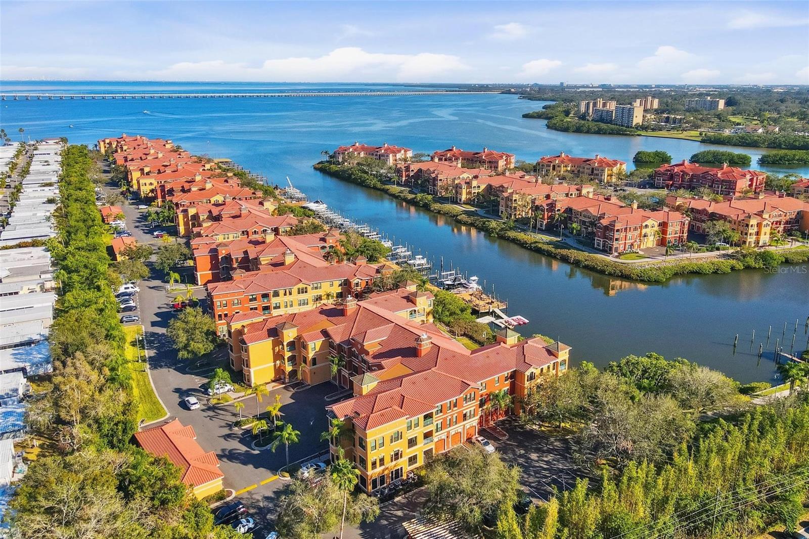 EMBRACE THE GRAND BELLAGIO! This beautifully maintained, spacious condo has two bedrooms and two bathrooms and includes a separate den/office, balcony, and a one-car garage. It's situated in one of Clearwater’s most sought-after waterfront communities. This elegant home features crown molding, an inviting fireplace for cozy evenings, and an open floor plan perfect for comfortable living and entertaining with abundant natural light. Of course, you can enjoy the sea breeze on your balcony, sipping your morning coffee or an evening cocktail. The Community underwent extensive property renovations in 2023, including a brand-new tile roof, new building stucco, and brand-new hurricane-impact PGT windows; the owners installed a new HVAC in 2022, laminated floors in 2024, both bathrooms upgraded in 2019, and a new washing machine in 2025. Centrally located on the Bay, 15 miles to Tampa Airport, 5 miles to St. Pete–Clearwater Airport, and 8 miles to the award-winning sugar sand beaches of the Gulf Coast. The Grand Bellagio provides luxury amenities, including a resort-style environmentally friendly geothermal heated pool/spa with cabanas, sauna, fitness center, game room with pool table, meeting space, tennis court, 1.5-mile lighted waterfront walking/jogging path, kayak usage, playground, sand volleyball court, dog run, car wash station, clubhouse, relaxation/meditation piers, on-site management, and 24-hour gate-guarded security. Pet-friendly, with some restrictions on the breed. ***ENJOY LOWER MONTHLY PAYMENTS for the first 6 months as the seller now offers to prepay 6 months' HOA monthly fees at closing with an acceptable contract!!!** Unit being Sold furnished. Don't miss your chance to own a piece of paradise in Clearwater, Florida. Schedule your private showing today.