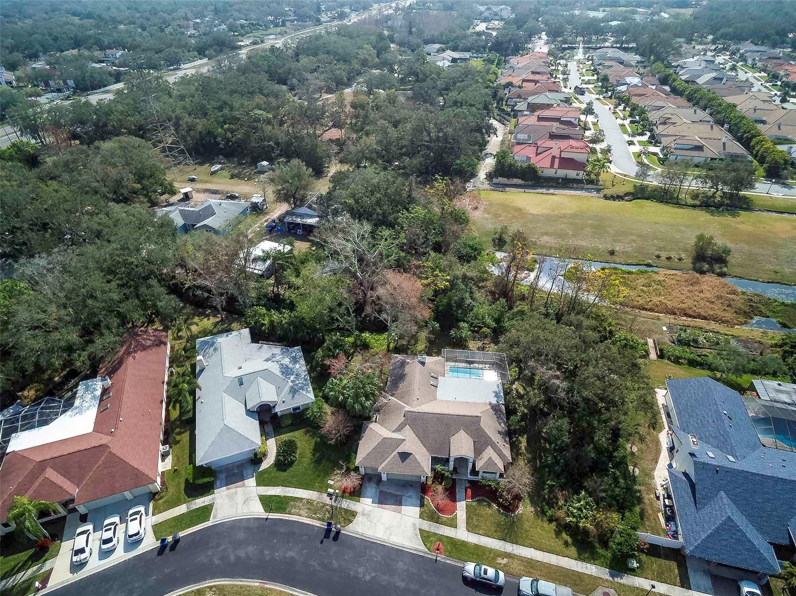 LOCATION, LOCATION, LOCATION! Don't miss this stunning 4-bedroom, 3-bath home featuring a 3-car garage and screened-in pool-perfect for outdoor entertaining. Cul-de-sac neighborhood ideally situated between Tampa International and St. Pete-Clearwater airports, and just minutes from the charming towns of Safety Harbor and Dunedin. Enjoy the sugar sand beaches of Clearwater Beach, less than 30 minutes away! This home features a solid foundation and timeless layout-ideal for buyers ready to renovate and make it their own! Inside you'll find a desireable three-way split floor plan with soaring vaulted ceilings, elegant neutral tile throughout, and a cozy fireplace in the family room. The open concept kitchen offers a center island, breakfast bar, ample cabinets and a pantry. The spacious master suite has direct pool access and a luxurious en-suite bath with a Whirlpool Jacuzzi and walk-in closet. The second bath has been beautifully updated with new tile, while the third bath opens to the lanai for convenient pool access. Outside, enjoy a private, beautifully lanscaped 0.43-acre lot with mature trees and a well-fed irrigation system.This home has sustained no storm damage and won't be on the market long-schedule your showing today! UPGRADED FEATURES INCLUDE: The main roof was replaced in 2019, including two new skylights, and the flat roof was updated in 2022. A new HVAC system was also installed in 2016. Additional improvements include a new microwave in 2024, garbage disposal 2025, and pool resurfacing in 2006, along with a new DE filter 2022, and skimmer 2022, manifold replacement 2024 and multipart valve seals replaced in 2024. Sprinkler control box replaced in 2019. Master bath vanity upgrades in 2014. Two-car garage door opener, bluetooth replaced in 2022. Rain gutter maintenance 2011. Electric grounding 2011. New GE front load washer 2021. Home plumbing replaced in 2014 and is also equipped with a whole-house water filtration system by iSpring, installed in 2014.