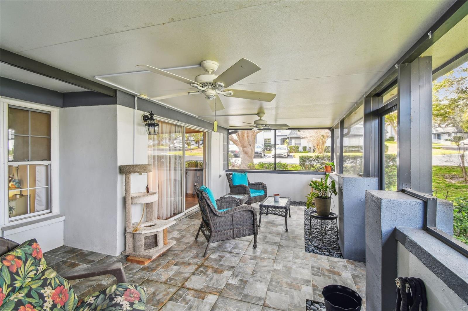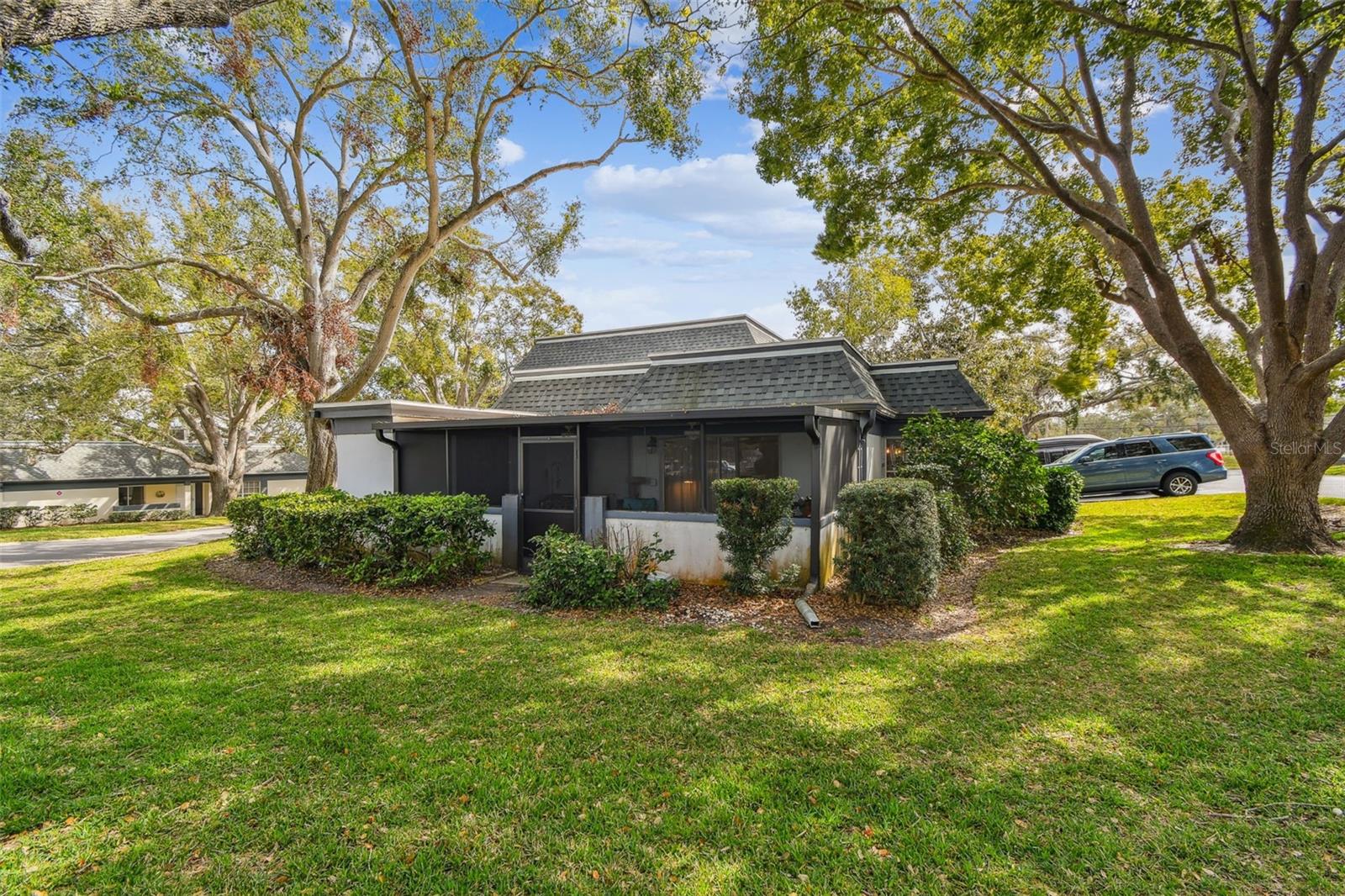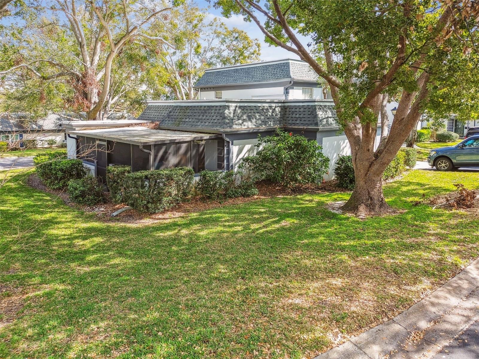 WELCOME HOME to this bright and beautiful 2 bedroom 1 1/2 bath corner end unit VILLA in the highly sought after community of Kapok Manor in beautiful Clearwater, Florida. As you enter this spacious Villa you will feel like you are in a single-family home with its open floor plan and windows throughout overlooking all the green space outside. Right off the living room is a very large screened in porch where you can enjoy coffee in the morning or cocktails at night with friends and family. There is also a large storage closet for all your outdoor needs. Both bedrooms are a good size and have plenty of space in the walk-in closets. Down the hall is the luxurious new bathroom that was completely renovated a year ago. The roof was replaced in 2021, A/C 2018, refrigerator 2022 and hot water heater is 6 months old. Flooring throughout is laminate and tile for easy cleanup. Your assigned parking space is just steps from the front door for your convenience and there is also plenty of guest parking for visitors. This community is so charming with its mature oaks and rolling hills. Great location, close to Ruth Eckerd Hall, Safety Harbor, lots of great restaurants, shopping, entertainment, some of the best beaches in Florida and an easy commute to Tampa and St. Pete.