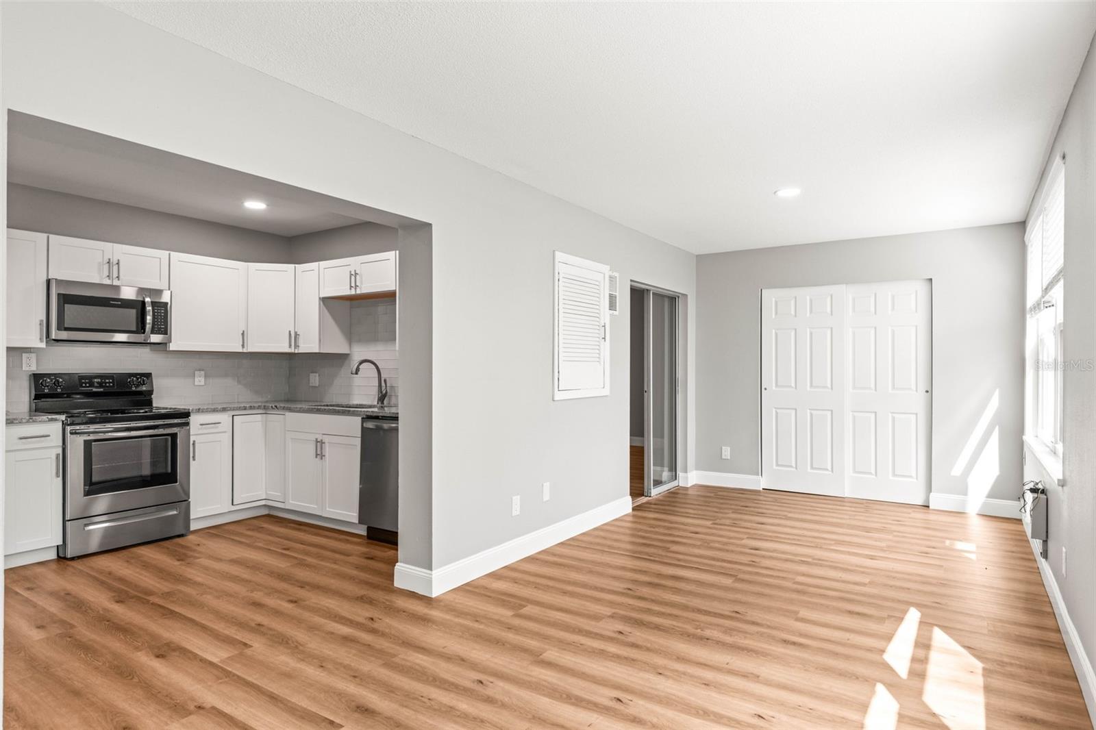Recently reduced and priced to sell!!! Discover modern living in this fully renovated 55+ condo in the highly sought-after On Top Of The World community. This home welcomes you with an expansive open layout, featuring newer waterproof vinyl plank flooring throughout. The completely updated kitchen boasts granite countertops, stainless steel appliances, and a convenient pantry. The primary suite offers a private en suite bath with a beautifully tiled stand-up shower, while the second bedroom provides ample space for guests. A renovated guest bath with a tub/shower combination ensures comfort and convenience. Additionally, this unit includes a versatile bonus space, ideal for a home office or secondary living area. Thoughtful updates include a newer in-home front-load washer and dryer, LED lighting, updated kitchen fixtures, upgraded blinds, floors, and baseboards. Residents enjoy free access to two private golf courses, two pools (including one heated), tennis courts, shuffleboard, pickleball, billiards, a state-of-the-art fitness center, a dog park, and multiple activity centers. The vibrant community schedule offers something for everyone, from social events to recreational activities. This pet-friendly community is conveniently located near Countryside Mall, award-winning Clearwater Beach, BayCare Ballpark, shopping, dining, and daily necessities, making it the perfect place to call home. Schedule your private showing today!