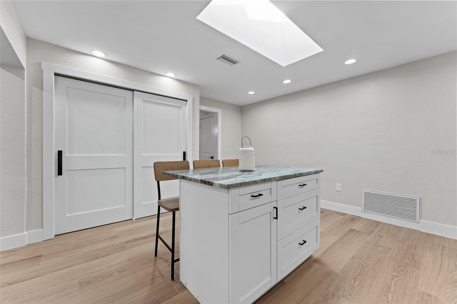 Stunning Clearwater pool home on a Huge Lot! This beautifully updated 4-bedroom, 3-bath home sits on an expansive 145x125 lot and offers 3,173 sq. ft. of living space. The oversized 2-car garage provides ample storage, while the newly renovated saltwater pool (2023) features new equipment, pavers, cage, and a spacious deck—perfect for entertaining! The new full irrigation system will keep all your grass green. Inside, you’ll find new wood-like porcelain flooring throughout, plantation shutters, and fresh Sherwin-Williams “Drift of Mist” paint. The large primary suite is a true retreat, and the spacious flex room can serve as a playroom, office, or second family room. The gourmet laundry room offers plenty of counter space, cabinets, and a second refrigerator. This home also boasts a wood-burning fireplace, brand-new windows, new exterior doors, and a 2-year-old roof & AC systems (2 units). Flood insurance policy is assumable. Located in a desirable Clearwater neighborhood, this home is a rare find with modern updates, a prime location, and endless space inside and out! Don’t miss your chance—schedule a showing today!