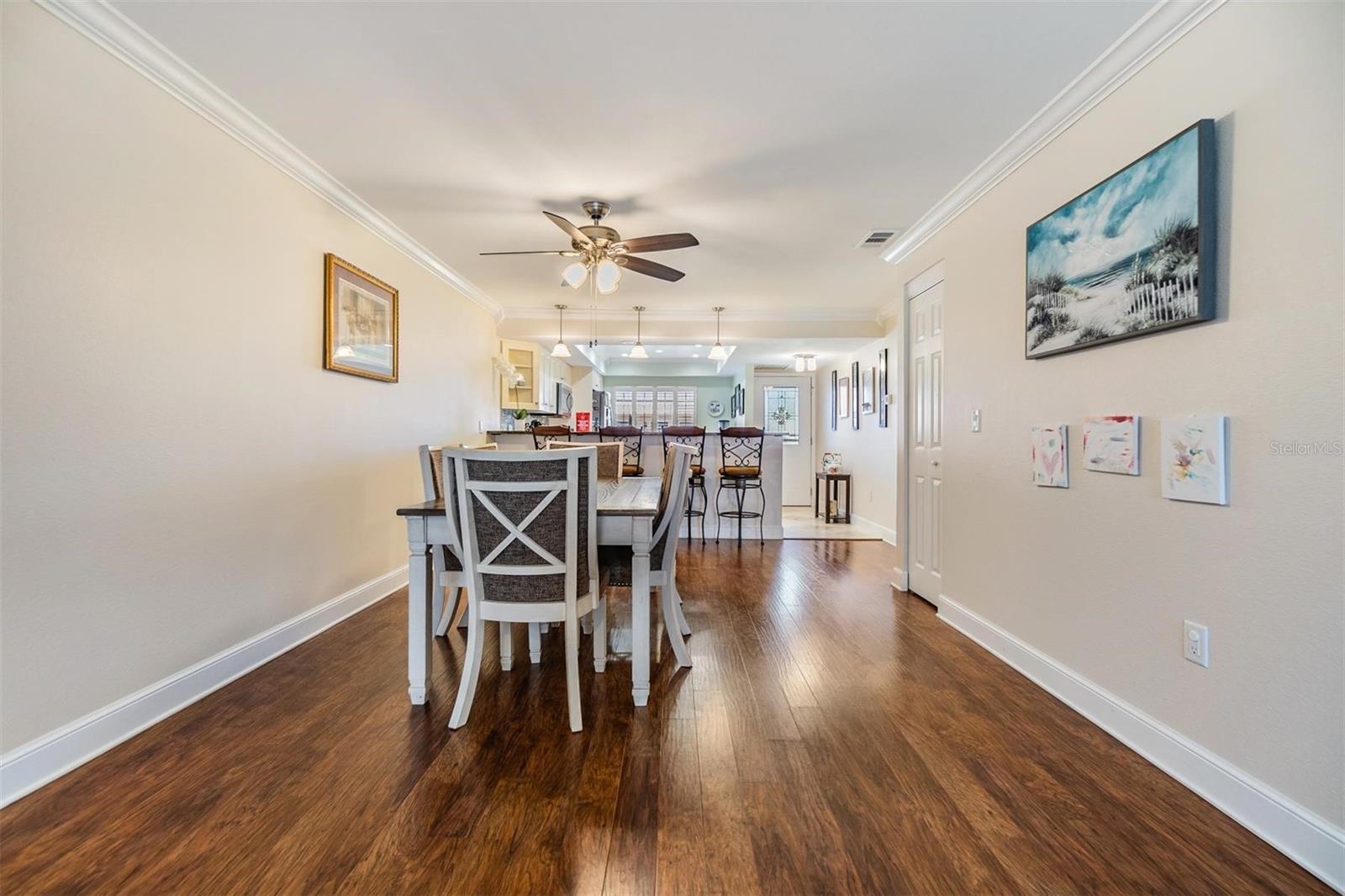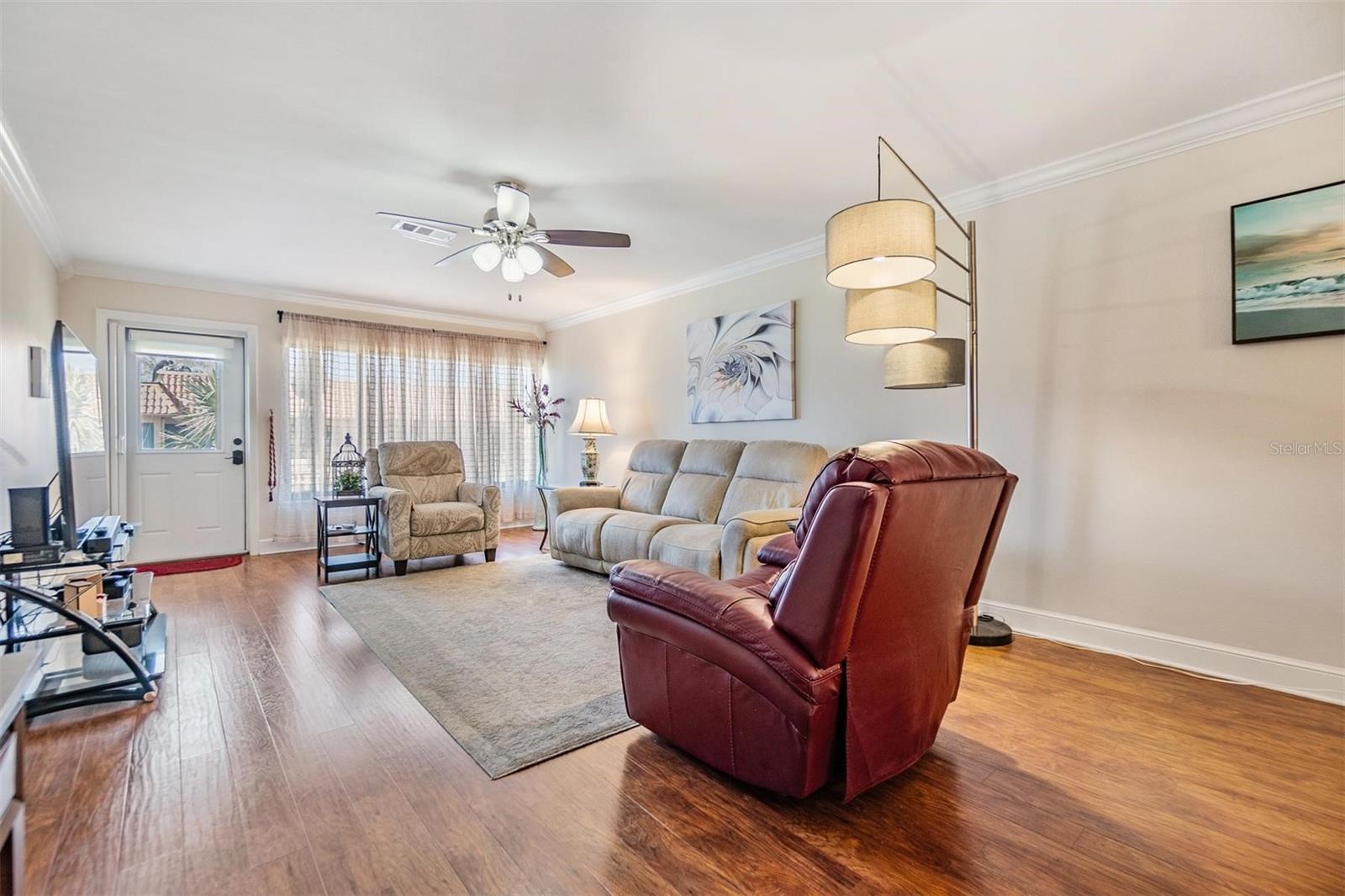 Welcome to Imperial Cove, a premier gated 55+ community in Clearwater, offering resort-style living with an abundance of amenities! As you arrive, you'll be greeted by a covered front porch, then step inside to an open floor plan designed for both comfort and functionality. The spacious living and dining areas feature crown molding and plenty of natural light, creating a warm and inviting atmosphere. The kitchen is a chef’s delight, boasting stainless steel appliances, granite countertops, a stylish tile backsplash, a breakfast bar, and a coffee bar for added convenience. Tile, laminate, and carpet flooring flow throughout the home, offering a perfect blend of comfort. The primary suite is a true retreat with ample closet space and an ensuite bathroom. The second bedroom is generously sized and perfect for guests or a home office. Step outside to your extended pavered back patio, offering a peaceful space to relax or entertain. Additional features include coded locks, security floodlights, a newer AC, and a new roof for added peace of mind. Living in Imperial Cove means enjoying top-tier amenities, including a community pool, lap pool, hot tub, fitness center, game room, clubhouse, fishing docks, walking trails, picnic areas, grills, tennis courts, and shuffleboard. Maintenance is included, covering exterior paint, roof, landscaping, lawn fertilization, irrigation, exterior pest control, garbage removal, cable, and internet—allowing you to enjoy a hassle-free lifestyle! This vibrant, waterfront community is conveniently located near shopping, dining, beaches, and entertainment. Don’t miss this opportunity to live in one of Clearwater’s most sought-after 55+ communities! Schedule your private showing today!