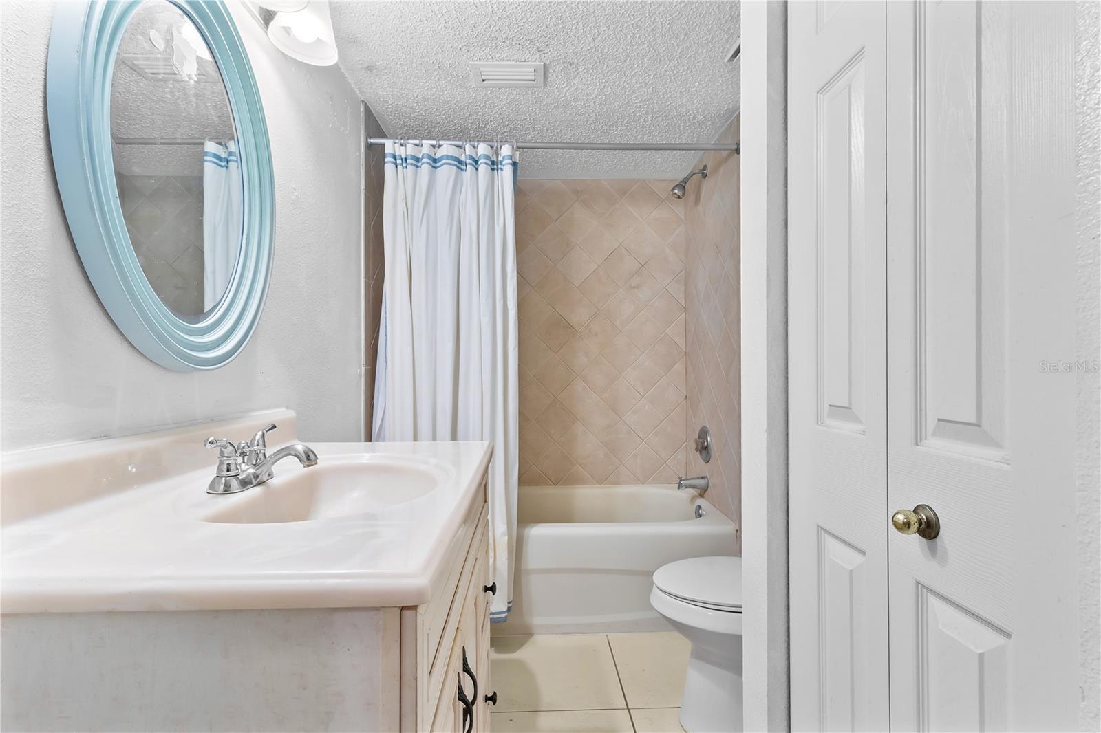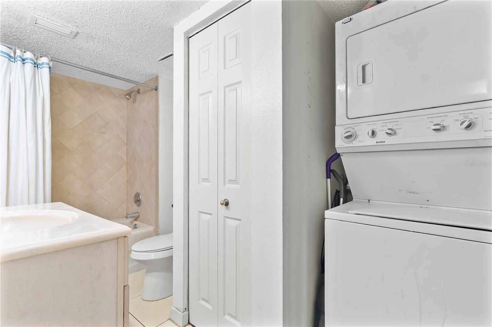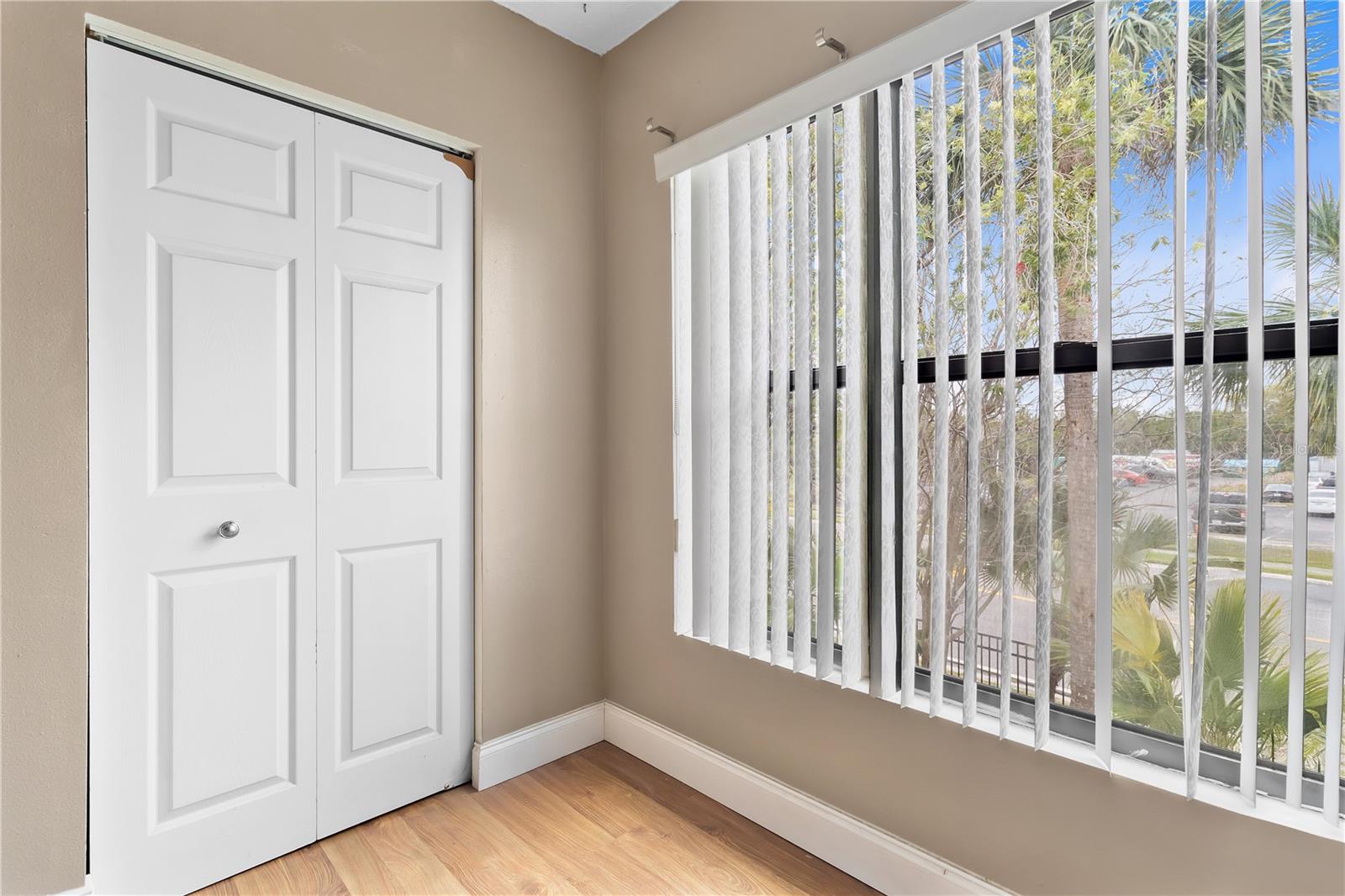 TOP FLOOR CONDO IN GATED COMMUNITY! This fabulous 2 bed 2 bath, 2nd floor condo unit is located in a gated complex within the cozy loop of the Feather Sound Golf Course community. Practical kitchen layout with lots of counter and cabinet space. The dining / living room area is well equipt for comfort with a ceiling fan, large storage closet and sliding doors leading to a juilet balcony. Split bedroom plan is great for privacy! Primary bedroom has a walk-in closet and triple double-hung windows bringing lots of light! The 2nd bedroom has a reach-in closet and a set of double-hung windows. Tile flooring in living, kitchen and bath areas; laminate in both bedrooms. Stackable washer and dryer located inside for convenience. Bring your pets! 2 dog or cats are allowed and there are no weight restrictions. Take your pet for a stroll around one of the many ponds with lighted fountains! Looking for a rental investment? Look no further - this unit is currently rented to long term tenants (lease ends February 2026). This community allows owners to rent their units for 3 months or longer, right after purchasing. An assigned parking spot is also included in the purchase and a 2nd car can be parked in any of the visitors parking spots. ***None of the units in this community (including this one) experienced flooding from the most recent storms.*** This community has a strong hardworking board of directors and management who have dedicated themselves to bringing up the standards & values of the community within the past few years. in 2023, each of the concrete buildings received necessary maintenance to the structural, re-stuccoing, exterior re-painting of railings and units doors, repairs and re-painting to the pillars in the entrance, landscaping throughout, new interior basketball court floor (2021), repairing and heating the pool, new mail canopy at the entrance. All building roofs were replaced a few years ago also. All repairs are done with engineer company & contractor with proper permits pulled. This condo association INCLUDES FLOOD INSURANCE and trash removal as part of their incredibly low HOA fee. On site recreation center with clubhouse, pool, spa, gym, gas grill, eating area, tennis court, pickle ball court and indoor basketball court. Feather Sound offers lots of green space with nature trails, playgrounds, park areas, soccer field and outdoor basketball courts. Take a leisurely stroll, a jog or a bike ride on the endless community sidewalks around the Feather Sound loop. Tee off in the PGA certified golf course next door by purchasing a membership at the Feather Sound Country Club. Centrally located between Tampa, St. Pete & Clearwater. Very close to downtown St Pete, Gandy bridge, I-275, Clearwater/St Pete airport. Less than 10 mins to tiki bars, marinas and sands of the beach! See today!