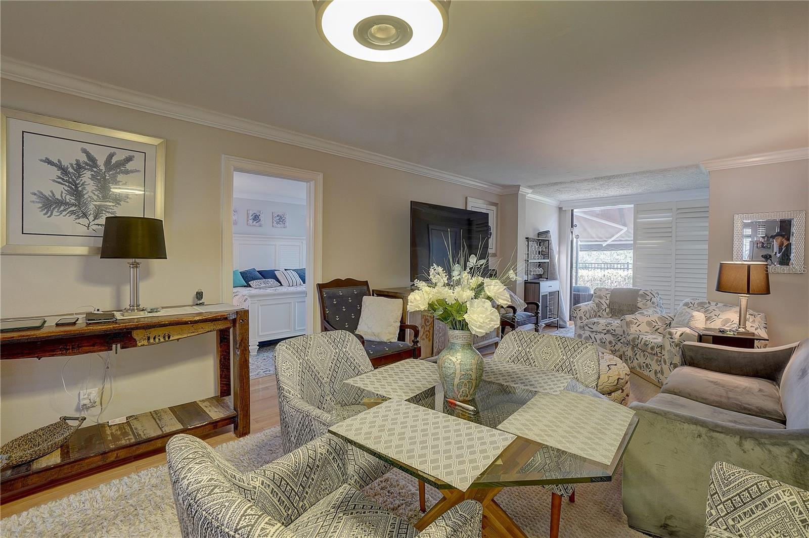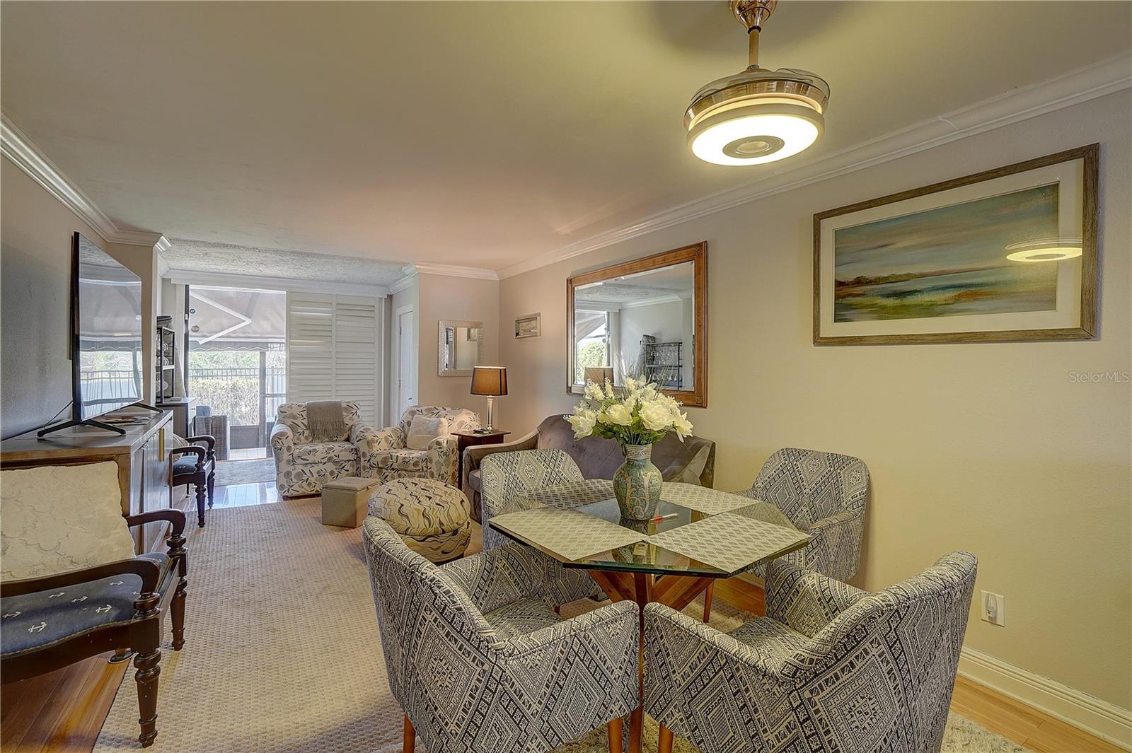 Welcome to this FULLY FURNISHED 2-bedroom, 2-bathroom condo, offering the LARGEST floor plan in the complex. This FIRST-FLOOR END UNIT provides the ultimate convenience with no stairs to climb and assigned parking directly in front of the door. Step inside to discover high-end upgrades, including solid wood flooring, updated baseboards, and CROWN MOLDING. Every detail has been thoughtfully enhanced, from new door handles, electrical outlets, and light switches to modern light fixtures both inside and out. The OPEN-CONCEPT living space is bathed in natural light, with large windows featuring new window screens. Sliding PLANTATION SHUTTERS open to a paved patio, creating the perfect outdoor retreat. The kitchen boasts solid wood cabinetry, solid surface countertops, and all STAINLESS STEEL appliances, including a new refrigerator (2024). A washer and dryer are also included for added convenience. The spacious primary bedroom offers a private EN-SUITE bathroom, while the second bedroom is versatile—ideal for guests, a home office, or a personal retreat. Located in the highly desirable Feather Sound community, part of a PGA GOLF COURSE, this condo is surrounded by RESORT-STYLE amenities, including a swimming POOL, hot tub, tennis court, indoor basketball court, fitness center, two commercial BBQ grills, and a car care center. The active PICKLEBALL community, recently repaved roads (2024), new entrance gate system (2024), roof replacement (approximately three years ago), and exterior repaint (2023) ensure a well-maintained and vibrant neighborhood. Shopping is conveniently located across the street, along with a scenic boardwalk and a three-mile walking and biking trail. The location is unbeatable, just five minutes from Clearwater Airport and minutes to Tampa International Airport. This move-in-ready condo is available furnished or unfurnished, making it a perfect option for snowbirds or anyone seeking a hassle-free move. Don’t miss this rare opportunity to own a fully upgraded, spacious first-floor unit in an unbeatable location.