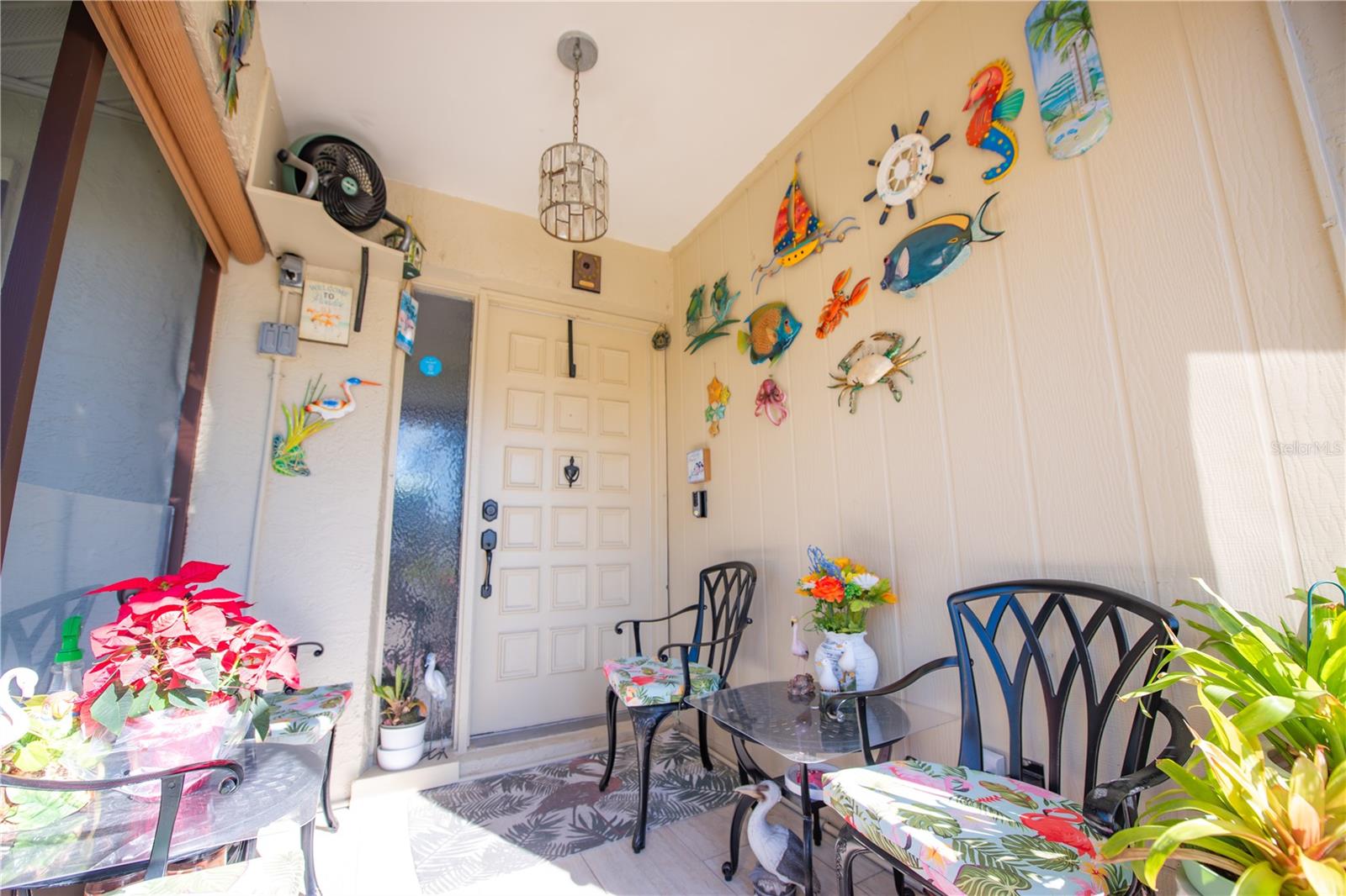 A rare find! Fantastic 2 bedroom, 2 bath 1464 sq ft single-family home in highly desirable 55+ community of Village on the Green! The spacious 1464 sf floorplan boasts an open living space, cathedral ceiling and lots of natural light. There is even a separate den that can be a home office or flex space. Lots of incredible upgrades! New kitchen cabinets with gorgeous granite countertops and tiled backsplash, an island, eat-in kitchen area, all appliances and lovely tile floors throughout. Inside utility with a new washer & dryer. The Primary bedroom walk-in closet includes a clothes organizer and the 2nd bedroom has a large walk-in for lots of storage space. More extras include: newly painted inside and outside, new baseboards, doors and frames, double-pane windows, 4 fans. Beautiful bathrooms with new shower doors, toilets, vanities. Home has a security alarm system and cameras. There is even a whole home water treatment system. The sprinkler system is on a well for low-cost lawn watering. Lawn care is taken care of by HOA! Enjoy picking fruit including mango, avocado, lemon and olives from your own fruit trees! The paver walkway leads to your garage that is 341 sq ft and has a nice work bench. High & Dry at approx. 75 ft above sea level! Low HOA fee includes lawn cutting, clubhouse with a community pool, library, fitness area, large event venue with a kitchen, shuffleboard court, basic cable and more! Village on the Green is conveniently located close to beaches, airports, restaurants, medical offices, Mease Hospitals, Countryside Mall and downtown Dunedin events. Village on the Green is a perfect place to call home!