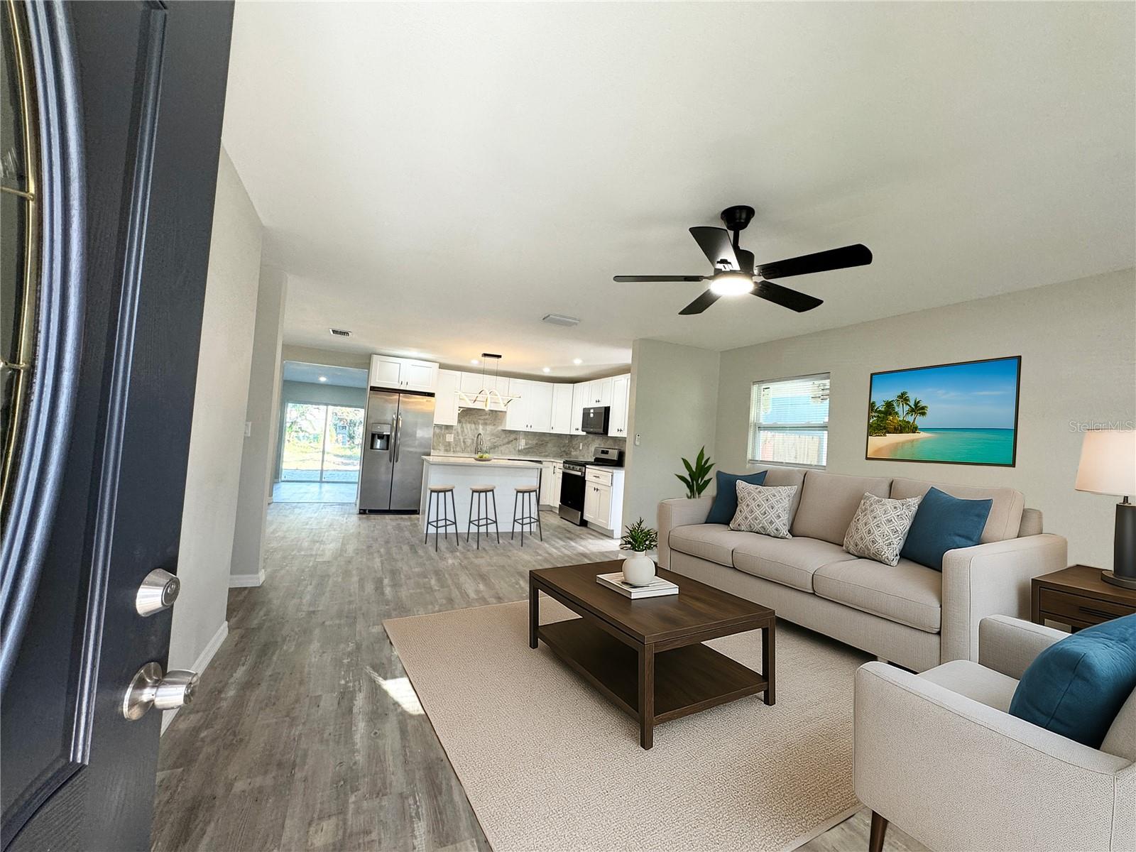 One or more photo(s) has been virtually staged. This beautifully redesigned and fully renovated 5-bedroom, 2-bathroom home in Clearwater was completed with roof permits 2024 and building permit 2025, passed all inspection, offering you peace of mind and quality assurance. From the brand-new roof year 2024 to the luxury vinyl flooring throughout, every detail was carefully chosen to combine modern open-concept living with timeless charm. The spacious layout provides flexibility for any lifestyle—use one bedroom as a home office, another as a guest room, and still have space for hobbies, storage, or a cozy library. The heart of the home features an open floor plan that seamlessly connects the kitchen, dining, living, and family rooms—ideal for entertaining or relaxing with loved ones. Large windows flood the space with natural light, creating a warm and welcoming atmosphere. You’ll love the gourmet kitchen, designed with high-quality soft-close cabinetry, quartz countertops, a large central island, and sleek stainless steel appliances. Both bathrooms were thoughtfully upgraded: The main bathroom showcases beautiful tilework and a luxurious design. The master ensuite features a modern aesthetic with artistic tile accents and a tempered glass shower door. Additional upgrades include: New heat pump AC system for energy-efficient heating and cooling Hurricane impact windows for enhanced safety, sound reduction, and energy efficiency New vanities, bathtubs, lighting fixtures, ceiling fans, and more This home is located in Flood Zone X, which means no flood insurance is required. It’s also just minutes from downtown Clearwater, Clearwater Beach, restaurants, shopping centers, and the airport—making it a convenient and desirable place to call home. Equal Opportunity Housing.