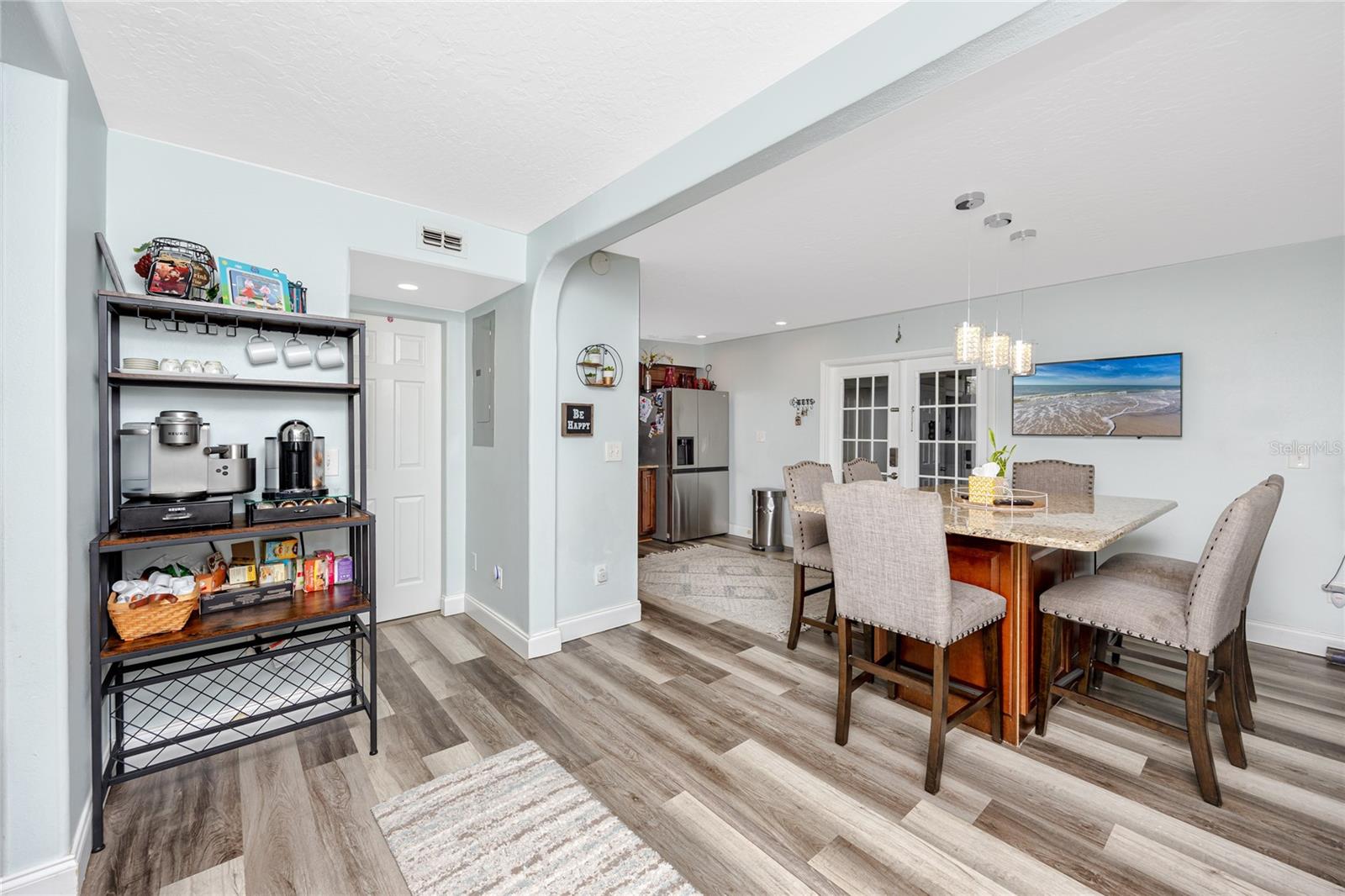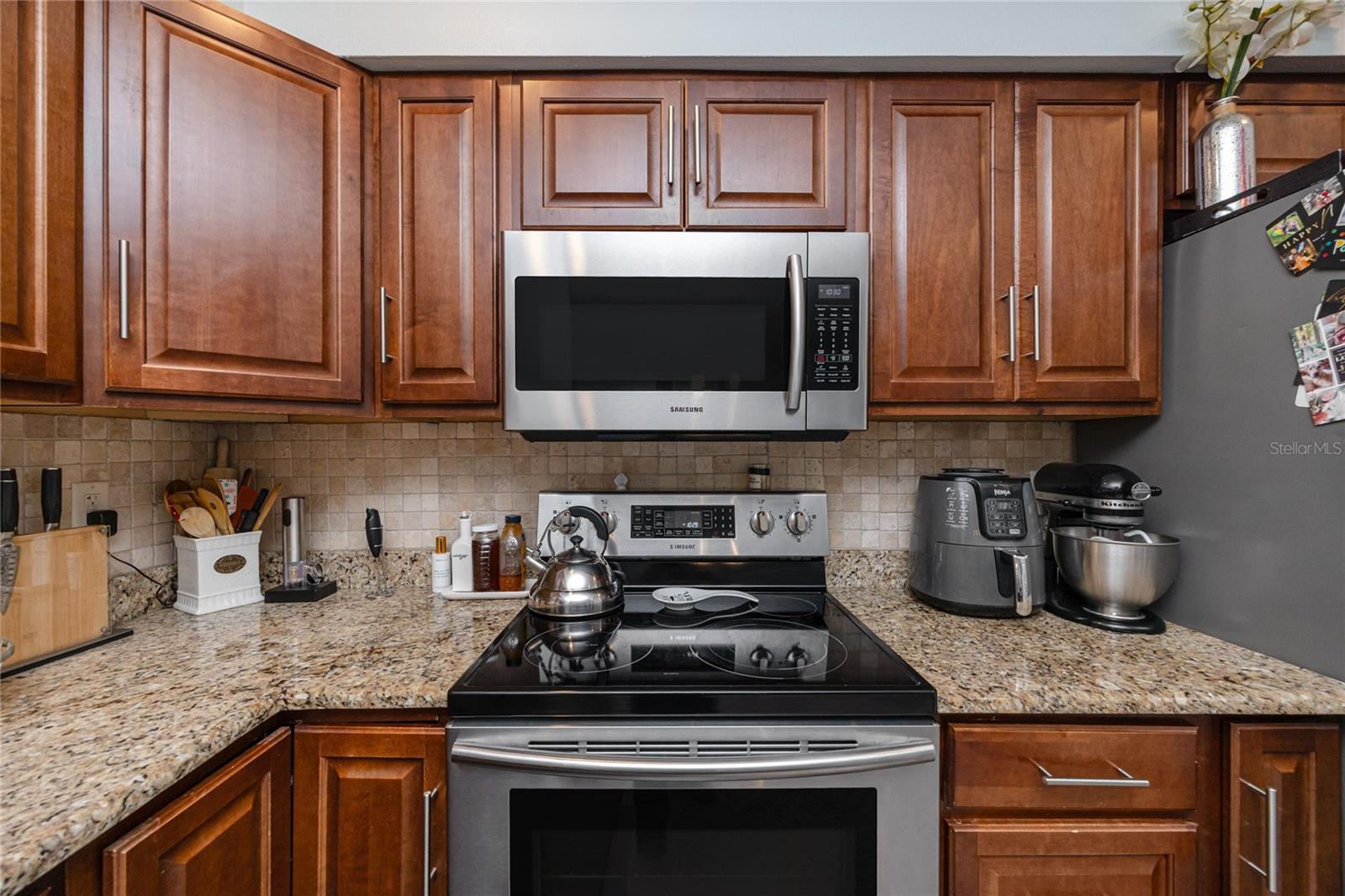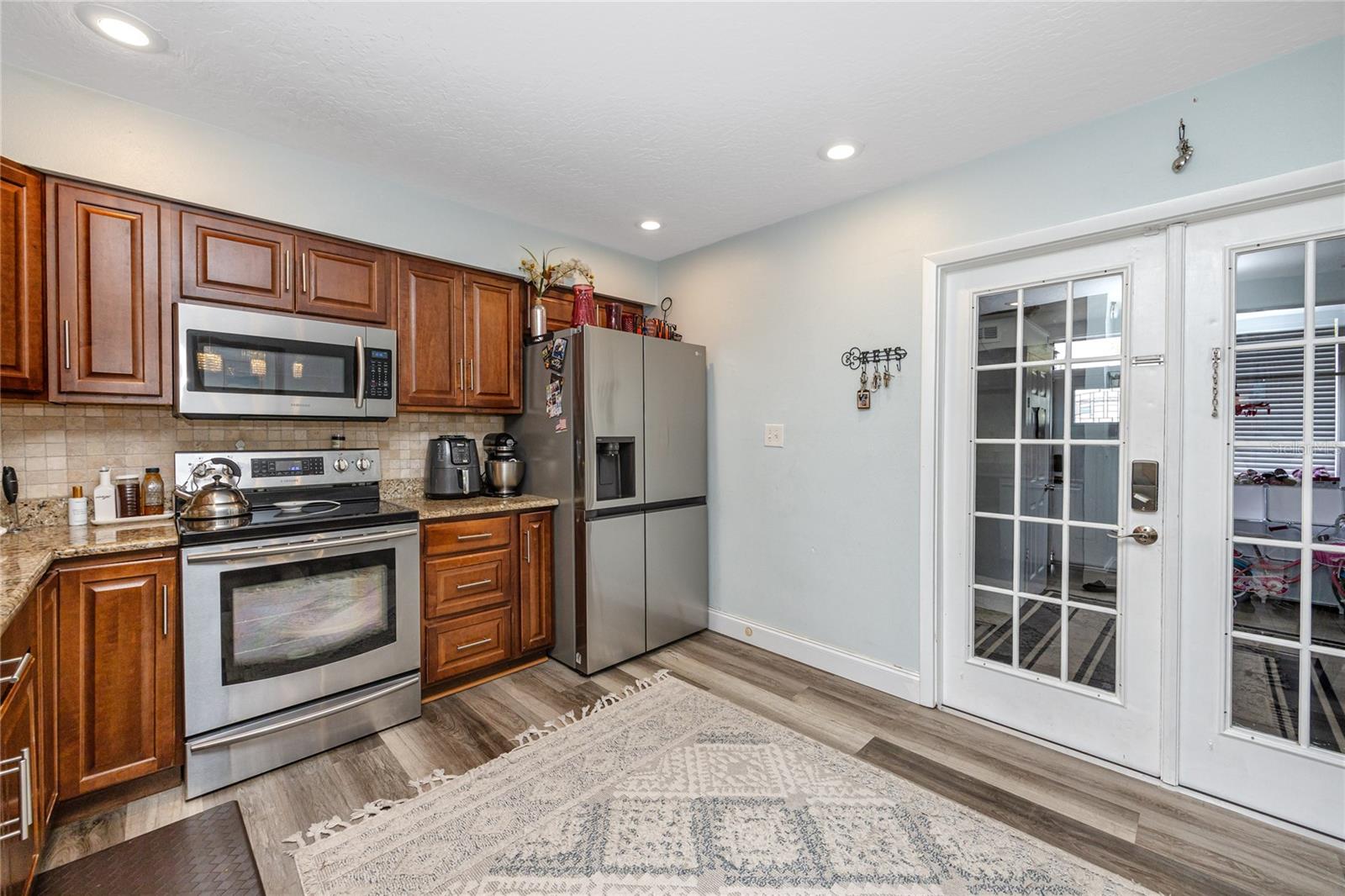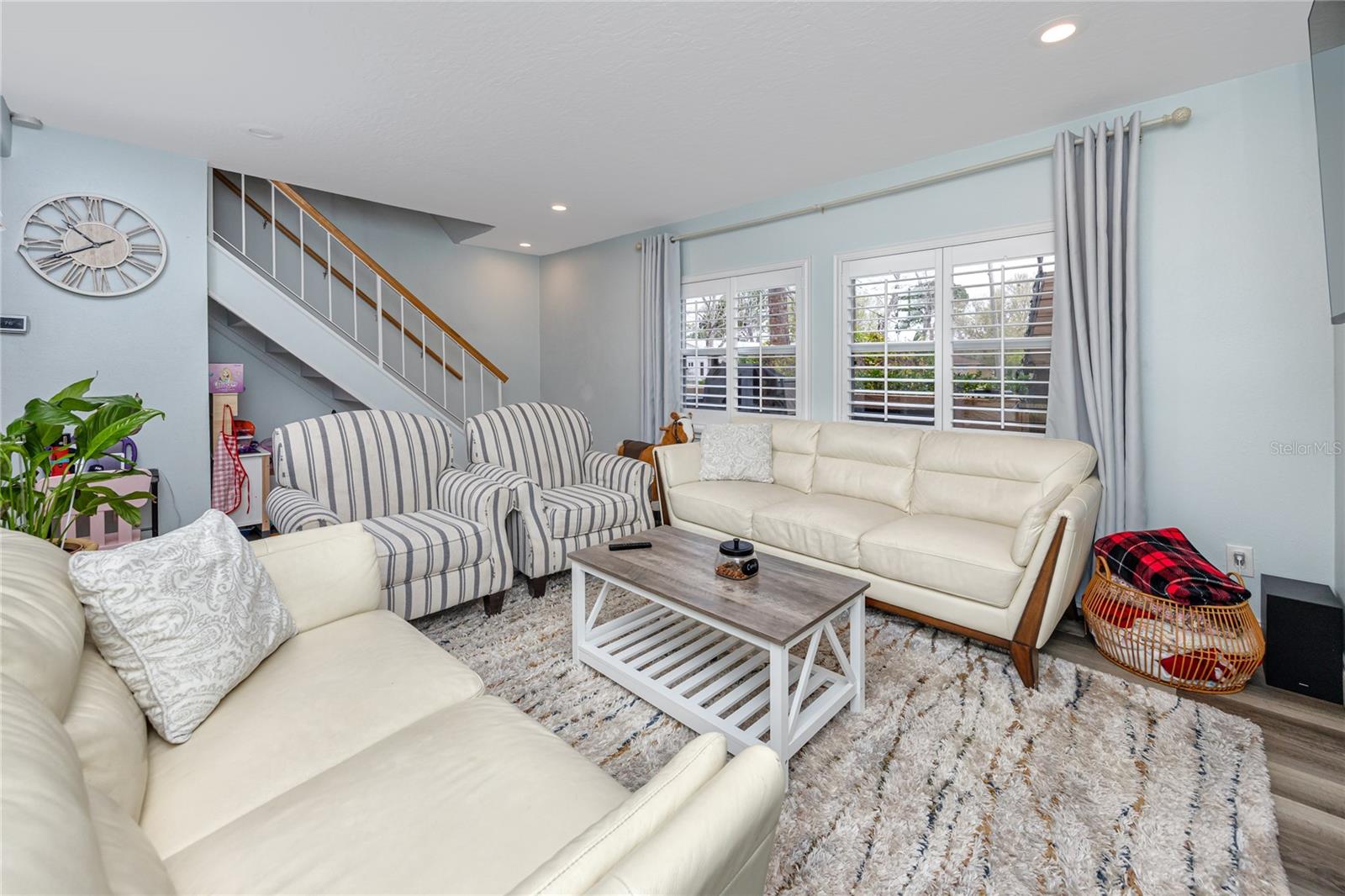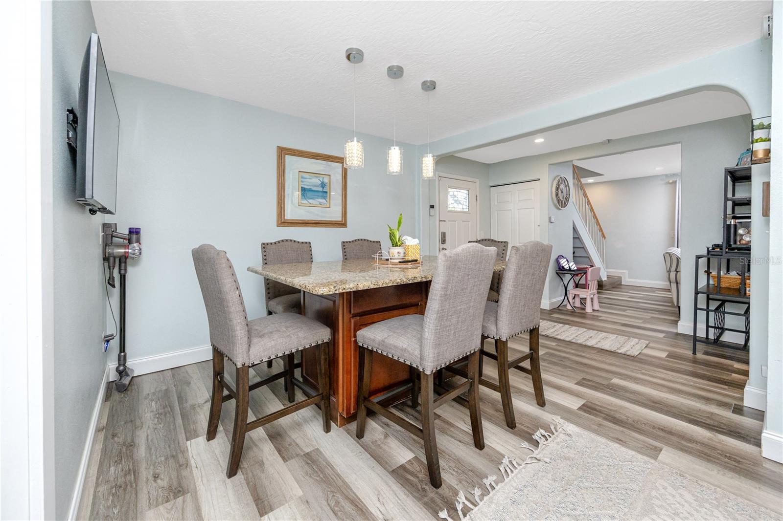 Price Improvement ! This spacious end-unit 2 story townhouse in the sought-after Clearbrooke neighborhood features 3 bedrooms and 2.5 baths. The kitchen boasts dark wood cabinets, granite countertops, a travertine backsplash, and stainless steel appliances. A custom 6-foot granite island/dining table offers extra seating and storage. The living room includes window PLANTATION SHUTTERS and a entrance door, while modern built-in lighting enhances the textured ceilings. Unit has a new electrical panel. The bottom floor features a nice sized living room, kitchen and dining combo plus a half bath and the top floor has 3 bedrooms and 2 bathrooms. French doors lead to a large 22x14 covered, screened-in tiled patio with a ceiling fan and blinds—perfect for entertaining. The unit also has a laundry closet with ample storage and a newer washer/dryer. Please note that this is not part of the 1260 sq ft. and is extra space to be enjoyed ! You will love the green space, a front porch for barbecuing, an attached carport, and an assigned second parking spot right outside the patio door, plus plenty of visitor parking. This well-maintained community offers a pool, gazebo, clubhouse, sidewalks under mature trees, and a dog park. Conveniently located near Old Tampa Bay but outside the flood zone, it's close to schools, beaches, golf courses, airports, and the downtowns of Clearwater, St. Pete, Dunedin, Safety Harbor, and Tampa. Don't miss this opportunity—come see it today!