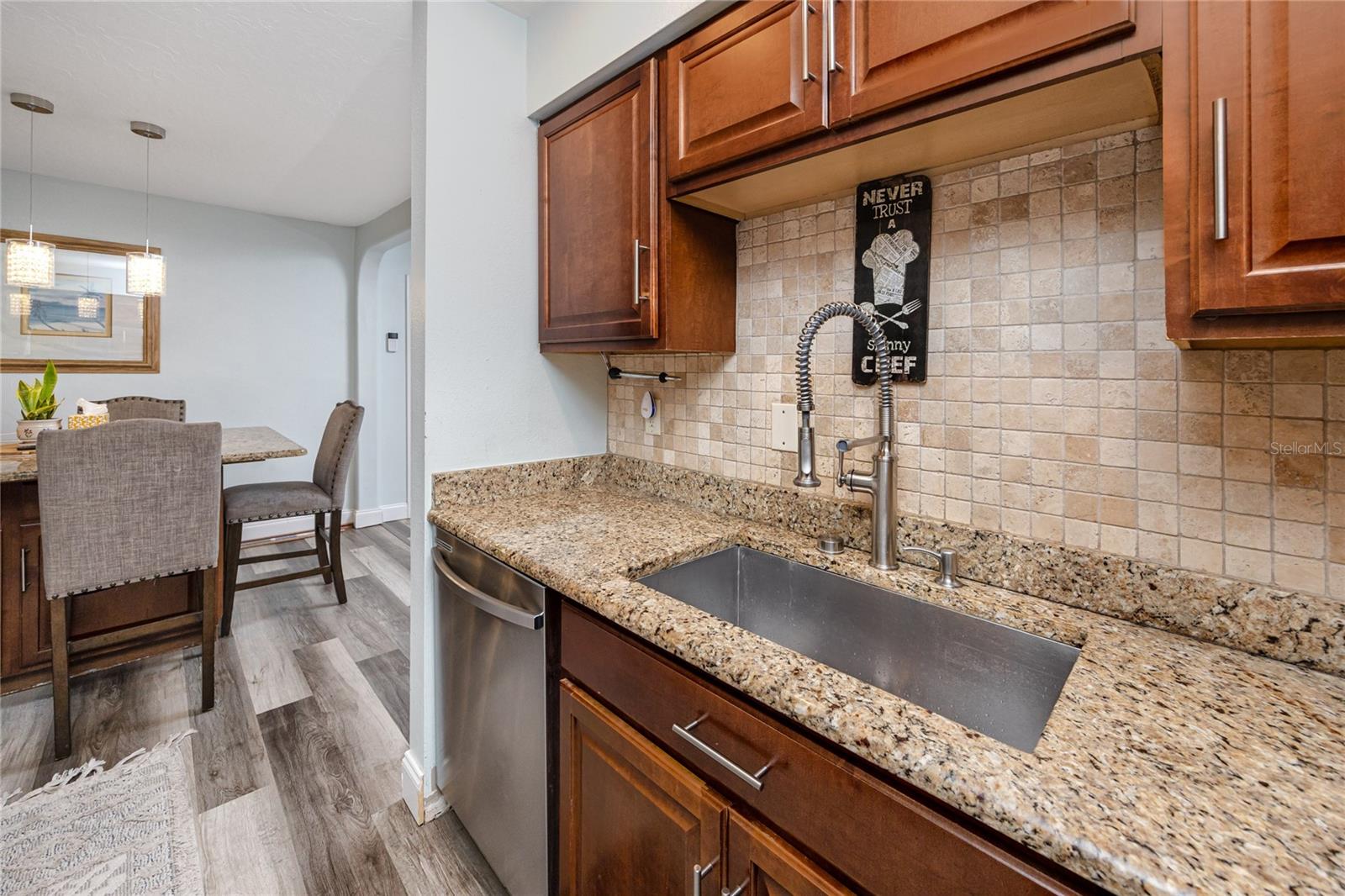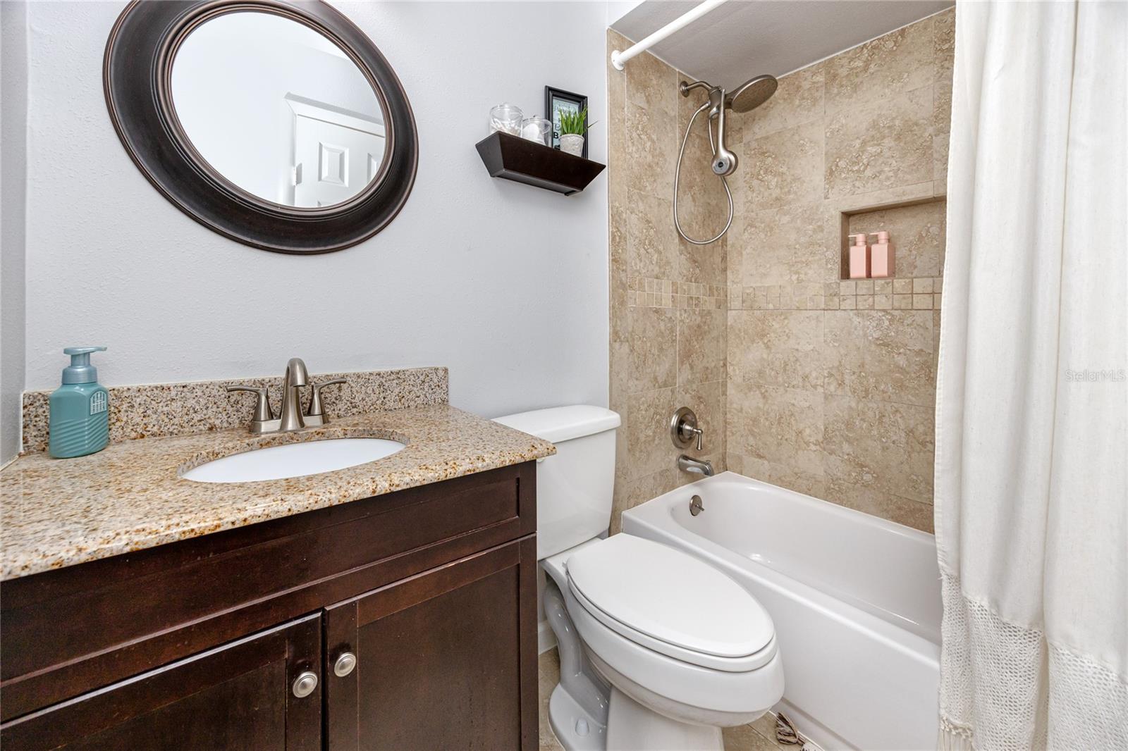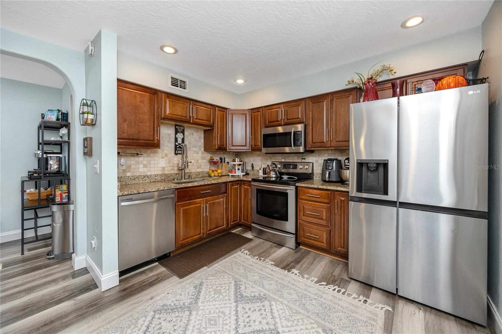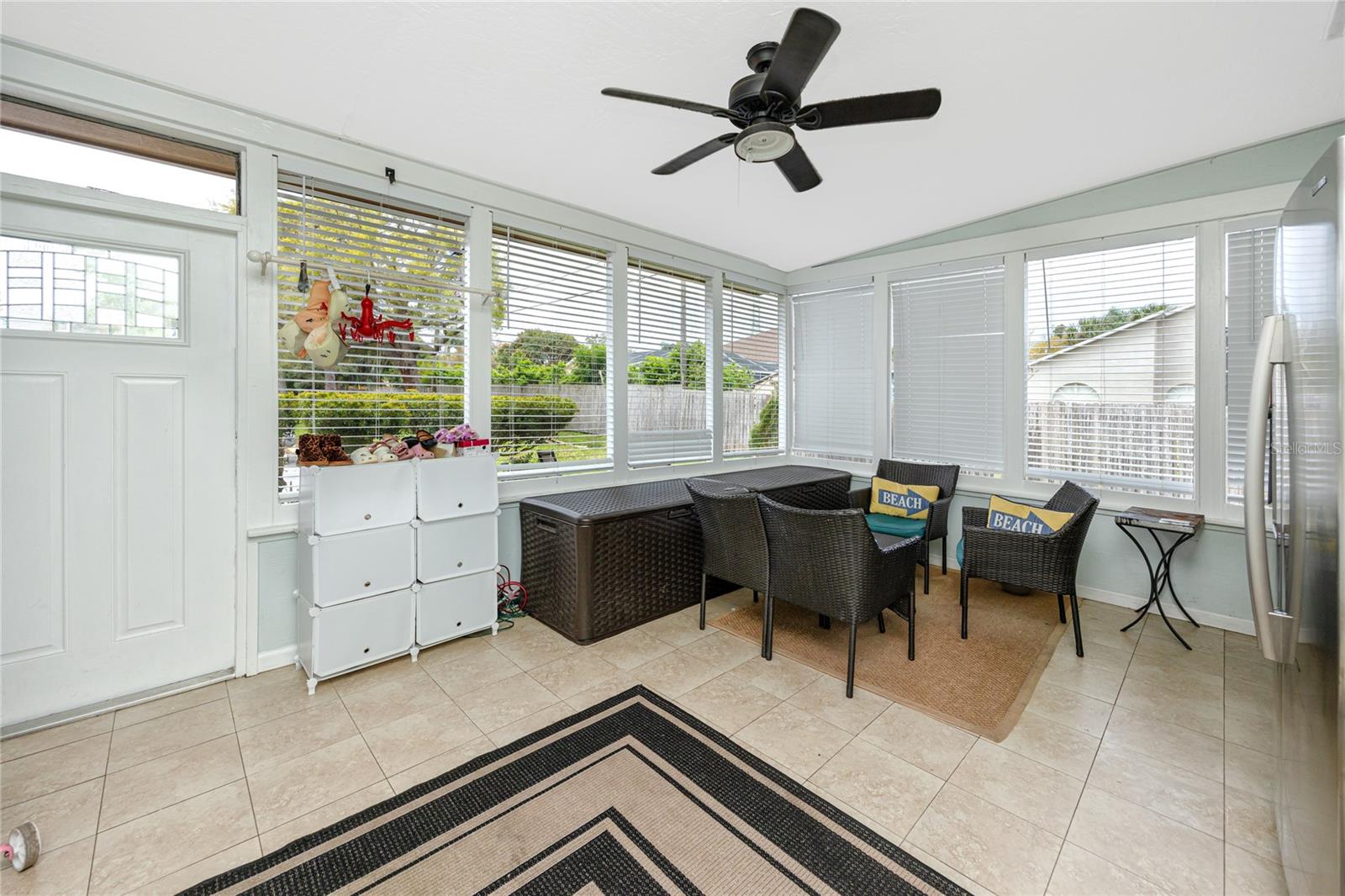 Price Improvement ! This spacious end-unit 2 story townhouse in the sought-after Clearbrooke neighborhood features 3 bedrooms and 2.5 baths. The kitchen boasts dark wood cabinets, granite countertops, a travertine backsplash, and stainless steel appliances. A custom 6-foot granite island/dining table offers extra seating and storage. The living room includes window PLANTATION SHUTTERS and a entrance door, while modern built-in lighting enhances the textured ceilings. Unit has a new electrical panel. The bottom floor features a nice sized living room, kitchen and dining combo plus a half bath and the top floor has 3 bedrooms and 2 bathrooms. French doors lead to a large 22x14 covered, screened-in tiled patio with a ceiling fan and blinds—perfect for entertaining. The unit also has a laundry closet with ample storage and a newer washer/dryer. Please note that this is not part of the 1260 sq ft. and is extra space to be enjoyed ! You will love the green space, a front porch for barbecuing, an attached carport, and an assigned second parking spot right outside the patio door, plus plenty of visitor parking. This well-maintained community offers a pool, gazebo, clubhouse, sidewalks under mature trees, and a dog park. Conveniently located near Old Tampa Bay but outside the flood zone, it's close to schools, beaches, golf courses, airports, and the downtowns of Clearwater, St. Pete, Dunedin, Safety Harbor, and Tampa. Don't miss this opportunity—come see it today!