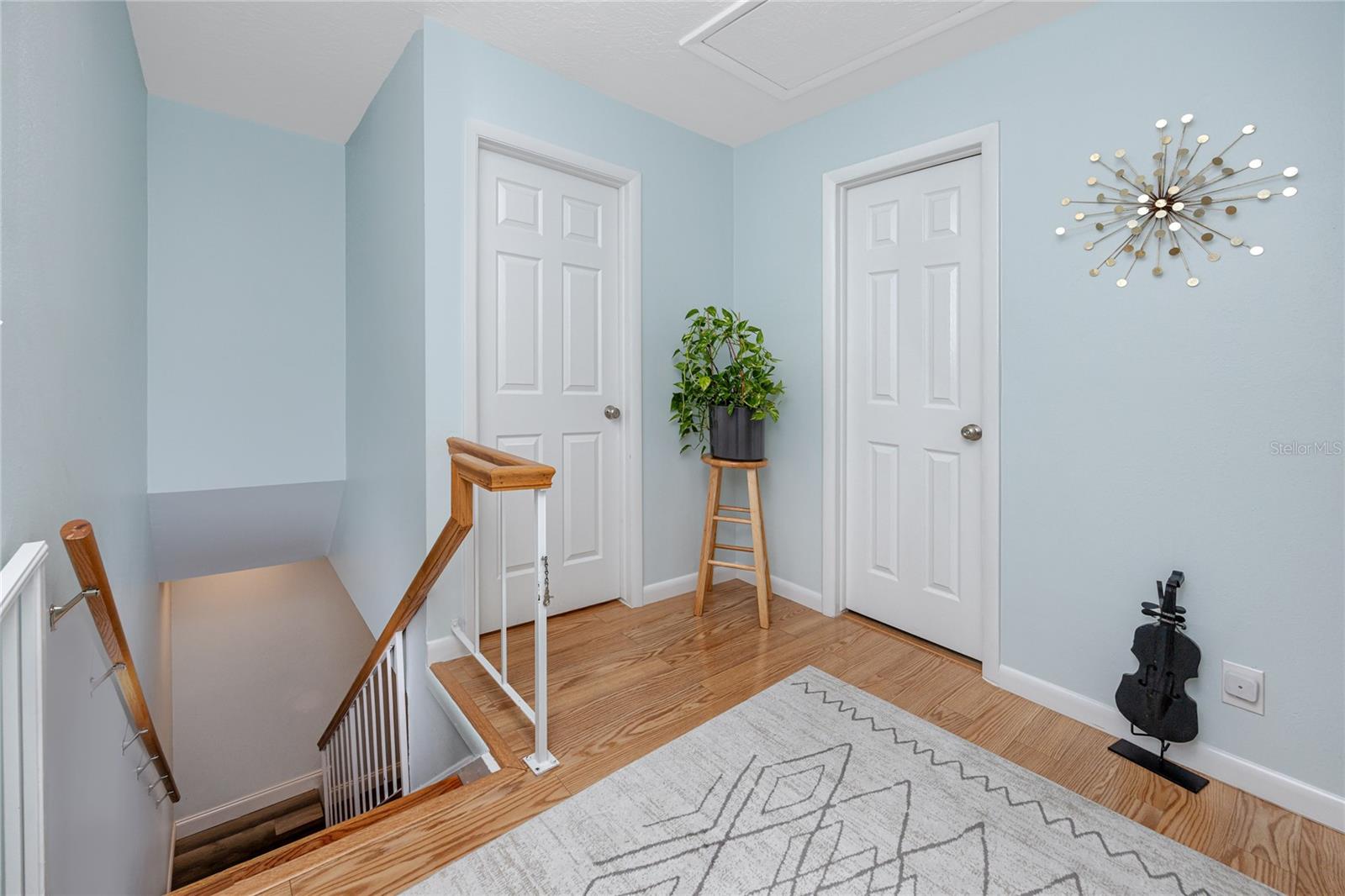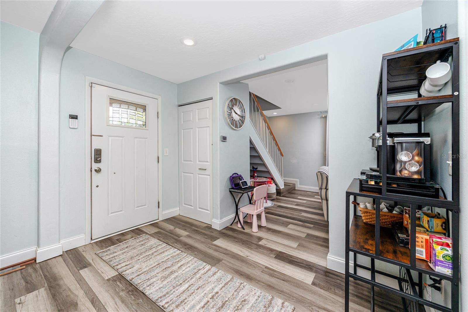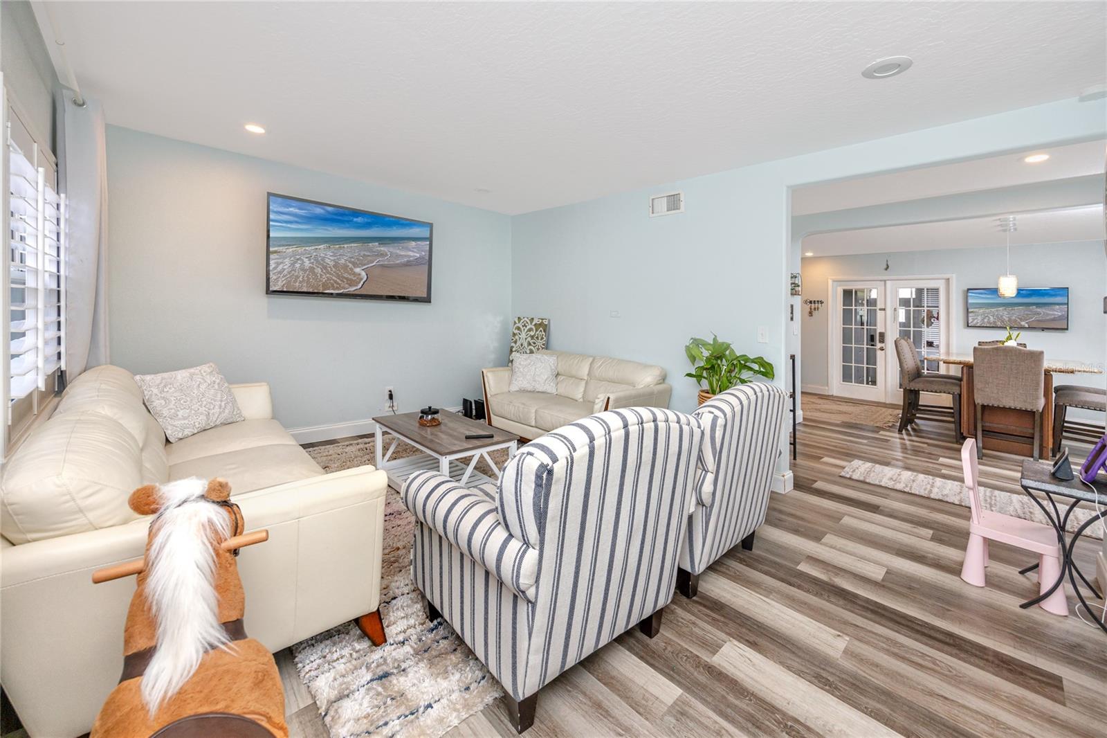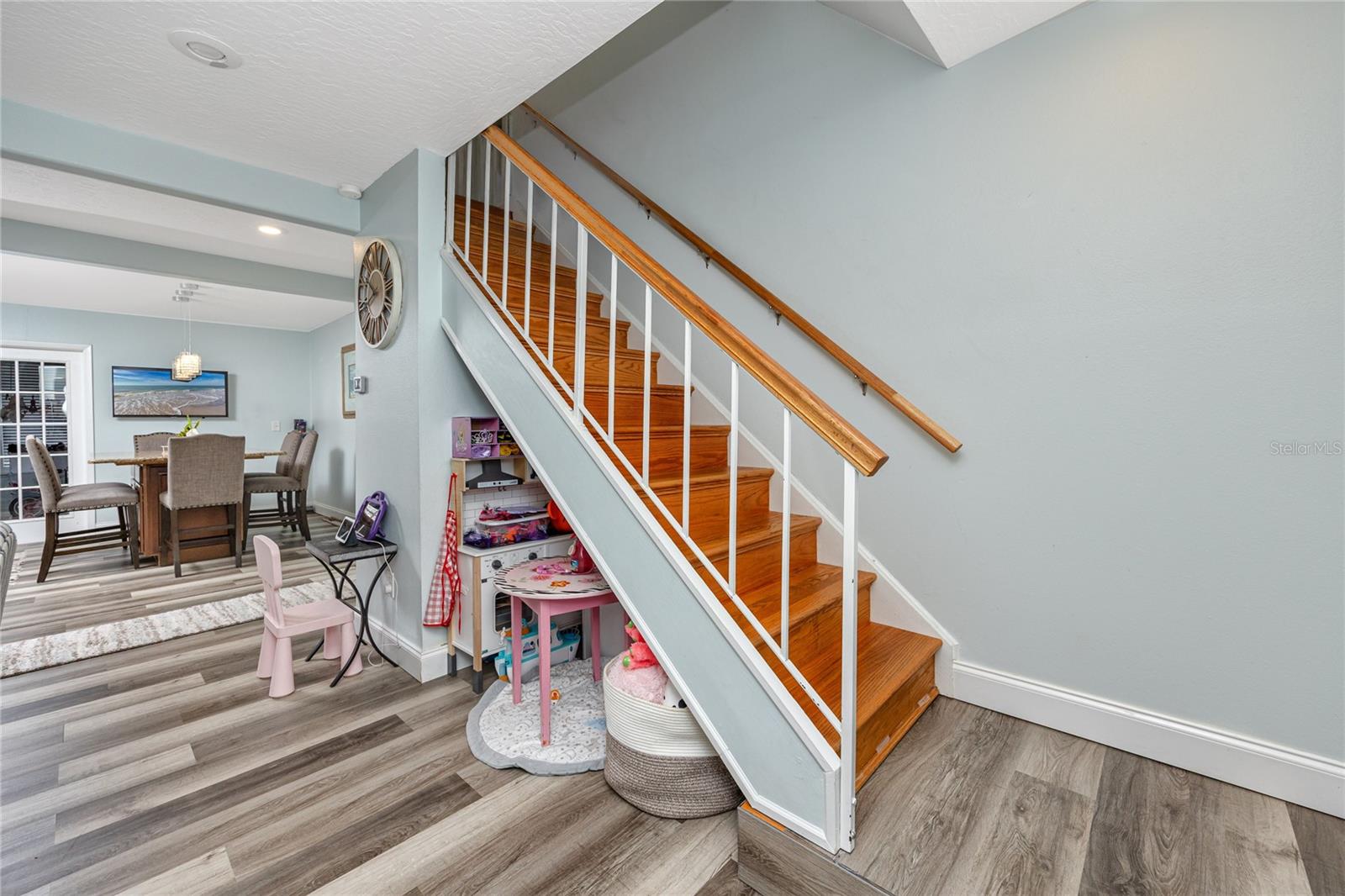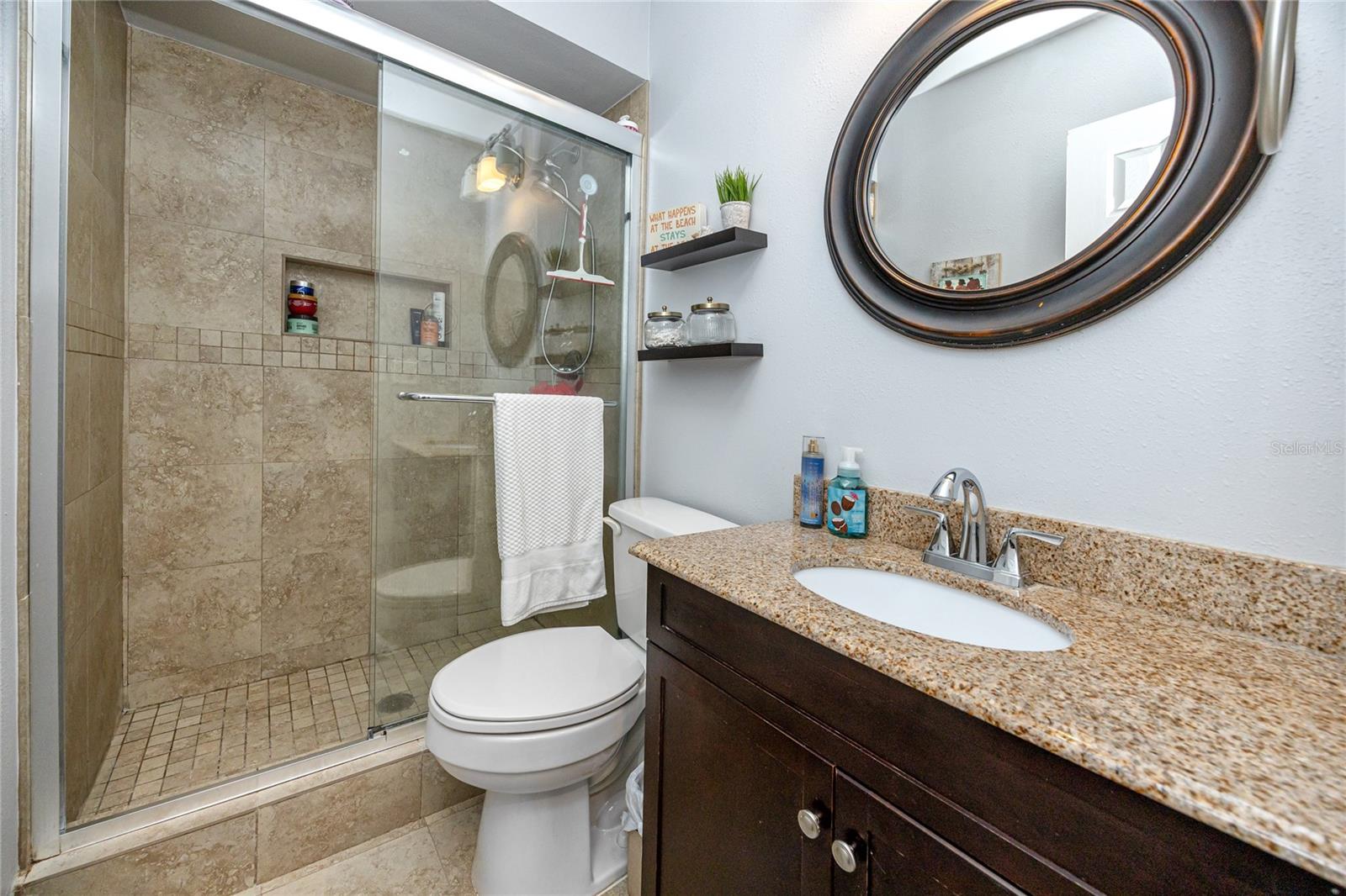 Price Improvement ! This spacious end-unit 2 story townhouse in the sought-after Clearbrooke neighborhood features 3 bedrooms and 2.5 baths. The kitchen boasts dark wood cabinets, granite countertops, a travertine backsplash, and stainless steel appliances. A custom 6-foot granite island/dining table offers extra seating and storage. The living room includes window PLANTATION SHUTTERS and a entrance door, while modern built-in lighting enhances the textured ceilings. Unit has a new electrical panel. The bottom floor features a nice sized living room, kitchen and dining combo plus a half bath and the top floor has 3 bedrooms and 2 bathrooms. French doors lead to a large 22x14 covered, screened-in tiled patio with a ceiling fan and blinds—perfect for entertaining. The unit also has a laundry closet with ample storage and a newer washer/dryer. Please note that this is not part of the 1260 sq ft. and is extra space to be enjoyed ! You will love the green space, a front porch for barbecuing, an attached carport, and an assigned second parking spot right outside the patio door, plus plenty of visitor parking. This well-maintained community offers a pool, gazebo, clubhouse, sidewalks under mature trees, and a dog park. Conveniently located near Old Tampa Bay but outside the flood zone, it's close to schools, beaches, golf courses, airports, and the downtowns of Clearwater, St. Pete, Dunedin, Safety Harbor, and Tampa. Don't miss this opportunity—come see it today!
