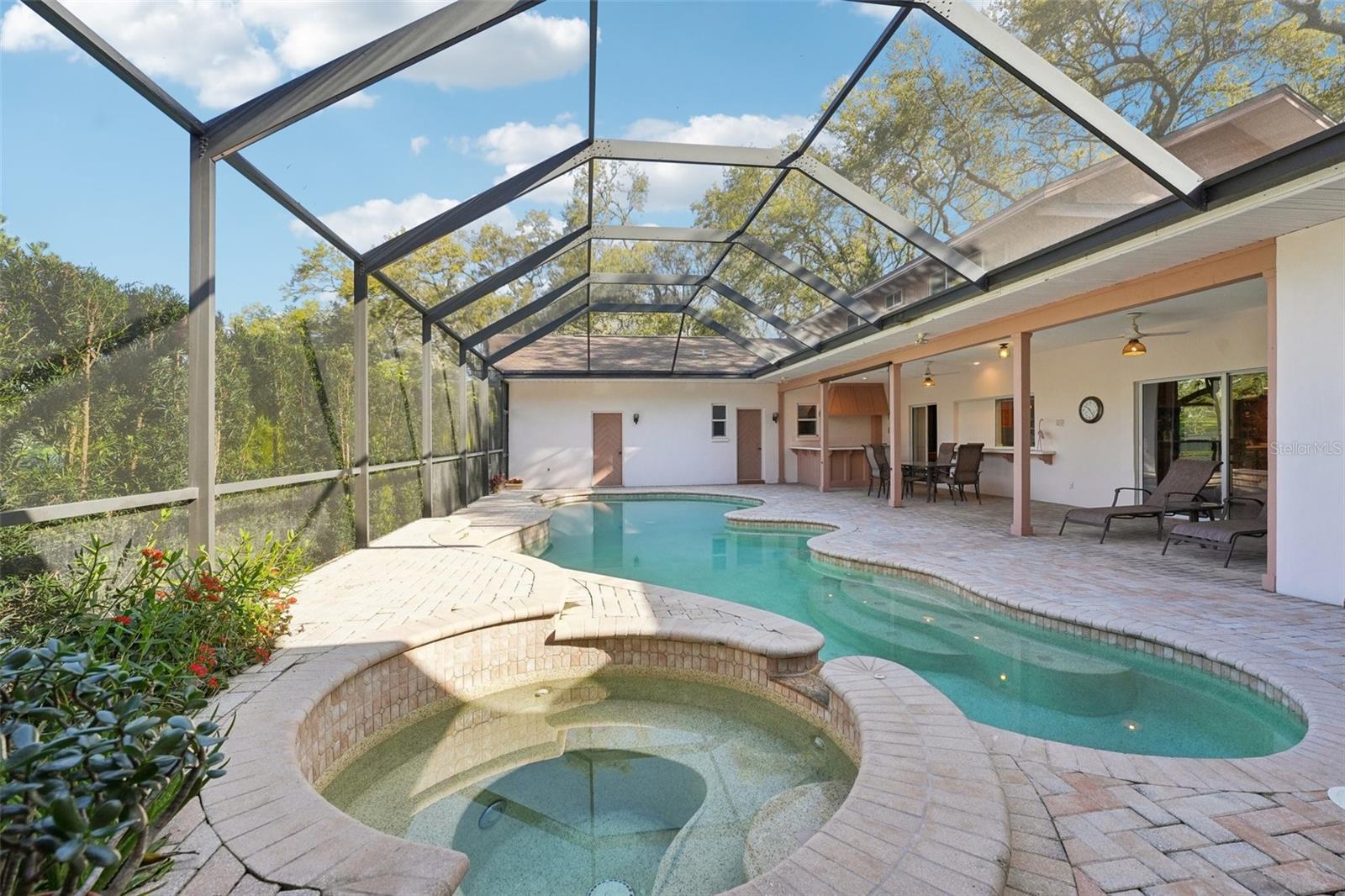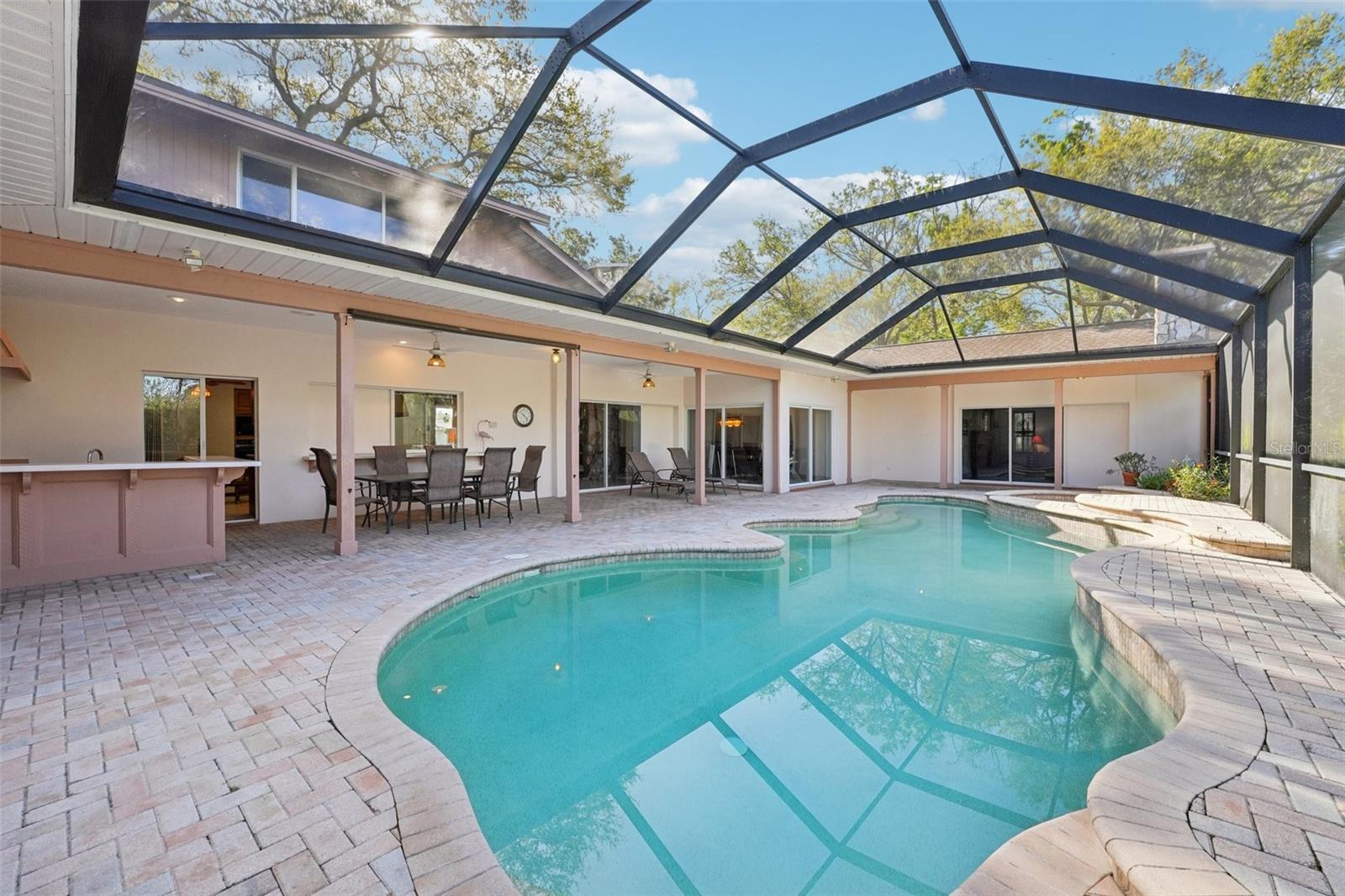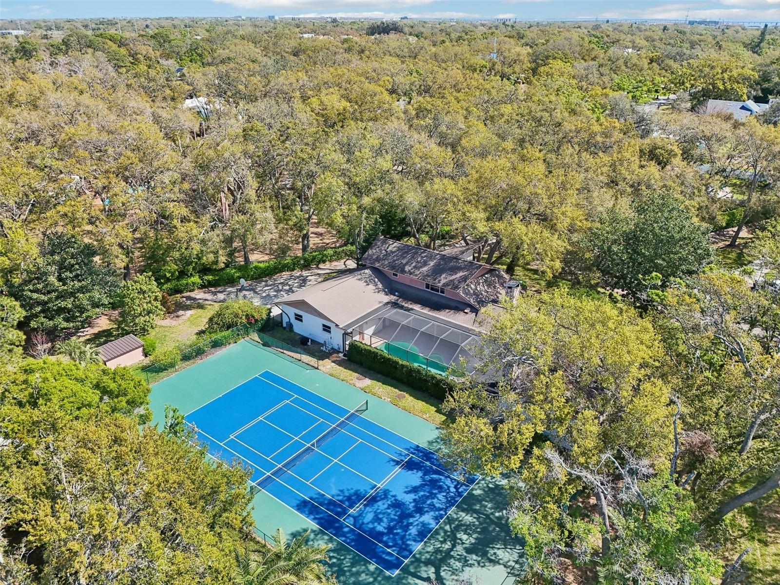 **BRAND NEW ROOF. BRING OFFERS. Mortgage savings may be available for buyers of this listing and seller credit** FIRST TIME on the Market, welcome to a CUSTOM One-of-a-Kind Executive Residence! Wedgewood Estates POOL Home is perfectly placed on a tranquil cul-de-sac, surrounded by custom homes on oversized lots. Priced to be able to add your own touches, and with the right offer, the seller will offer a FLOORING CREDIT. Home has 3 independent heat pumps (1 is 2023) with emergency heat strips so the heat pumps furnish both heat and cool; garage has a 240v 20a receptacle that can be used for EV charging. Architecturally unique, this home is a blend of sophistication and functionality with loads of outdoor leisure in the mix! Expansive design boasts soaring ceilings, formal living and dining room as well as a kitchen open to the family room for both ease of entertaining and daily living. Just pulling up to the curb you’ll be impressed with the home’s grandeur and placement, with the long driveway disappearing into the back so as not to detract from the fabulous front. So much space for multiple guest parking or water craft and an oversized THREE CAR Garage with workshop. The expansive kitchen is sure to be the hub of the home accommodating cooks and guests alike! It features ample storage like a walk-in pantry, banks of cabinets, counter space forever, a cooktop with custom hood, breakfast bar and a nook for in-kitchen dining. The kitchen ties in smoothly with the family room where a grand, floor-to-ceiling stone fireplace serves as the stunning centerpiece. This majestic feature no only adds warmth and coziness but is a functional wood-burning fireplace that double-sides into the game room to enhance that space. Directly off of the pool area in back is a dedicated game room complete with a high-quality pool table! This roomy layout offers space for additional gaming or relaxation areas. To the back of the home for maximum privacy are two bedrooms, one can be used as an office or guest suite as it is connected to a full bath. The other is the downstairs primary room that is sure to impress and become the retreat from the days stress. This spacious sanctuary features a large and cozy fireplace with ample room for a sitting area and views to the pool. The spa-like primary bath boasts a large soaking jet tub, double sinks with vanity in-between and an oversized walk-in shower. The remaining two bedrooms are upstairs with a shared full bathroom and two commodes. Outdoors, relish in the private resort-style amenities, first the sparkling Pool and Spa surrounded by pavers and enclosed by a spacious, screened Lanai – offering year-round enjoyment without the insects. The lovely freeform pool with HEAT is oversized at 40’ long for laps, with a sweet spa to relax in after a game of Tennis or Pickleball out on the NEWLY resurfaced courts with new nets and poles offering endless opportunities for recreation right in your own backyard. Whether you’re lounging by the pool, staying active on the courts, or hosting outdoor gatherings, this property provides the ultimate in comfort, convenience, and lifestyle. HVAC up 2010, down 2023. This home of distinction is centrally located close to local golf courses, world-famous beaches and just a short drive to St. Petersburg and Tampa. Don’t miss the chance to own a home that combines sophistication with extraordinary outdoor living!