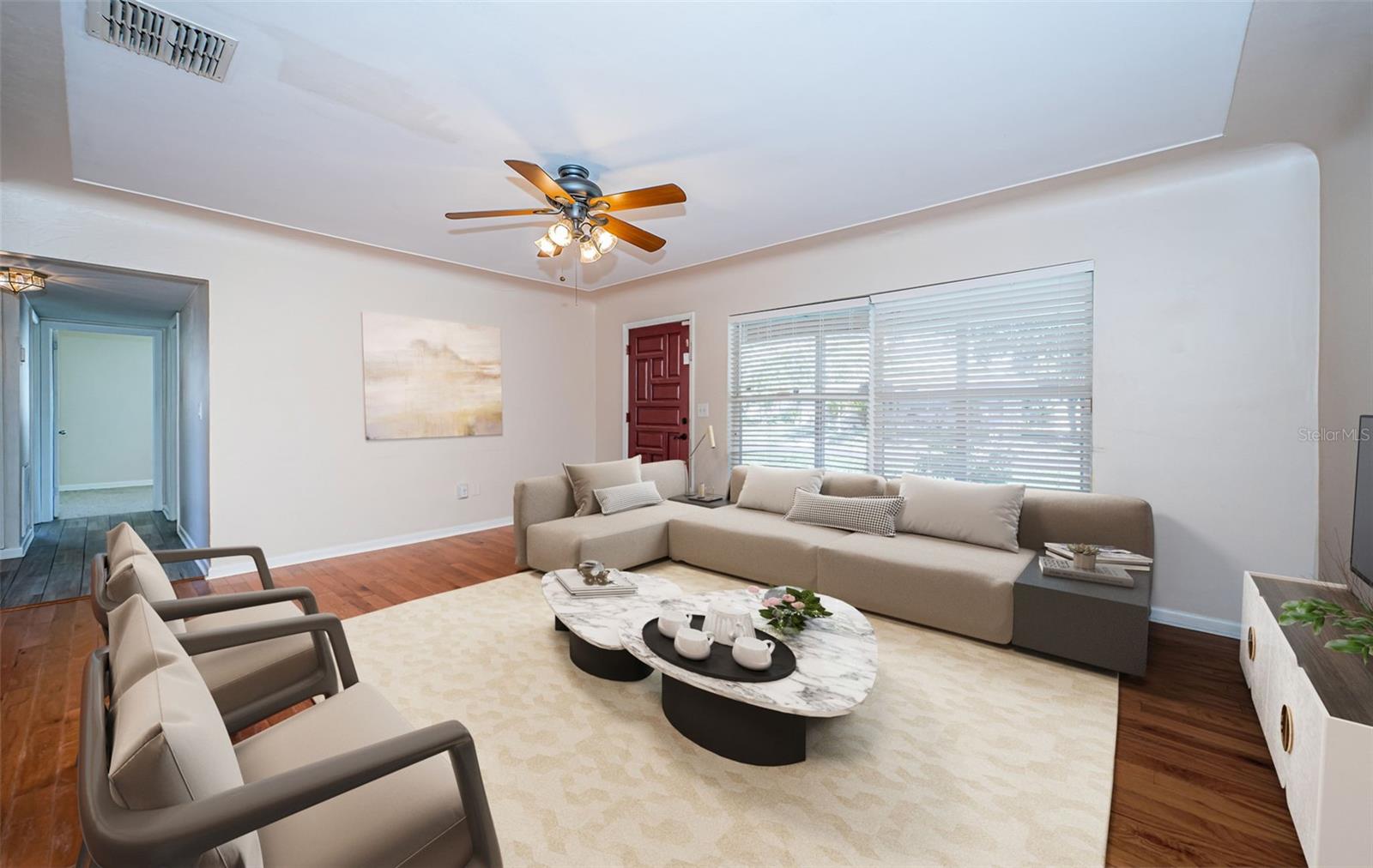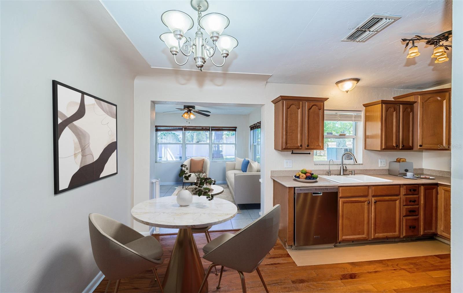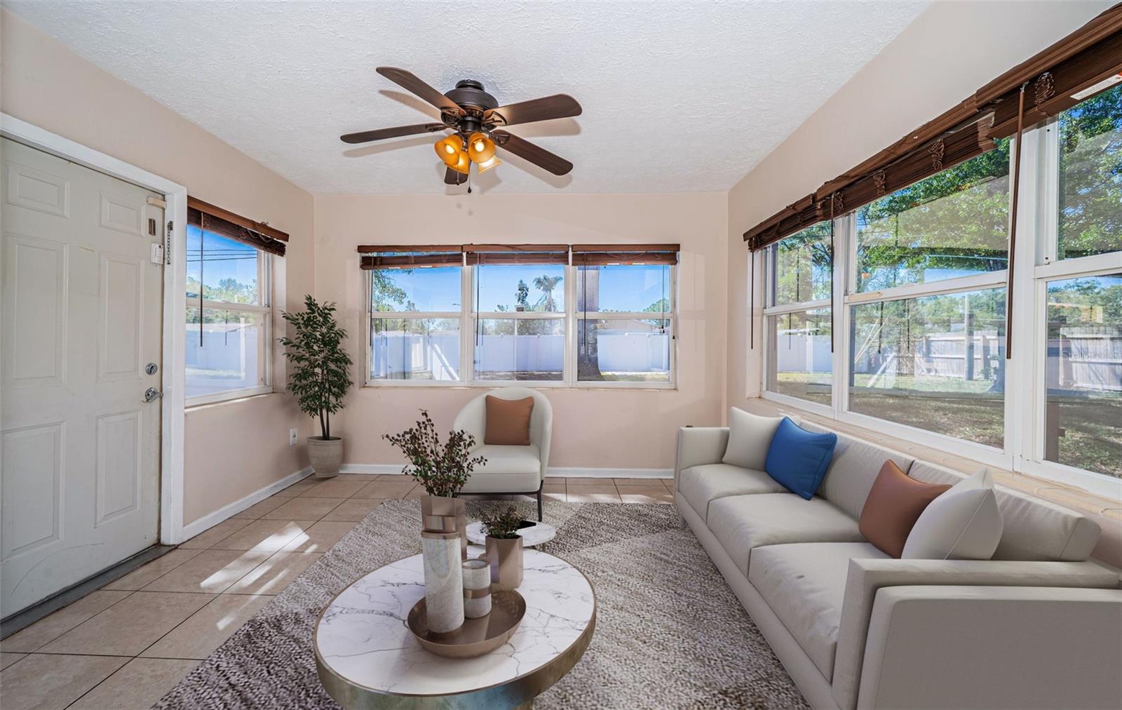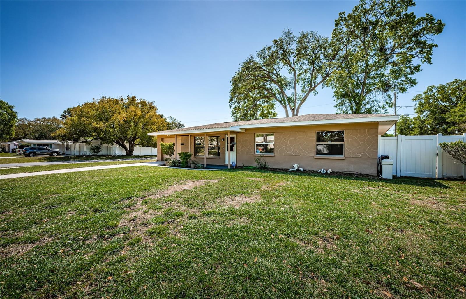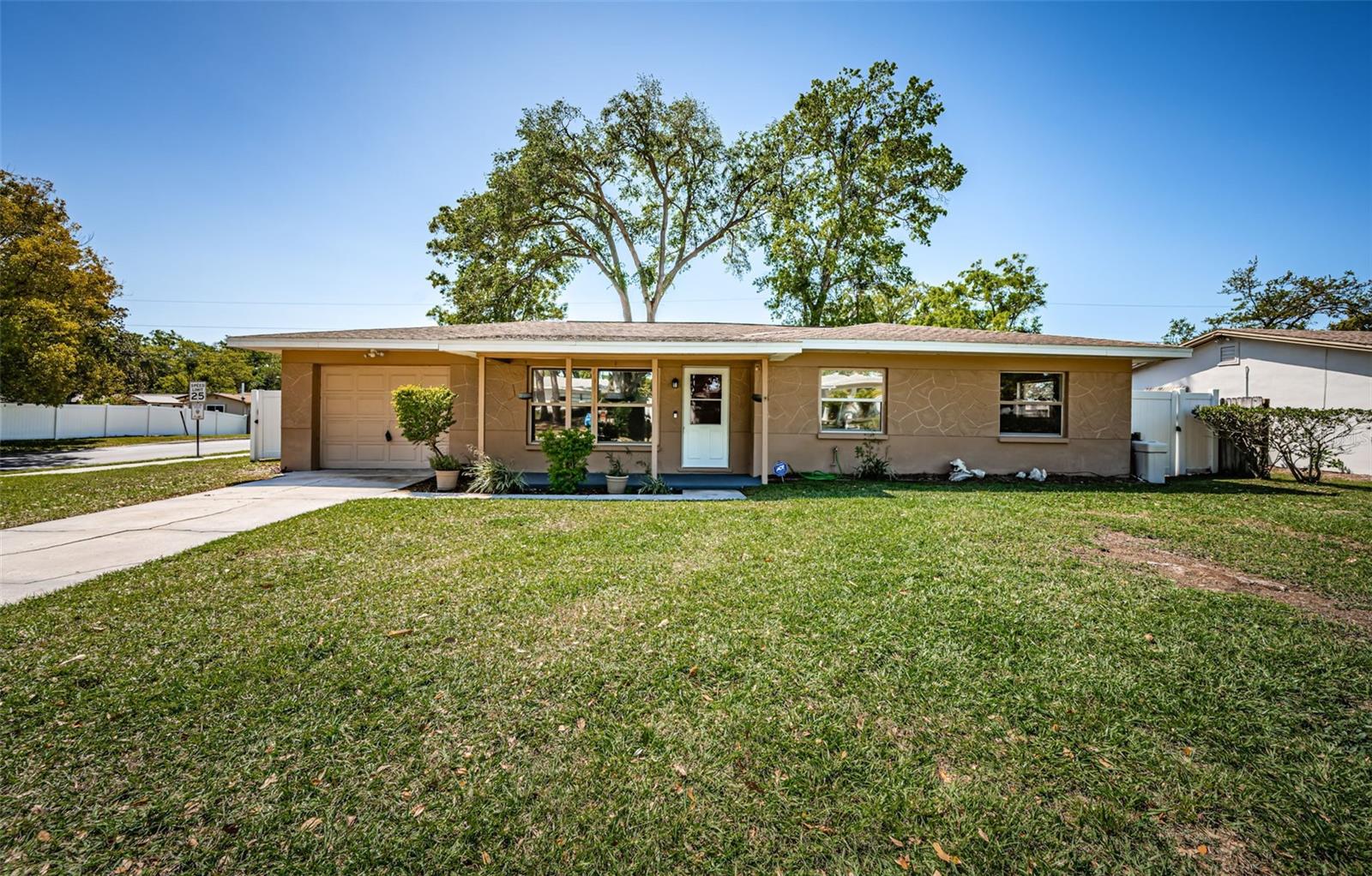 One or more photo(s) has been virtually staged. Seller is motivated and will consider all reasonable offers. Discover this charming mid-century home on a corner lot with a large fenced yard-perfect for kids and pets. Inside, the open floor plan creates seamless flow between the family room, kitchen, dining and living areas, all bathed in natural light. The kitchen offers ample cabinet and counter space, stainless steel appliances, and a reverse osmosis system. With three bedrooms and two baths, this home is an ideal starter property with room to grow. Located in a quiet neighborhood near US-19 and McMullen Booth Road, you're just a short drive from major urban centers, international airports, world-class beaches, and top-tier entertainment and sports venues. Seller will consider replacing roof with acceptable offer, HAVC 2023, flat roof 2022. Seller financing is NOT not an option. Don't miss this opportunity-to schedule your showing today.