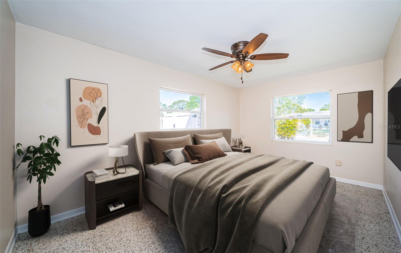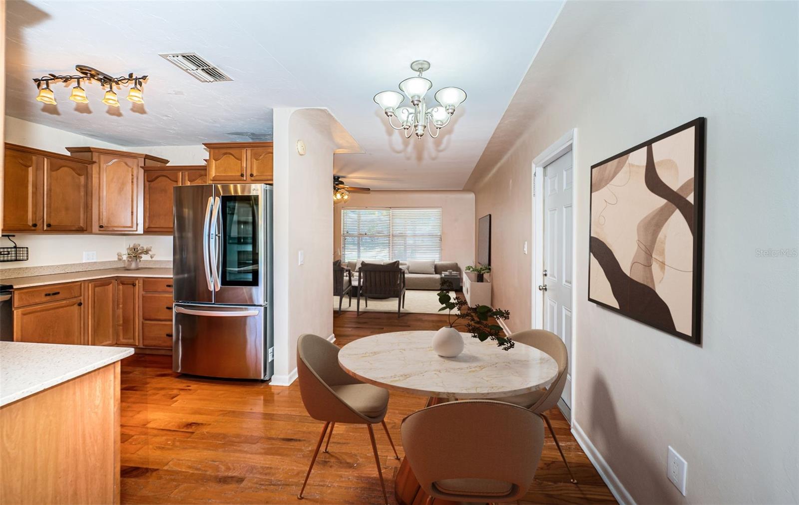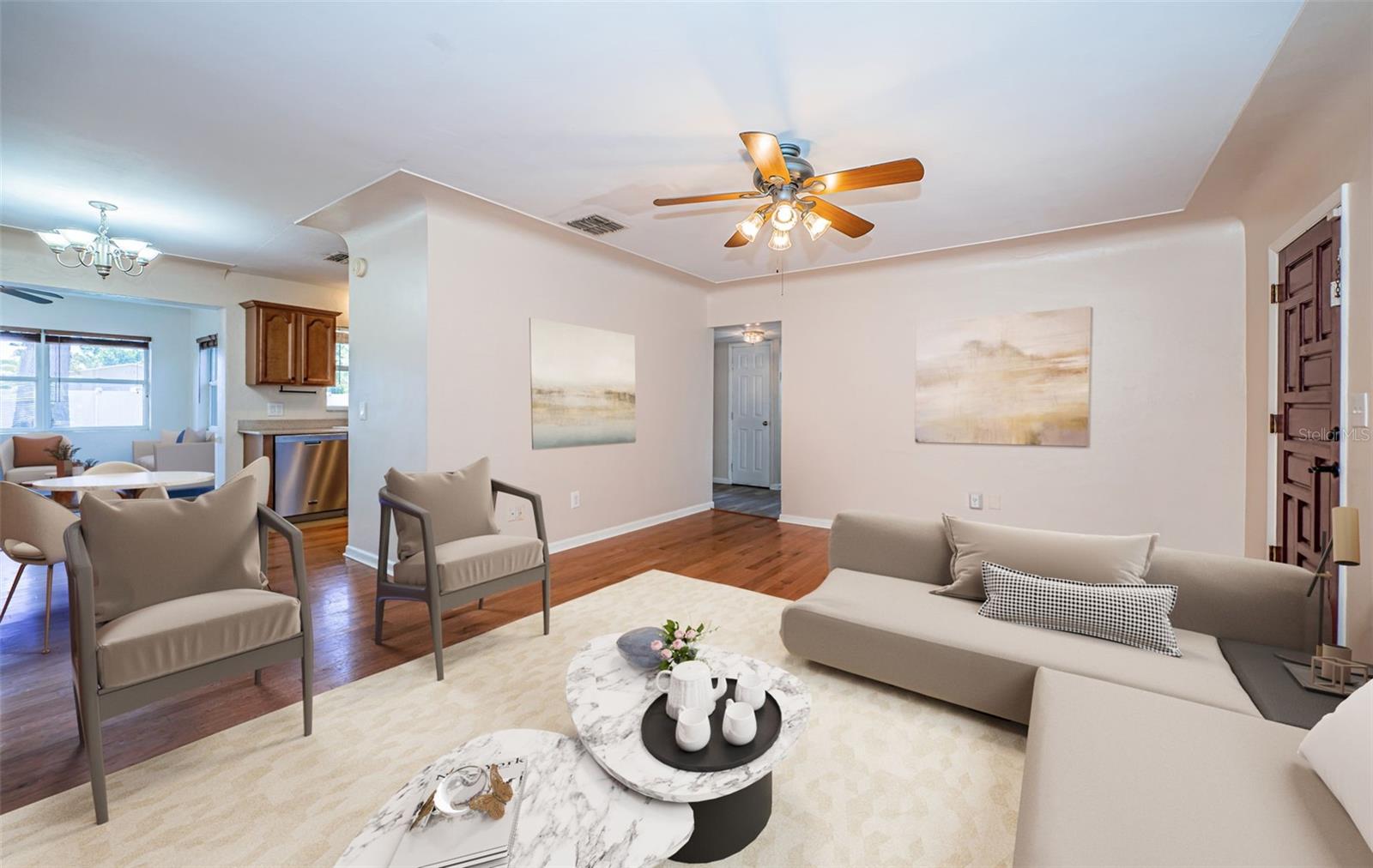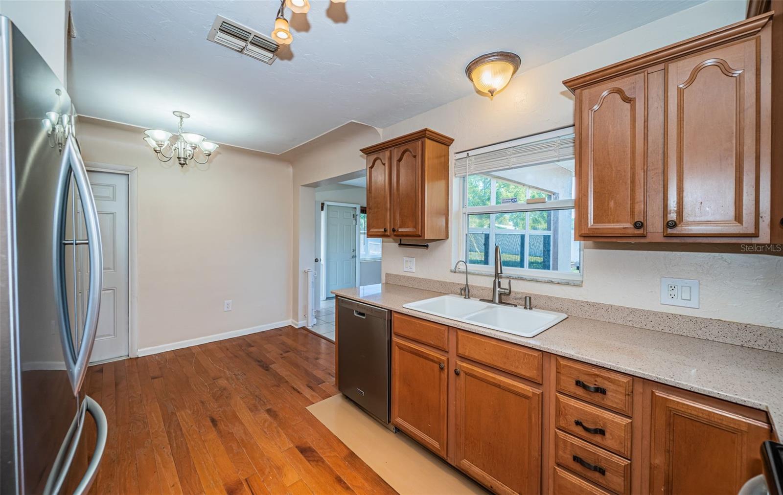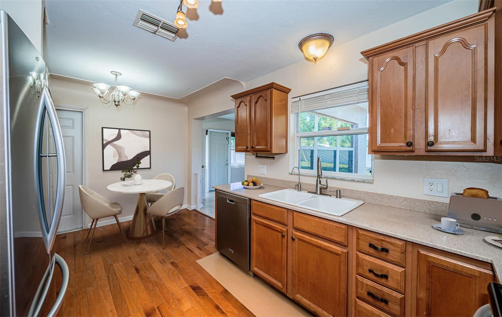 One or more photo(s) has been virtually staged. Seller is motivated and will consider all reasonable offers. Discover this charming mid-century home on a corner lot with a large fenced yard-perfect for kids and pets. Inside, the open floor plan creates seamless flow between the family room, kitchen, dining and living areas, all bathed in natural light. The kitchen offers ample cabinet and counter space, stainless steel appliances, and a reverse osmosis system. With three bedrooms and two baths, this home is an ideal starter property with room to grow. Located in a quiet neighborhood near US-19 and McMullen Booth Road, you're just a short drive from major urban centers, international airports, world-class beaches, and top-tier entertainment and sports venues. Seller will consider replacing roof with acceptable offer, HAVC 2023, flat roof 2022. Seller financing is NOT not an option. Don't miss this opportunity-to schedule your showing today.