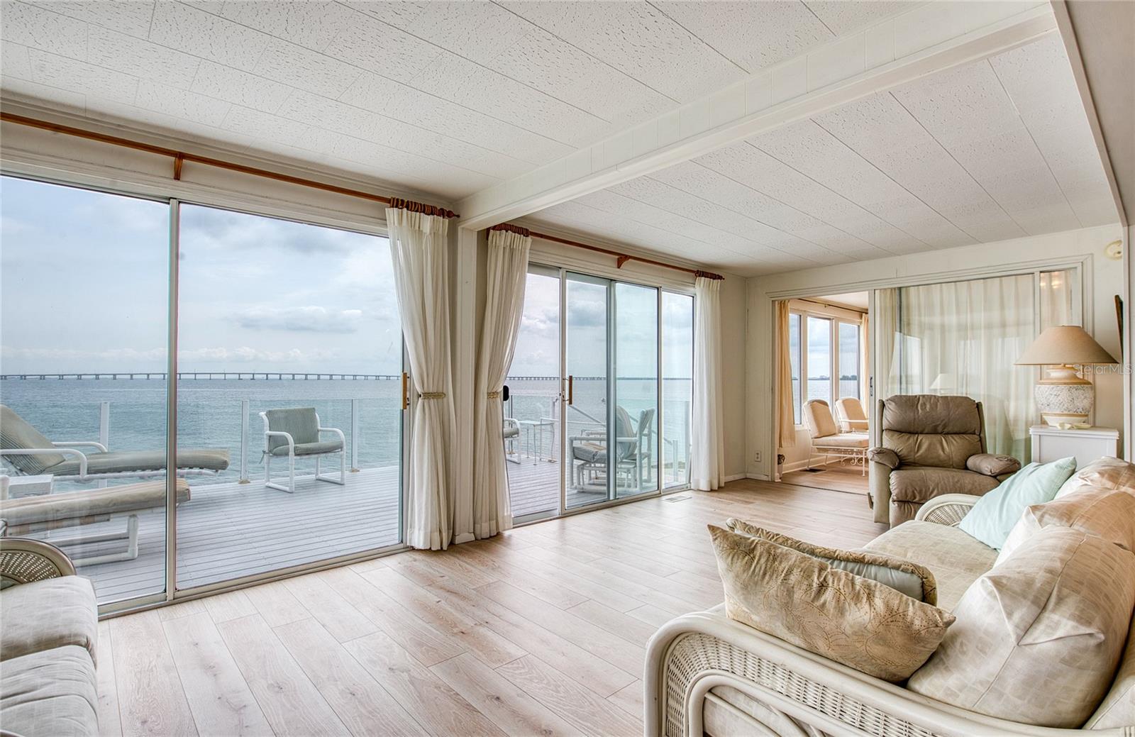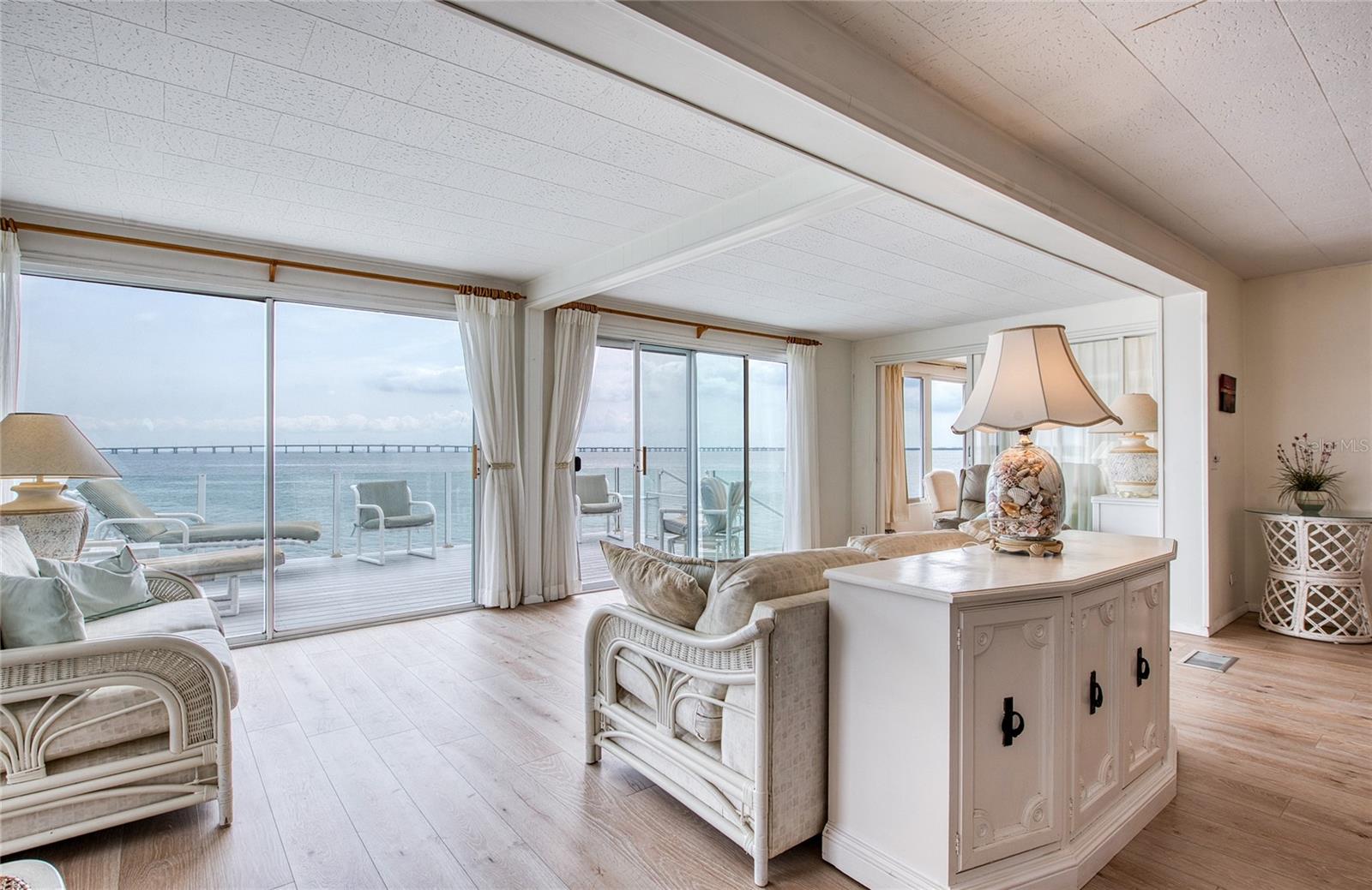Unparalleled Tampa Bay Waterfront: Witness Nature's Spectacle Daily! Imagine waking up to the gentle lapping of Tampa Bay, where manatees and dolphins are your daily neighbors. This meticulously maintained Jacobsen Mobile Home offers an exceptionally rare opportunity to experience waterfront living at its finest. Embrace a life of effortless waterfront enjoyment in this spacious two-bedroom, two-bath home boasting 1,380 square feet of comfortable living space. The recently renovated kitchen features brand-new, stainless steel appliances including a refrigerator, microwave, and dishwasher. Enjoy the elegance and durability of engineered vinyl plank flooring throughout, along with the convenience of a new washer and dryer. For peace of mind, the vapor barrier and all ductwork have also been recently replaced. Step out onto your unique deck enclosed by glass, offering an unparalleled waterfront vantage point. Picture yourself savoring your morning coffee just steps from Tampa Bay, witnessing the captivating dance of local wildlife. Don't miss this extraordinary chance to own a piece of Tampa Bay paradise. This move-in ready home is being offered fully furnished for your immediate enjoyment. Discover the exceptional waterfront lifestyle offered at Bay Aristocrat Village! Schedule your visit today to experience this premier Pinellas County manufactured home community firsthand, where you own your property. Enjoy a low monthly maintenance fee of just $360, covering lawn care, trash removal, water, and sewer services. Bay Aristocrat Village is an active 55+ retirement community boasting an array of desirable amenities, including a heated pool, relaxing Jacuzzi, shuffleboard courts, a vibrant clubhouse with diverse activities, and the unparalleled pleasure of two private fishing piers directly on Tampa Bay. Conveniently situated in beautiful Bay Aristocrat Village, you'll find yourself just minutes from world-renowned Clearwater Beach, upscale shopping destinations, a variety of restaurants, major medical facilities, and easy access to two international airports. Only one cat per home is allowed. No dogs allowed. Contact community office regarding (ESA) pets.