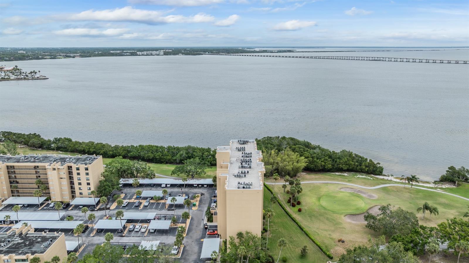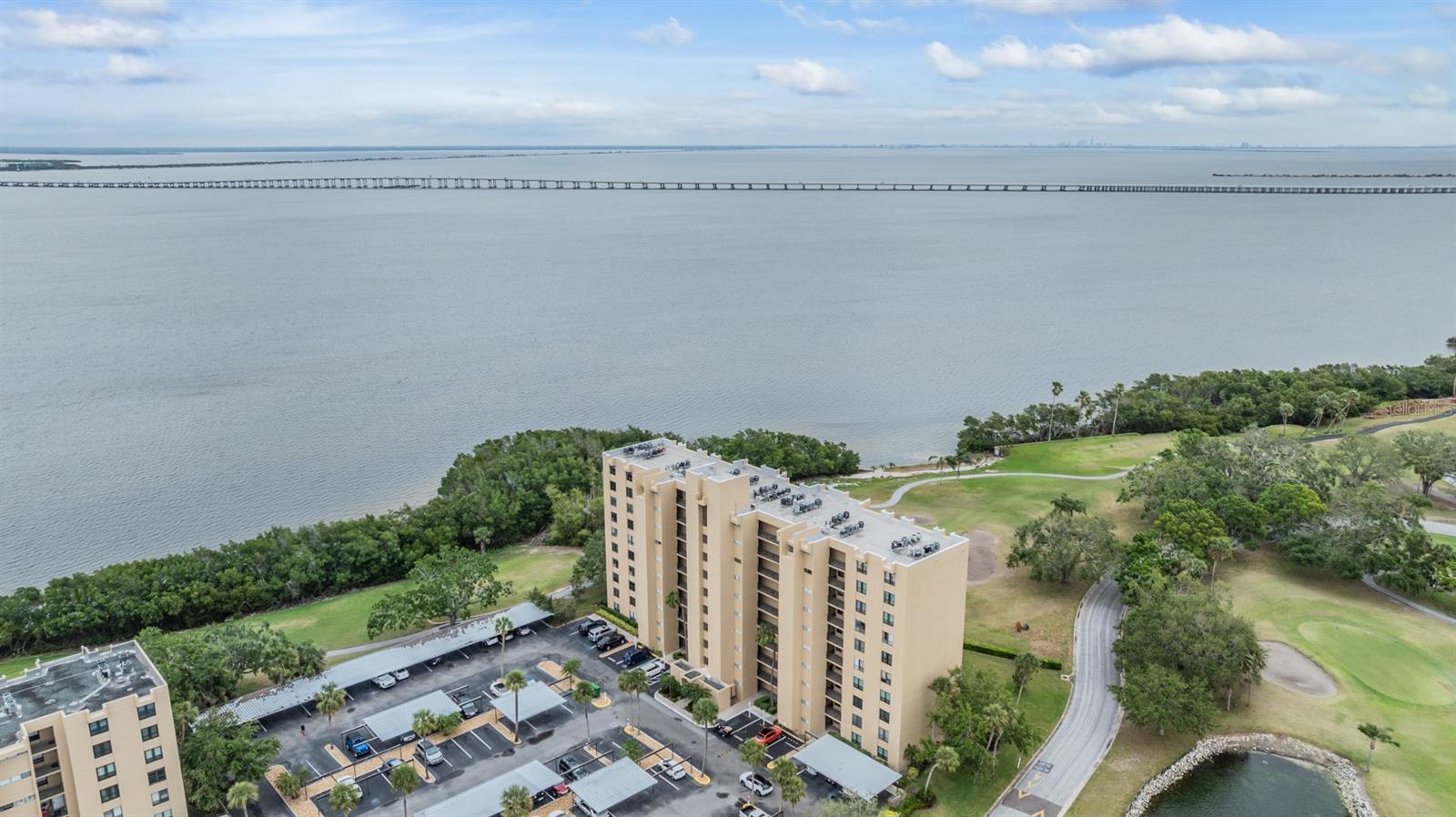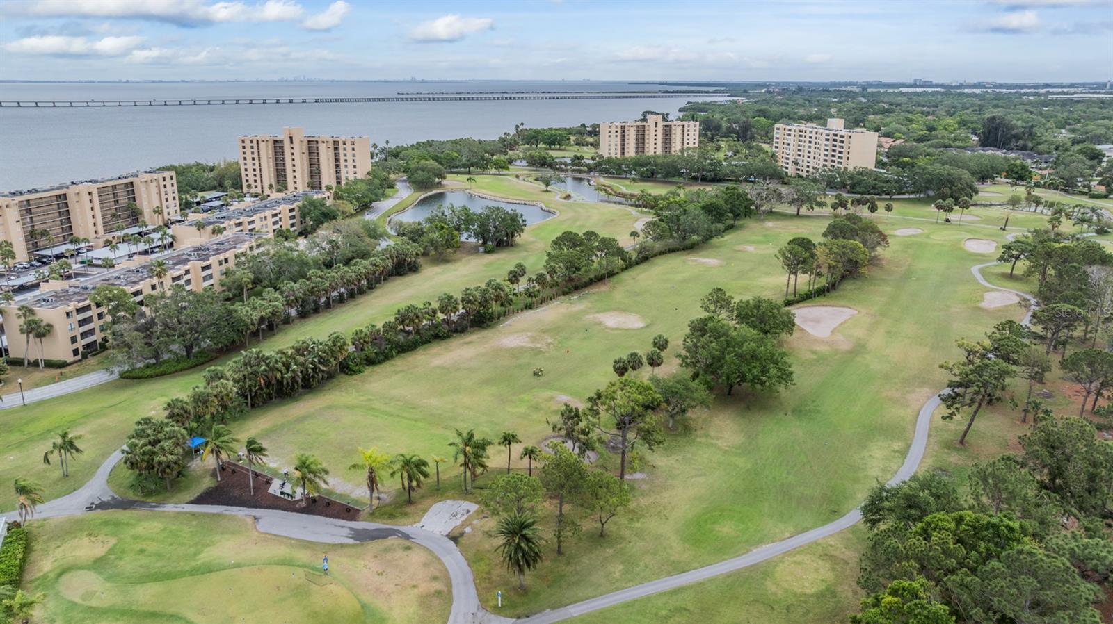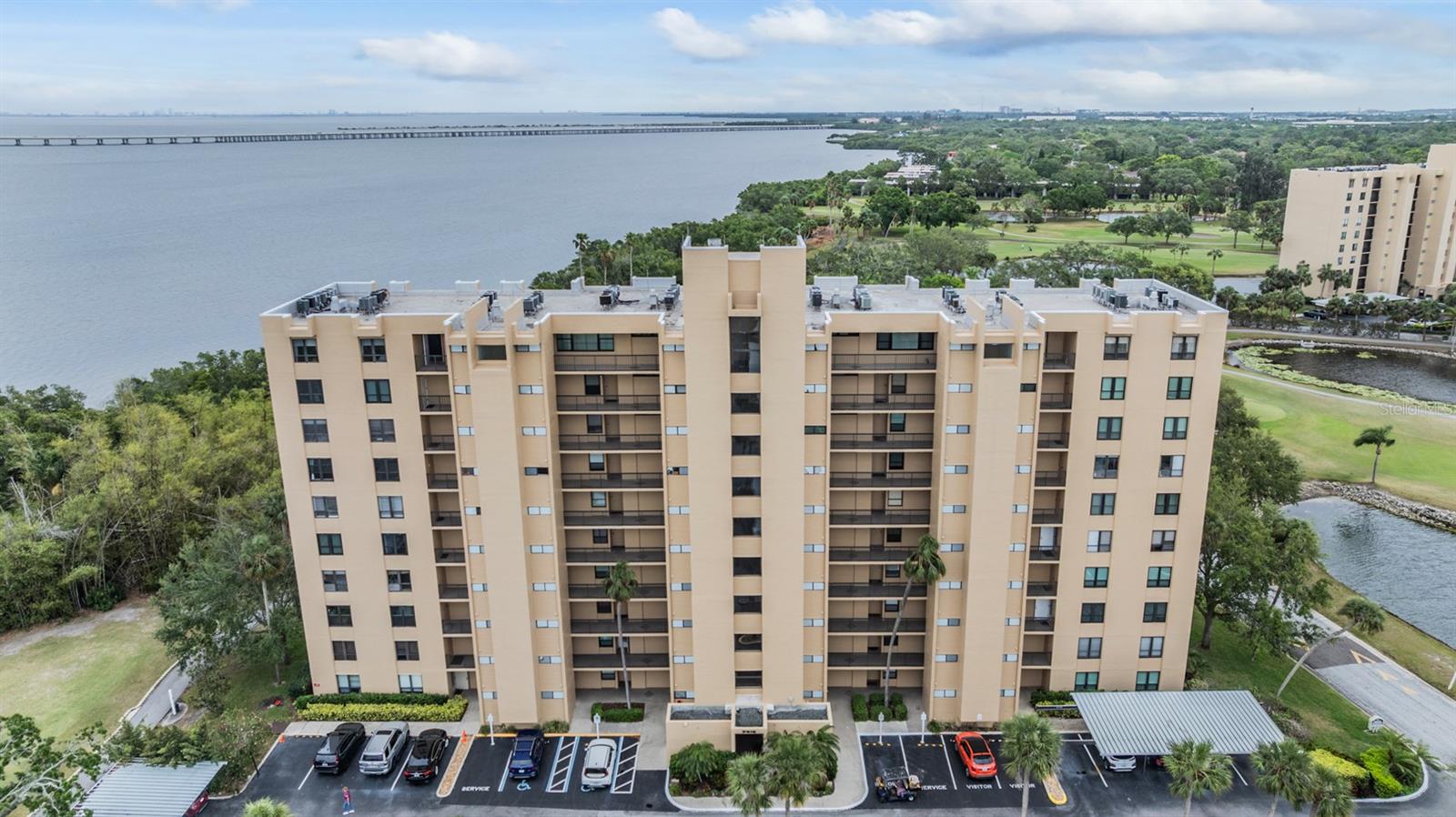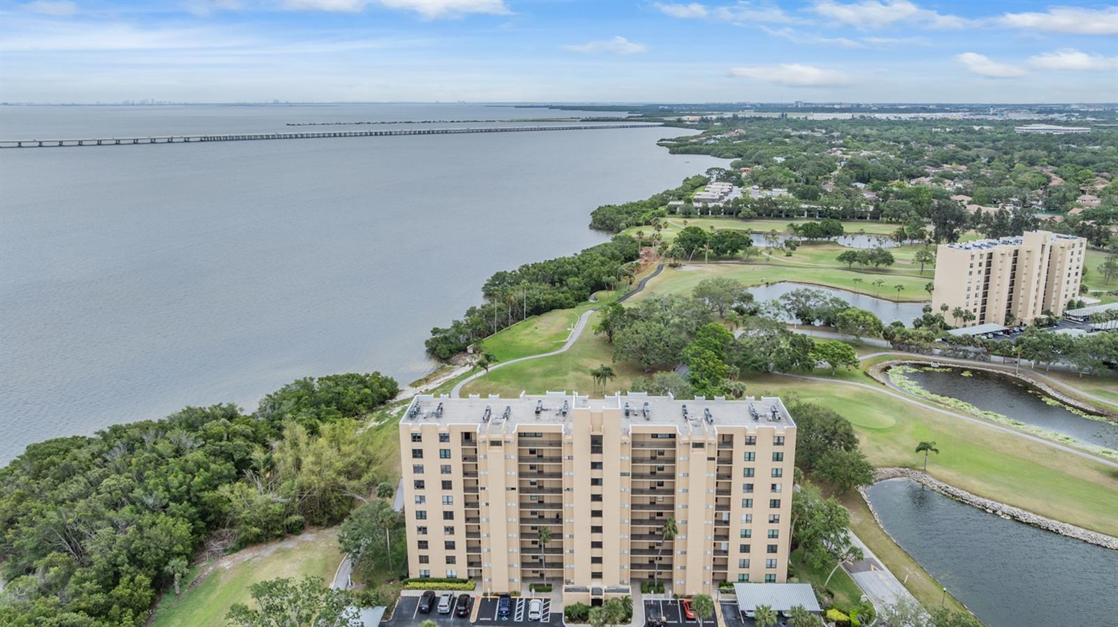 Step into this beautifully renovated 2-bedroom, 2-bath condo and prepare to be wowed—every detail has been updated with style and sophistication in mind. Nestled in the sought-after Cove Cay community, this gem offers sweeping views of the sparkling waters of Tampa Bay and the lush, manicured 16th green of the golf course. Dolphins playing alongside golfers is quite a treat to behold. It’s the best of both worlds, and it’s all yours. The heart of the home is a show-stopping open kitchen with sleek pale gray cabinetry, a dramatic raised ceiling with crown molding and color-changing, remote-controlled lighting (yes, really), and a spacious quartz serving bar perfect for entertaining. The cool glass tile backsplash adds just the right pop of personality, and the 2024 stainless steel bottom-freezer fridge makes this space as functional as it is fabulous. Your eyes will pop at the beautiful and dramatic tile flooring in this area, completing the perfect kitchen area. Throughout the main living areas, upgraded Pergo flooring flows seamlessly, complemented by fresh, on-trend paint colors and detailed crown molding. Every room feels crisp, modern, and move-in ready and there is no pesky popcorn in any main room. There is a room-width hurricane sliding window in the living room and also an updated window in the master bedroom. All windows are complemented with gorgeous Plantation shutters, allowing you to adjust the light as you please. Other great features include a newer water heater, covered parking to protect your vehicle, and a full size laundry room with washer and dryer(for your use only) across the hall from the front door. Whether you're enjoying your morning coffee with bay breezes or watching the sunset over the fairway, you'll love calling this place home. Beautifully furnished for seller's convenience and yours!! This is the one you are looking for. Welcome to easy Florida living with all the upgrades—and all the views. Cove Cay is located on the shores of Tampa Bay with golf and water views all around. The 24 hour guard, lovely recreation area with pool table, fitness room, heated pool and spa in your village, golf course with restaurant open 7 days a week and an available marina (golf, dining and marina not included in condo fees) without going out of the gate and more make this the Paradise Found that you have been looking for.