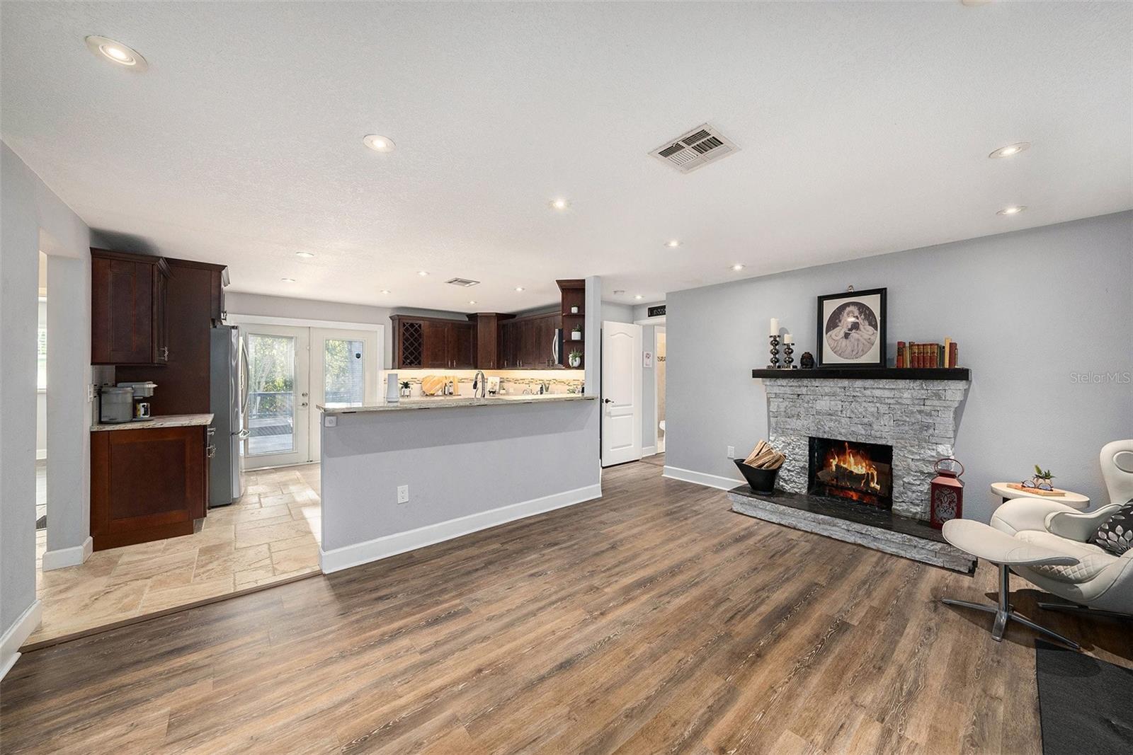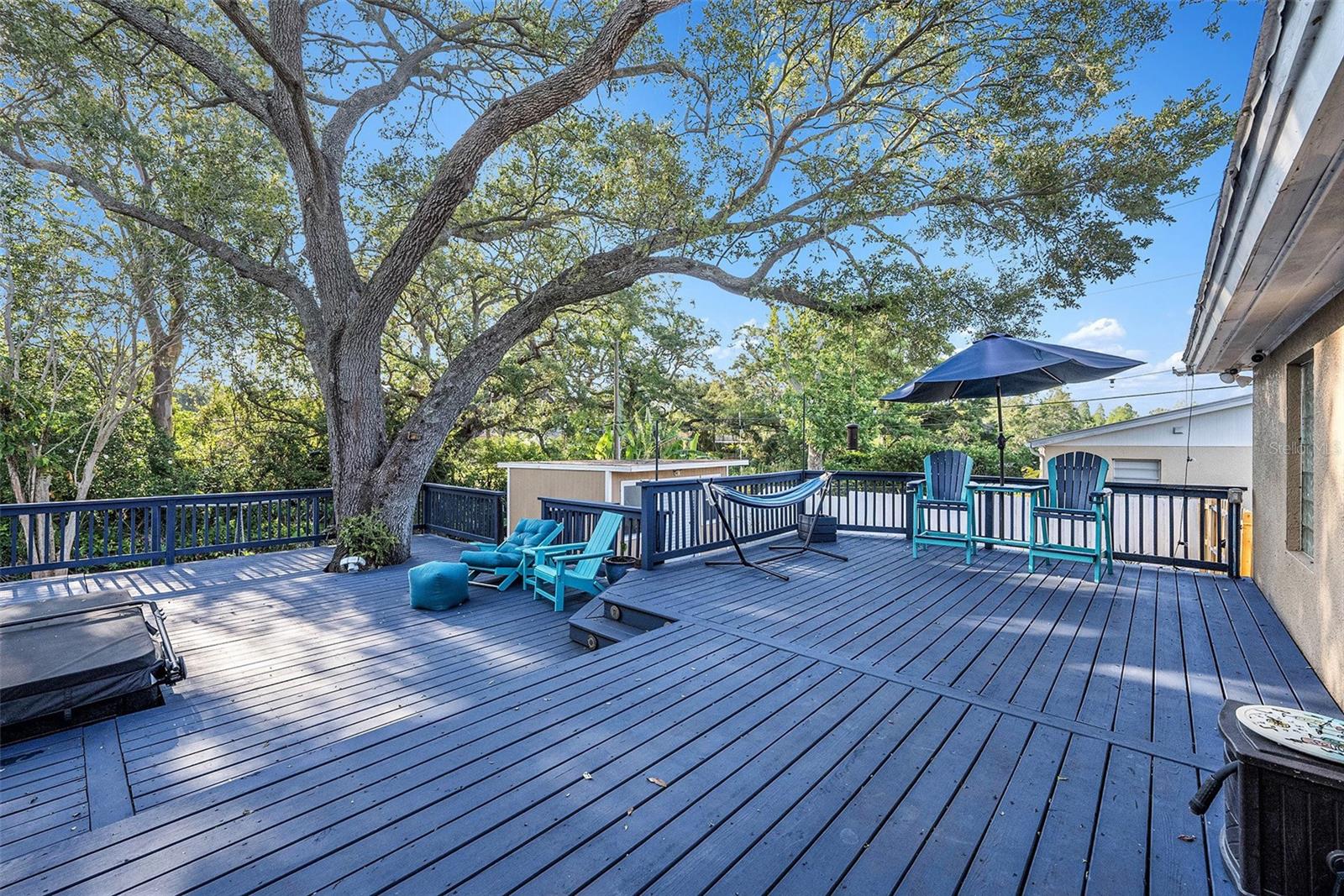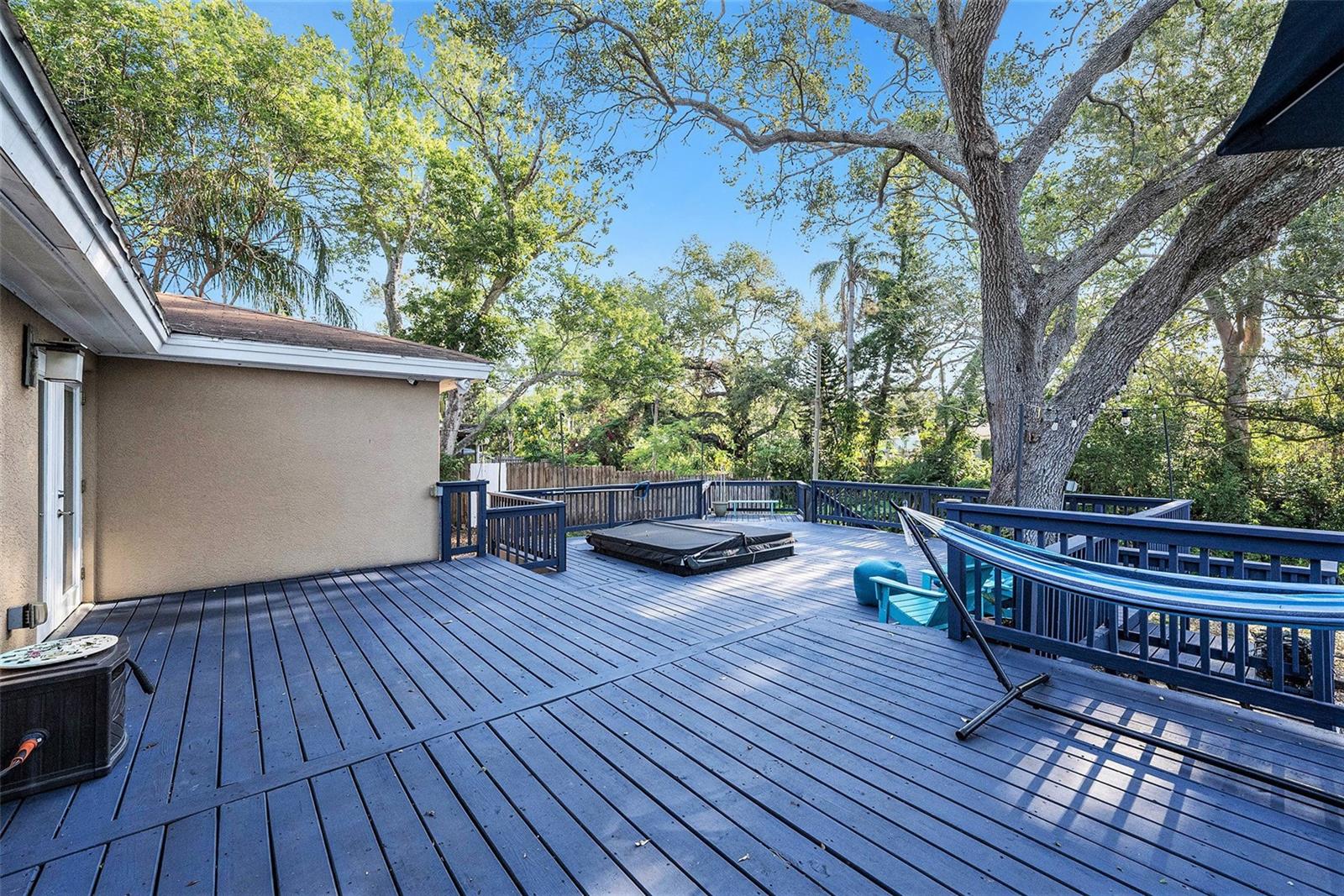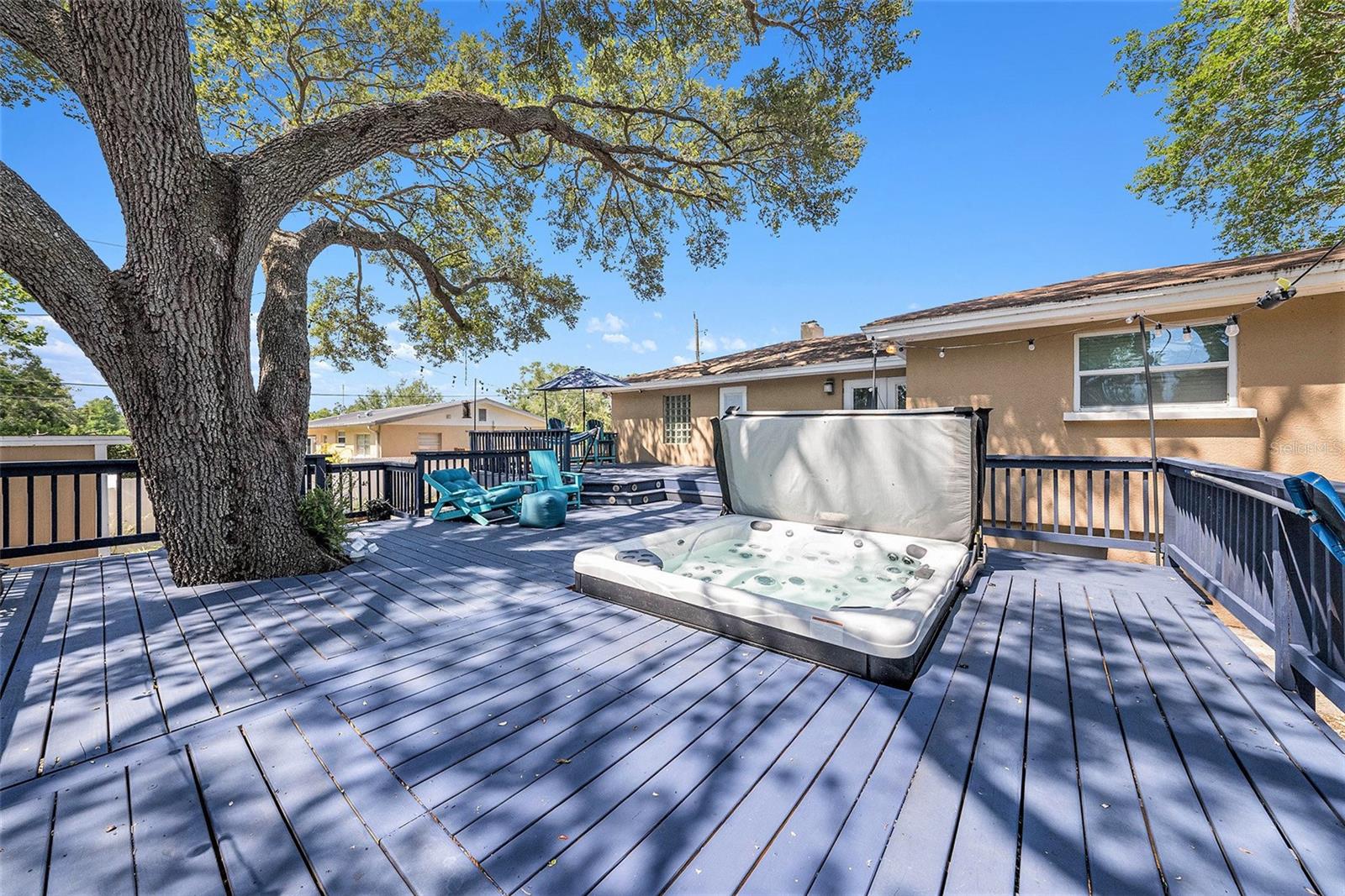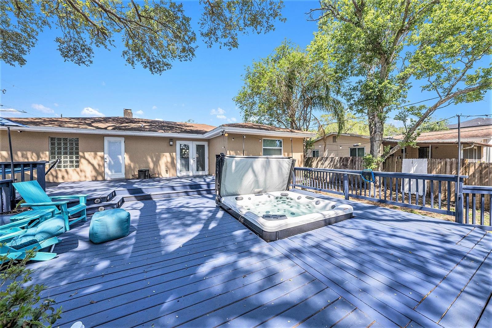 Welcome to this beautiful 2-bedroom, 2-bathroom home with JACUZZI in Clearwater that offers an abundance of space, style, and comfort! Featuring a spacious open floor plan, this home is perfect for both everyday living and entertaining. The oversized great room with a cozy fireplace flows seamlessly into the open kitchen, creating a warm and inviting atmosphere. The kitchen is a showstopper, complete with travertine tile, wood cabinetry, stainless steel appliances, granite countertops, and a wine fridge. French doors lead out to a large three-tier deck with a jacuzzi that is only 6 months old —ideal for relaxing or hosting guests. Designed with privacy in mind, the split-bedroom layout places the bedrooms on opposite sides of the home. The primary suite boasts a luxurious en-suite bathroom with double sinks, upgraded finishes, a tiled shower, and a walk-in closet with custom shelving. Bonus: the primary bath also offers direct access to the deck! Enjoy outdoor living year-round on the expansive backyard deck—perfect for summer nights or cool autumn evenings with your favorite hot or cold beverage. The large lot provides generous space in both the back and side yards, with plenty of room to park recreational vehicles like a boat or RV. Additional features include an alarm system, located in a non-flood zone, lockable storage space beneath the home, and a powered shed for extra storage needs. The washer/dryer convey, Roof 2013, AC 2021, new fence as well as the home is close to a state park that provides trails for walking, exercising, and running. If that wasn't exiting enough, the home is close to the Phillies Spring Training Camp and Ruth Eckerd Hall! Don’t miss the chance to make this incredible home your own! Schedule your showing today!