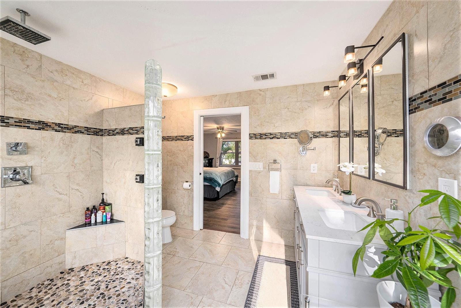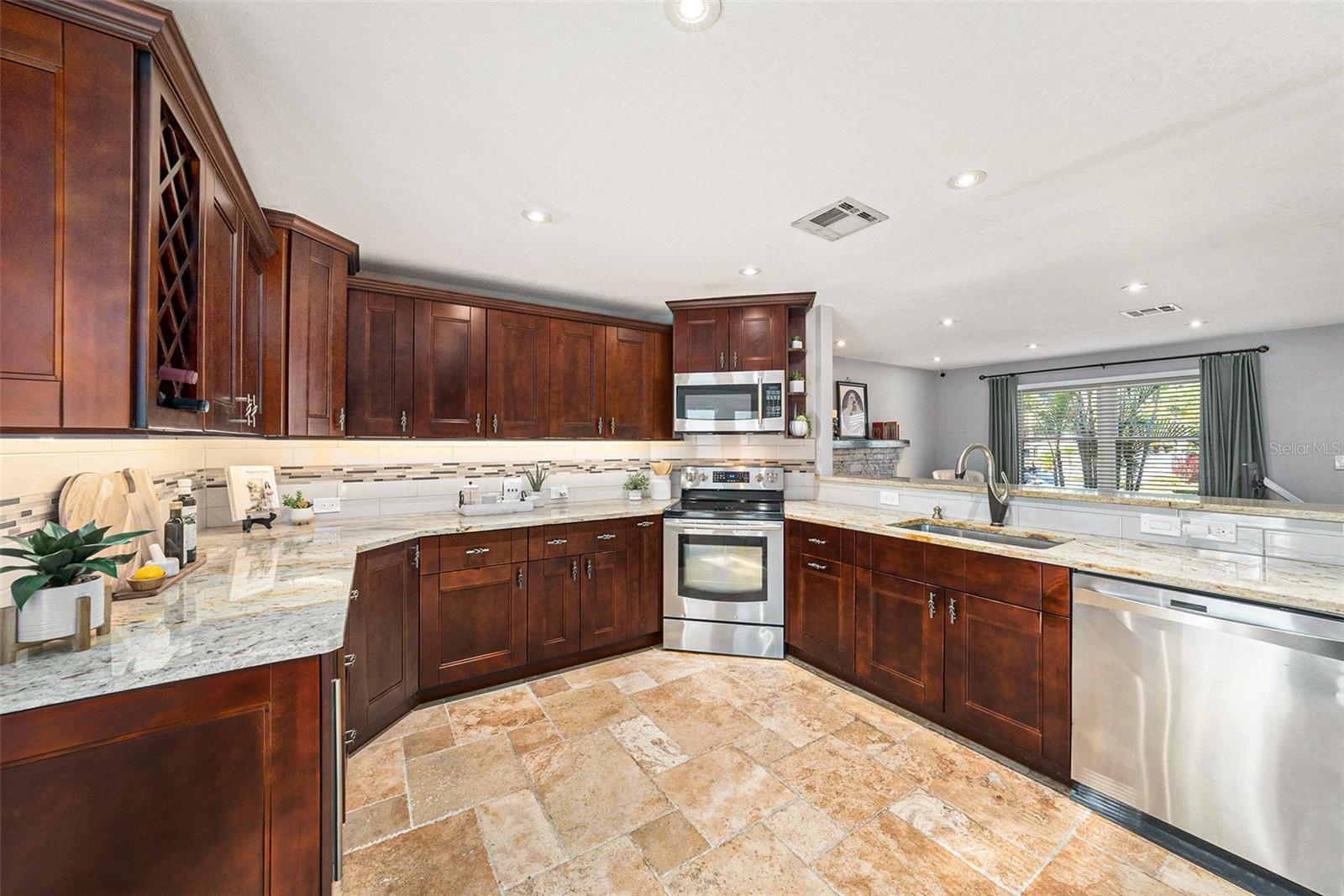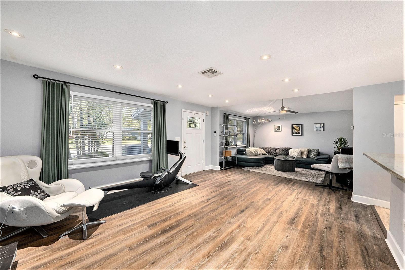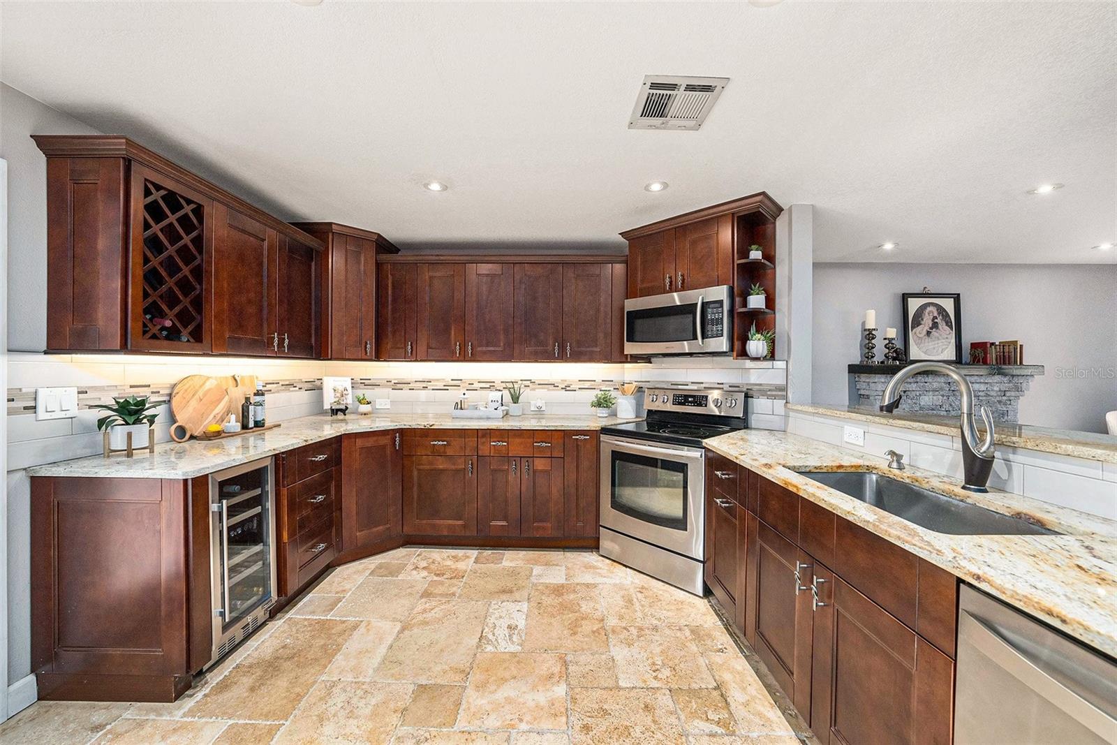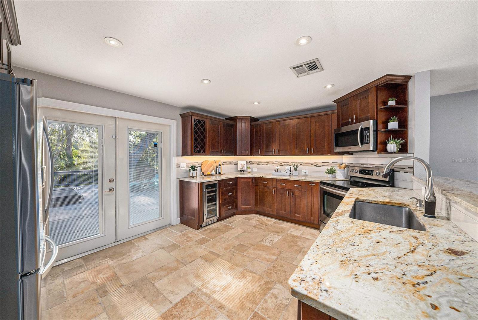 Welcome to this beautiful 2-bedroom, 2-bathroom home with JACUZZI in Clearwater that offers an abundance of space, style, and comfort! Featuring a spacious open floor plan, this home is perfect for both everyday living and entertaining. The oversized great room with a cozy fireplace flows seamlessly into the open kitchen, creating a warm and inviting atmosphere. The kitchen is a showstopper, complete with travertine tile, wood cabinetry, stainless steel appliances, granite countertops, and a wine fridge. French doors lead out to a large three-tier deck with a jacuzzi that is only 6 months old —ideal for relaxing or hosting guests. Designed with privacy in mind, the split-bedroom layout places the bedrooms on opposite sides of the home. The primary suite boasts a luxurious en-suite bathroom with double sinks, upgraded finishes, a tiled shower, and a walk-in closet with custom shelving. Bonus: the primary bath also offers direct access to the deck! Enjoy outdoor living year-round on the expansive backyard deck—perfect for summer nights or cool autumn evenings with your favorite hot or cold beverage. The large lot provides generous space in both the back and side yards, with plenty of room to park recreational vehicles like a boat or RV. Additional features include an alarm system, located in a non-flood zone, lockable storage space beneath the home, and a powered shed for extra storage needs. The washer/dryer convey, Roof 2013, AC 2021, new fence as well as the home is close to a state park that provides trails for walking, exercising, and running. If that wasn't exiting enough, the home is close to the Phillies Spring Training Camp and Ruth Eckerd Hall! Don’t miss the chance to make this incredible home your own! Schedule your showing today!