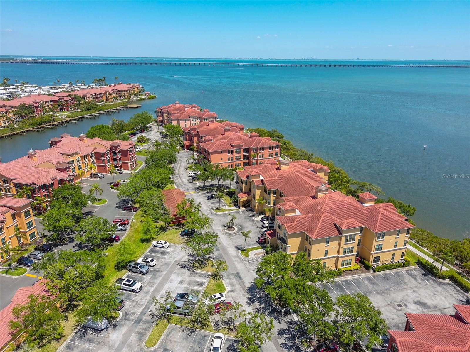 One or more photo(s) has been virtually staged. Welcome to Grand Venezia, a premier waterfront community offering resort-style living with unbeatable views of Tampa Bay. This well-maintained 1-bedroom, 1-bathroom condo combines comfort, convenience, and Florida charm in one beautiful package. Step inside to find a spacious layout featuring a generous kitchen with new appliances and a breakfast bar, perfect for casual dining and entertaining. The bright living room opens to a large private balcony with sweeping views of Tampa Bay—also visible from the bedroom for a serene wake-up every morning. You'll also appreciate the walk-in closet with built-in organization, in-unit utility closet with washer and dryer, and overall thoughtful design. Grand Venezia is a gated community with 24-hour guard service and offers residents a wide array of amenities, including a resort-style pool, tennis courts, playground, breathtaking views from the walking path surrounding the property - catch some dolphin watching and so much more. Whether you're relaxing at home or enjoying the community perks, this condo offers a lifestyle that’s hard to beat. Don't miss your chance to own a slice of paradise—schedule your showing today!