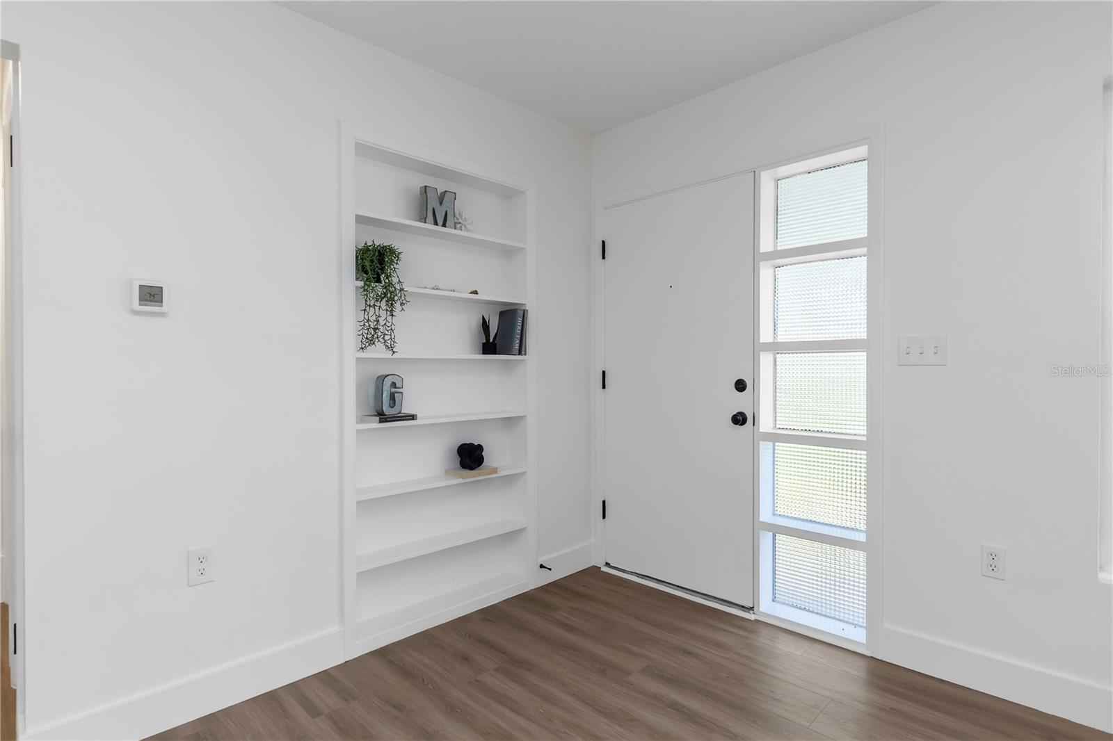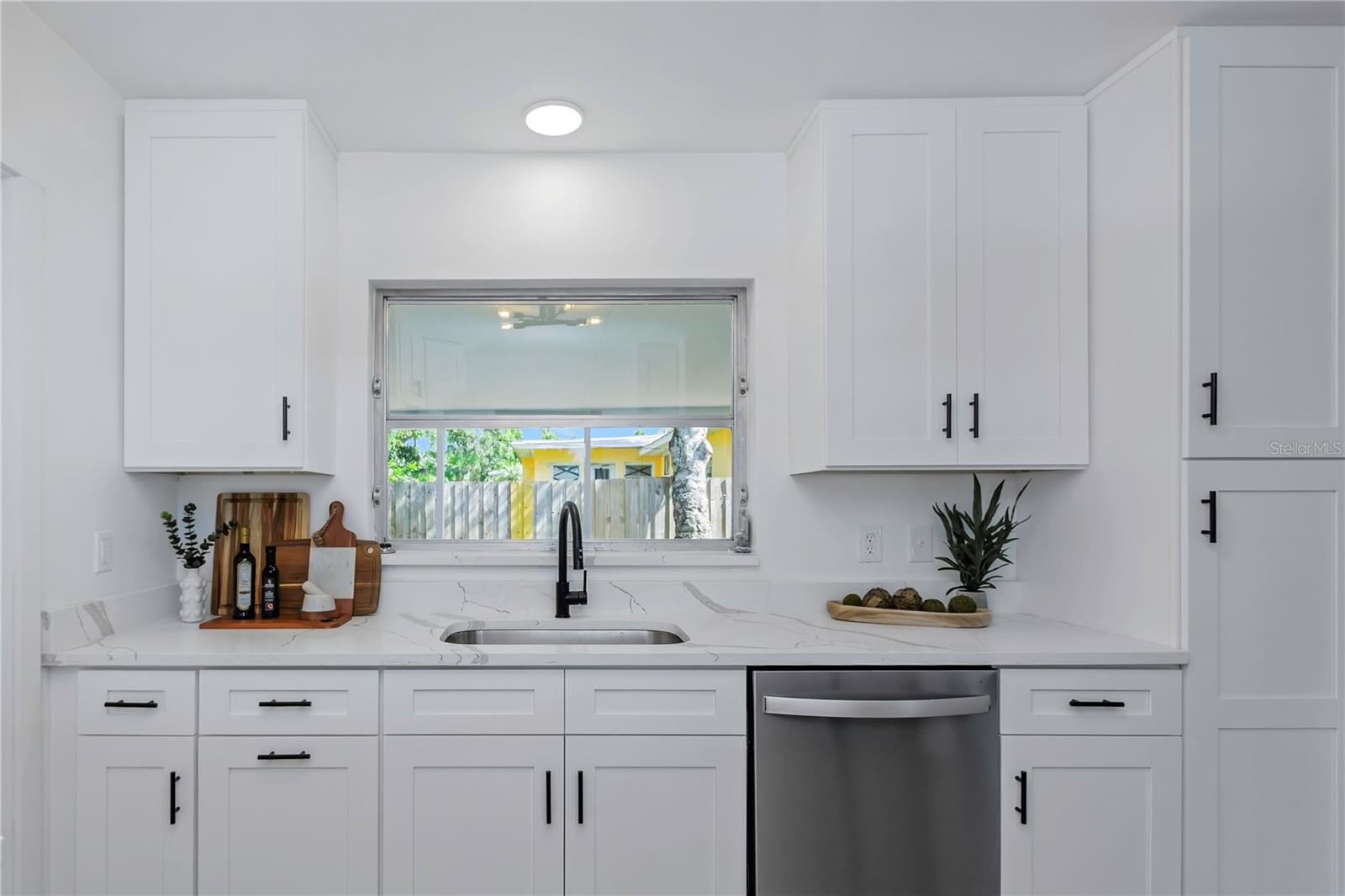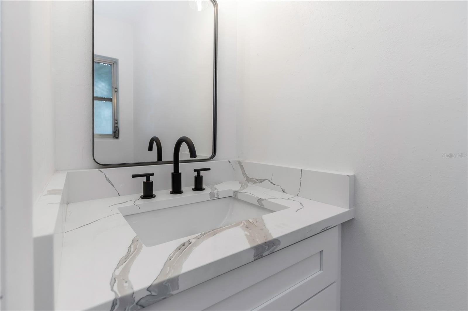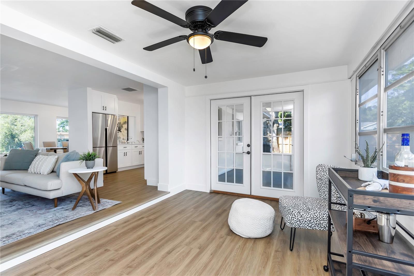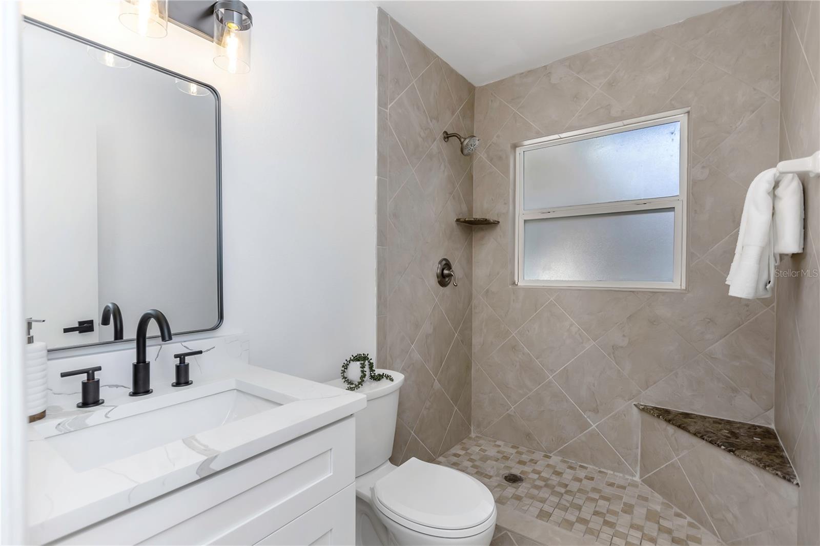 Nestled in the sought-after Keene Acres neighborhood of Clearwater, this beautifully renovated 2-bedroom, 2.5-bath residence is the perfect blend of modern design and everyday comfort. From the moment you walk through the front door, you'll be greeted by abundant natural light, freshly painted interiors, and an airy, open-concept layout that makes this home feel bright and inviting. The home features brand-new luxury vinyl plank flooring and elegant new baseboards, setting a clean and contemporary tone throughout. The reimagined kitchen is a true centerpiece—equipped with brand-new stainless steel appliances, stylish quartz countertops, and all-new cabinetry. A charming wall cutout opens the kitchen to the dining area, making serving and entertaining effortless. Whether hosting friends or enjoying a quiet night in, this home offers multiple spaces to relax and unwind. The formal dining area flows seamlessly into the spacious living room, sunroom, and a screened-in porch, creating an ideal layout for indoor-outdoor Florida living. Located on the east wing of the home are two comfortable bedrooms. One includes its own private half-bath, while a full bathroom with new vanity is located in the hallway. For added convenience, a second full bathroom is tucked away in a private room within the single-car garage—perfect for use as a workshop washroom. With thoughtful updates throughout and a prime location (high and dry flood zone X) close to parks, shops, and just minutes from Clearwater’s stunning beaches, this move-in ready home is truly a gem. Don’t miss your opportunity to experience the charm and comfort of Keene Acres living! Highlights include: complete interior and exterior paint (2025), new baseboards (2025), luxury vinyl plank floor throughout (2025), new kitchen cabinetry and countertops (2025), new stainless kitchen appliances (2025), all new door hardware, fans and light fixtures (2025), new front storm door (2025), roof (2022), HVAC (2021).
