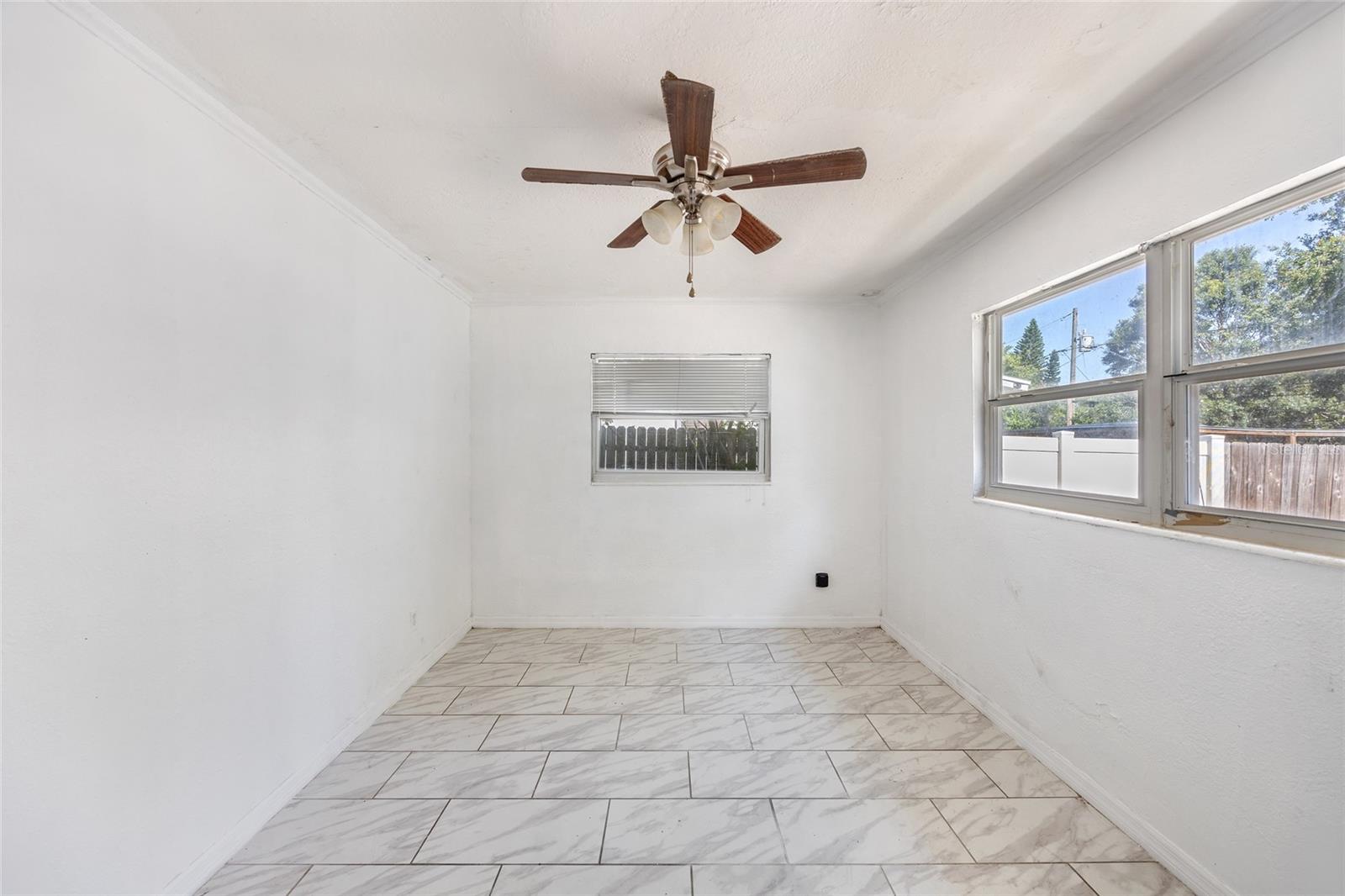 One or more photo(s) has been virtually staged. Looking for your next renovation project to call home? Welcome to your 4-bedroom, 3-bath home that is ready for your personal touch, perfectly positioned just minutes from the Gulf—this is an ideal opportunity for either a homeowner or a savvy investor! This home boasts 2 primary suites as well as energy efficient solar panels. Recent big-ticket updates: all windows, the HVAC system, and the main roof were replaced in 2018, while the flat roof was redone in 2016. The interior is in need of cosmetic repairs and updates. Step inside to discover an open concept living room and kitchen featuring granite counters. All bathrooms will need updating, but after repairs you will have 3 full baths, with the guest bath offering a tub/shower combo and both primary suites boasting walk-in showers. A versatile utility area is between the kitchen and one of the primary bedrooms. Situated on a spacious, shy quarter of an acre, corner lot, the property offers a large, fully usable yard with plenty of room for a pool, RV parking, or expanded outdoor living. There is a large shed in the back yard for extra storage. The circular driveway adds convenience and curb appeal. Centrally located between world-famous Clearwater Beach and charming Dunedin, you’ll enjoy easy access to top-rated schools, shopping, dining, and entertainment. Best of all, this home sits in a non-flood zone with no HOA restrictions—a true rarity that enhances its appeal. Whether you're looking for home sweet home, expanding your rental portfolio or seeking a flexible property with excellent potential, this one is not to be missed!