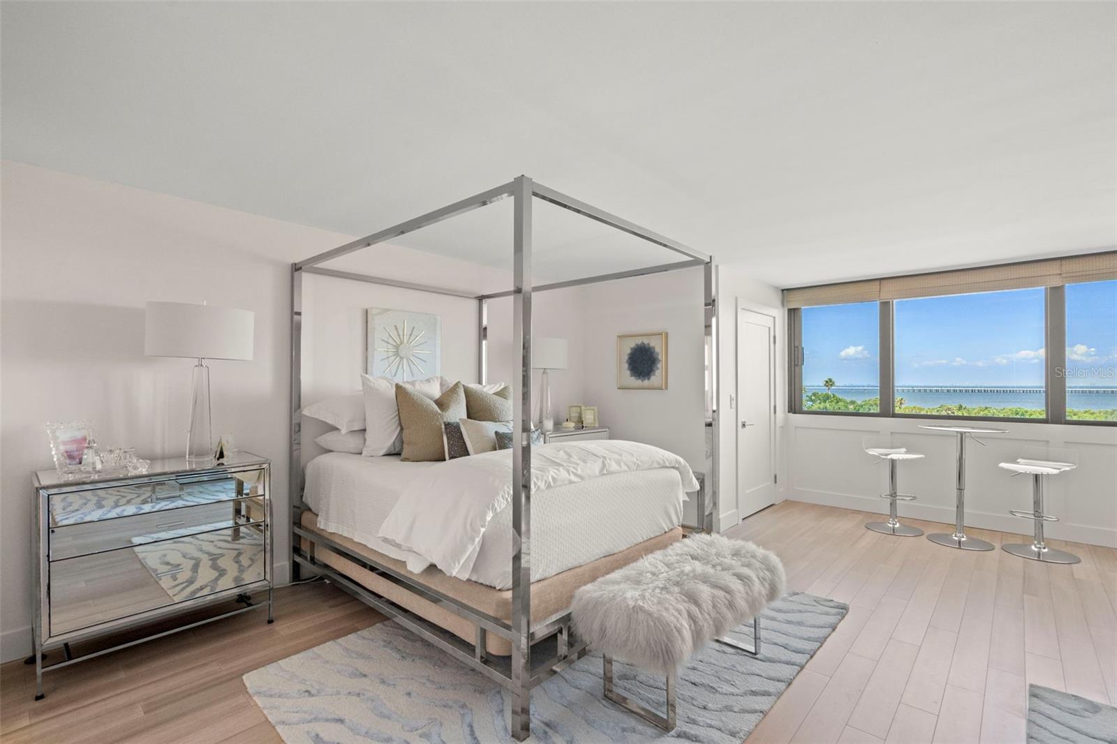 This 7th Floor gorgeously renovated Studio, with breathtaking water views of Tampa Bay is located in the sought out gated & 24 hour guarded 18-hole championship Cove Cay Golf and Marina Community. This turnkey Studio was designed for modern comfort and timeless elegance that combines beauty with functionality (Top-of-Line: KitchenAid appliances, Kraus workstation sink, Rev-A-Shelf installed in solid wood kitchen cabinets, Bamboo hardwood floors, LEVOLOR Roman blinds, The Container Store’s ELFA Closet System, Samsung platform front-loaded Washer/Dryer). The spa-inspired bathroom exudes calm, boasting a striking blue double vanity, an LED-lit makeup station, floating shelves with custom storage unit for a clean, modern finish. A newly installed HVAC system (November 2024) and retractable screen doors ensure year-round comfort and refreshing cross-breezes. The building structural integrity report completed and passed, Fully Funded Reserves, Special Assessments paid in full (new roof and modernized elevators completed 2025). This is a prime location, with quick accessibility to both Tampa International Airport & St. Petersburg Airport and the world-renowned Clearwater Beach all within a 20 minute drive. Cove Cay offers exceptional amenities to elevate your lifestyle: Public Golf Club, Driving Range, Clubhouse with Pool, Hot Tub, Updated Gym, Restaurant with Live Music, Tiki Bar with an optional Boat Club Membership & Kayak rentals adds to even more opportunities for adventure on the water. Whether you're seeking a full-time residence, a refined coastal getaway or use as an investment rental (3,6,9 or 12) month lease. This is a perfect unit for one or a couple on the go, college student, this Studio is the perfect place in paradise for you! Furniture is negotiable.