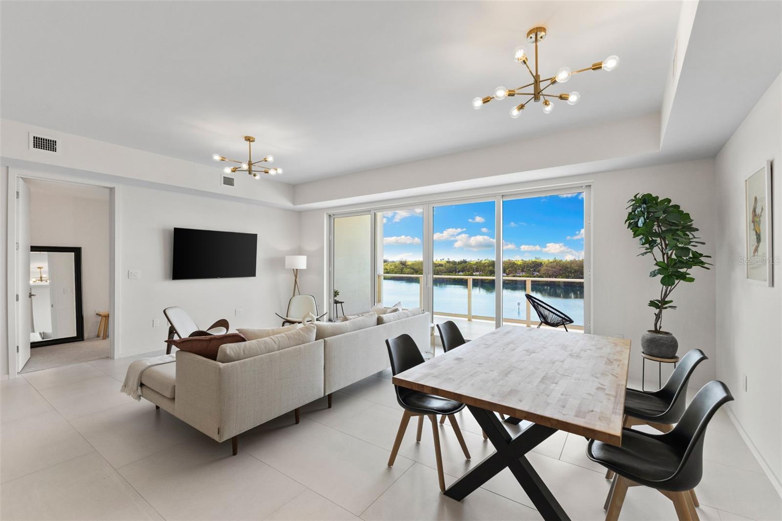 Welcome to Serena by the Sea, Clearwater’s premier coastal retreat offering five-star amenities and resort-style living. This fully furnished fourth-floor residence features three bedrooms, three full baths, a spacious den ideal for a bedroom/ home office and a generous laundry room. Built in 2023, the condominium showcases sweeping Intracoastal views with partial Gulf vistas, Bosch appliances, hurricane-impact windows rated up to 140 mph and a private fresh-air intake system—no shared ventilation between units, a rare luxury in condominium living. In a gated community, residents enjoy 24-hour concierge service and unparalleled convenience with two dedicated under-building parking spots, a third surface space and a climate-controlled storage locker. Indulge in the resort-style experience with five-star amenities including an elevated pool deck featuring a heated zero-edge saltwater pool with private cabanas, outdoor grilling stations, a cozy fire pit and a stunning clubhouse with a chef’s kitchen, poker and pool tables, dining space and media lounge. Elevate your wellness routine in the state-of-the-art fitness center with Peloton bikes or unwind in the serene spa featuring a wood sauna, massage room, cold-plunge bucket, jacuzzi and relaxation lounge. Pet-friendly and equipped with a dog wash station, this luxurious residence is positioned near the Dunedin border—just minutes from Clearwater Beach, downtown Clearwater, downtown Dunedin and the Pinellas Trail, offering easy access to shopping, dining and outdoor recreation. Serena by the Sea is more than a home, it's coastal, resort-style living at its finest. Note: Construction on the east side of the condominium building will be luxury townhomes developed by the same team behind Serena by the Sea. Renderings of the future townhomes can be viewed in the condominium lobby.