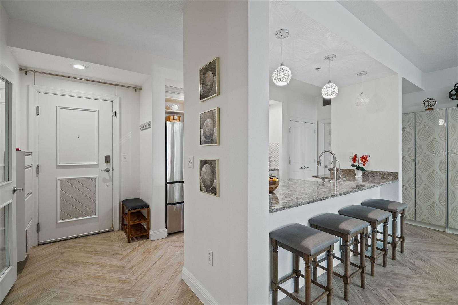 Seller Financing Available-Easier Path to Ownership! | Pet-Friendly | No Milestone Inspection | Not Flood Zone |Not Evacuation Zone | Water and Internet Included in HOA | Flexible 30-day minimum rental policy Airbnb Bnb Short rental | Oversized laundry/storage room | Newer A/C (with UV filtration)& water heater | Assigned parking next to elevator | 10-ft ceilings | Herringbone porcelain tile throughout | Kitchen has plenty of storage, pantry, separate coffee area and two fridges | Amenities include pool, fitness center, grilling area, and secure management. Location Perks: Walk to the marina, Pinellas Trail, new city park, and The Sound concert venue. Clearwater Beach is just minutes away.