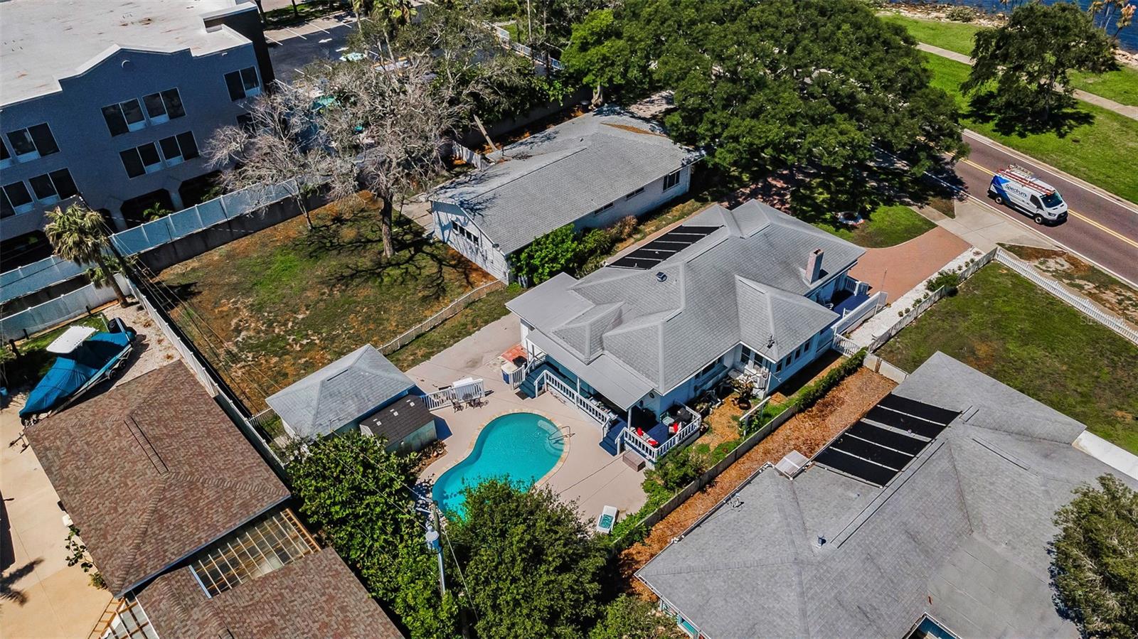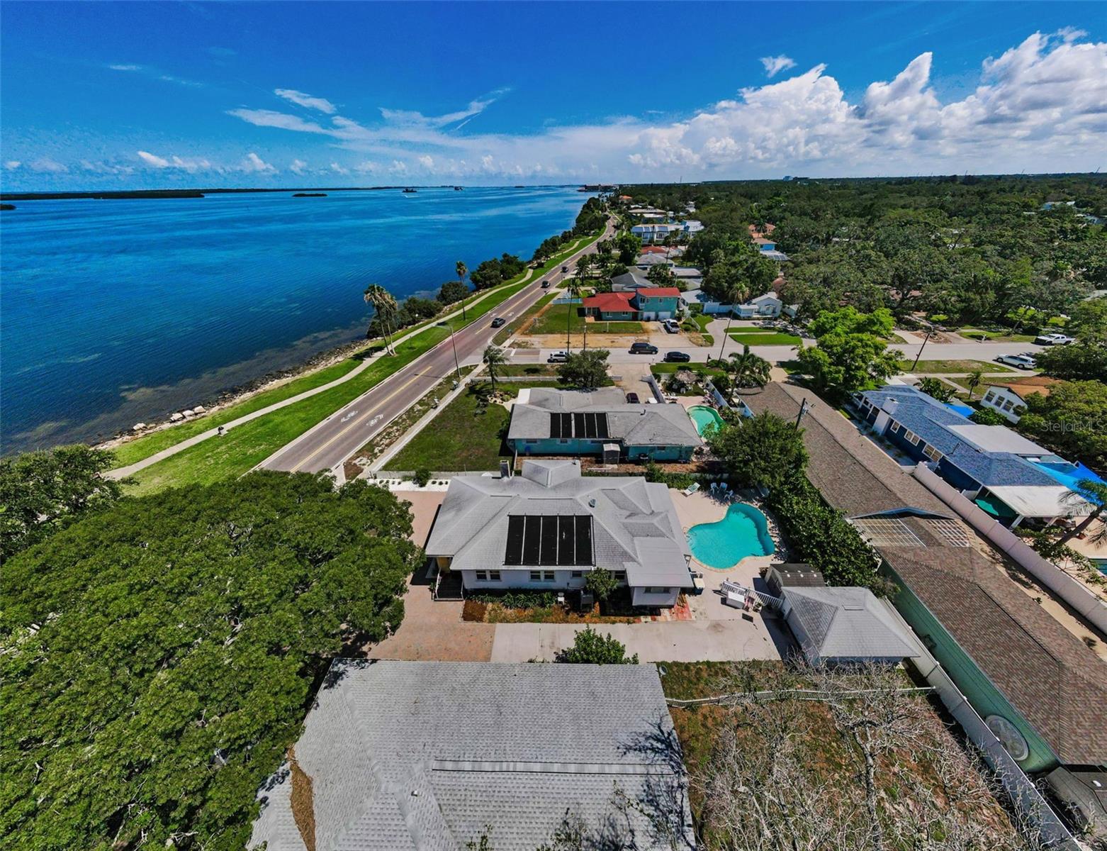 AMAZING WATER VIEWS, SPECTACULAR SUNSETS relaxing front, side and back porch to sit and enjoy natural beauty, dolphins, birds, boats, and evening lights of Clearwater Beach or holiday fireworks, await the lucky buyer of this PRISTINE PROPERTY located in the heart of Clearwater/Dunedin passage way along the St. Joseph's Sound. Outdoor activities abound with WALK/BIKE TRAILS ALONG EDGEWATER DRIVE and the Pinellas Trail within a few blocks. Begin or end the day with a splash in the beautiful in ground pool. Bring the beauty of the surrounding landscape views indoors where many windows surround the interior offering sunlight and scenery from the 9 Ft. ceiling space. Use the remote operated awning to side porch for more or less exposure! The open floor plan accommodates any lifestyle with renovated kitchen, wood floors, indoor laundry, den/office area with extra sleeping space, bonus room for arts, crafts, library or even a small Accessory Dwelling Unit with its own entrance to the outside. The circular drive and long driveway provide ample space for parking multiple vehicles & access to the separate garage. Whether one wishes to launch a kayak across the street or stroll to quaint downtown Dunedin, this location is prime for convenience to eateries, schools, shops, and taking advantage of truly Florida Paradise living. NEW PRICE1