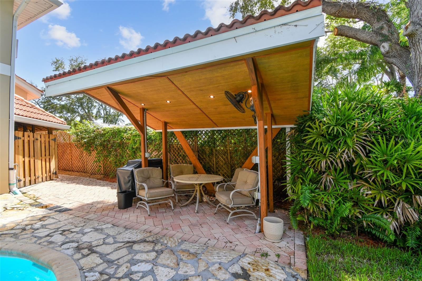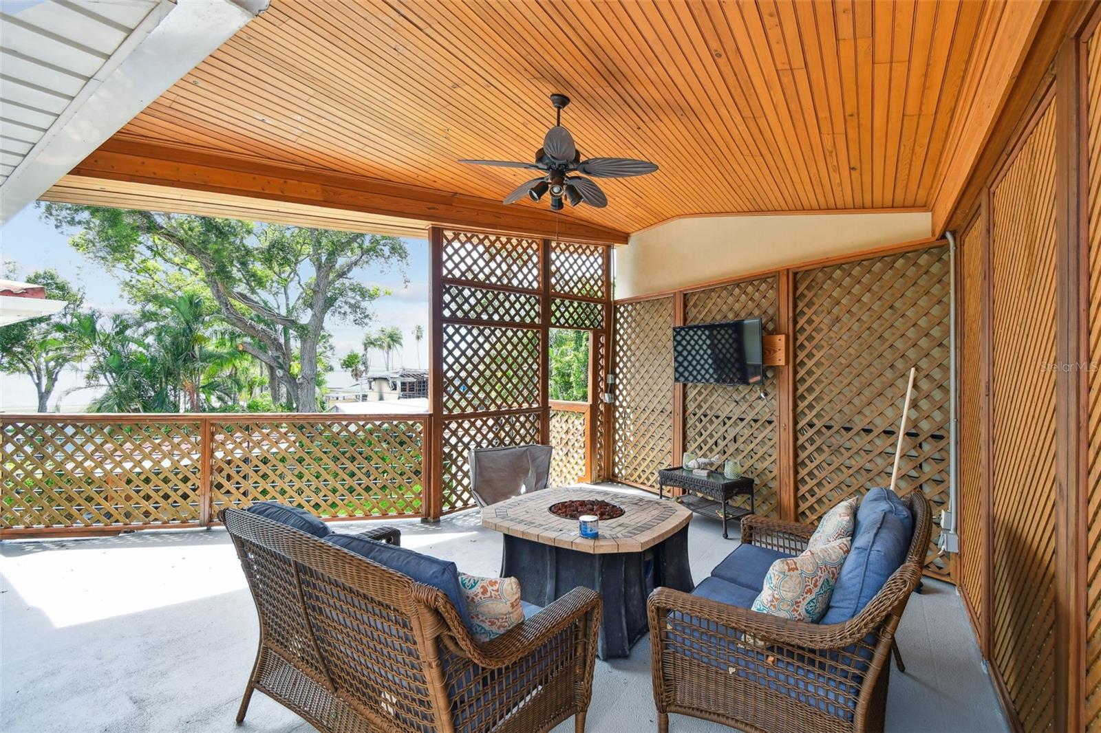 Welcome to your private compound in a prime Clearwater/Dunedin location just one block from the Gulf of Mexico with peek-a-boo water views from the top deck. This sprawling 6-bedroom, 6-bath estate is a rare gem designed for luxurious living and effortless entertaining. The main home offers four spacious bedrooms and four baths. A custom solid mahogany front door opens to a light-filled interior featuring imported Italian porcelain tile, elegant crown molding, and tray ceilings. Triple sliding doors lead to a cozy fireplace room, seamlessly connecting indoor and outdoor living. The kitchen includes solid wood cabinetry, granite countertops, bar seating, and two large pantries, flowing easily into the formal dining room for dinners or game nights at the table. Enjoy movie nights or the big game in the bar room with theater seating. You will enjoy entertaining around the custom-built bar, crafted from antique brick dating back to the 1800s and topped with warm cypress wood, complete with a fridge, wet bar, and surround sound. Two en-suite bedrooms, an additional guest bedroom and guest bath finish out the main house first floor. The main house second floor is reserved exclusively for the primary suite. The primary suite is supremely spacious and private with high ceilings and a huge closet, you will enjoy the luxuries of space, storage and natural light with direct access to the upper deck, the perfect place to enjoy a peaceful evening drink while overlooking the Gulf under the stars. Step outside to your personal resort. The saltwater fiberglass pool—refurbished just two years ago—is nine feet deep and set within a Texas Ripple Stone deck, with an upgraded biofilter system and an outdoor area ready to become your future outdoor kitchen. A lush grassy area for pets, private outdoor storage, and wrap-around cedar ceiling deck with spiral staircase complete the outdoor experience. In addition to the main home, a detached two-story guest house adds incredible flexibility. It features one bedroom, one full bath, and a full kitchen—ideal for extended family, guests, or income potential with minimum one-month rentals allowed. A detached gym or studio adds even more versatility, featuring air conditioning, a full bathroom, on-demand water heater, and stackable washer and dryer. Engineered for Gulf Coast living, the home is equipped with hurricane-rated windows, four in-ground electric subpanels, a French drain system in the backyard and storm-conscious upgrades to provide safety and security through every season. Enjoy peace of mind with a Carrier HVAC system with a coastal guarantee that’s just four years old, and a concrete tile roof, jet ski and kayak parking, and no HOA. A two-car garage offers additional storage and a laundry area, making this property as practical as it is luxurious. Thoughtfully designed and meticulously maintained, this one-of-a-kind home delivers privacy, character, and unparalleled entertainment potential just steps from the Gulf and only 5 minutes from downtown Dunedin. Sunset walks along Edgewater Drive trail are just steps away or walk a block into the neighborhood to Charles Park. Dunedin is known for its walkable downtown, waterfront parks, local boutiques, breweries, and vibrant community events. Locals enjoy top-rated beaches like Honeymoon and Caladesi Islands, plus the scenic Pinellas Trail for biking and being active.