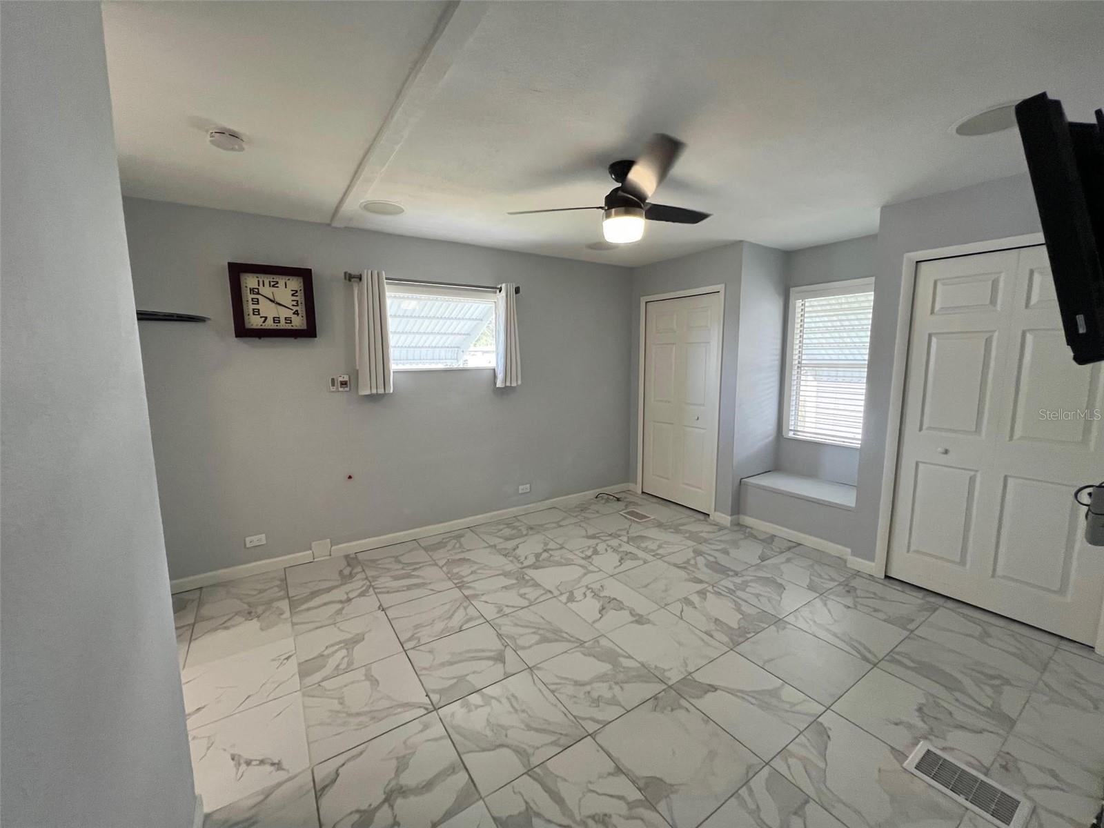 Located in the highly sought-after 55-plus gated community of Doral Village in Clearwater, Florida, this turn key property stands out as one of the homes currently available. Residents here enjoy an unmatched lifestyle with close proximity to world-famous Gulf beaches, a wide selection of supermarkets, popular dining destinations, and the convenience of being just 30 minutes from two major airports—making access to and from the community effortless. The remarkably low monthly maintenance fee of $238.00 includes water, sewer, garbage collection, and lawn care, along with access to resort-style amenities such as billiards, tennis, pickleball, bocce ball, basketball, shuffleboard, a heated pool, and a relaxing heated spa. Pet lovers will also appreciate that up to two cats are welcome, making this community not only active but also accommodating. INTERIOR: This beautifully remodeled residence is a true showpiece, designed for both style and comfort. Featuring two spacious bedrooms and two modern bathrooms, the home has undergone a complete renovation in 2025 to create a move-in-ready masterpiece. The brand-new kitchen is a chef’s dream, boasting stainless-steel appliances—including refrigerator, range, oven, dishwasher, and ice maker—paired with stunning granite countertops, a trendy backsplash, a center island ideal for meal prep or casual dining, and abundant cabinetry for all your storage needs. Other interior highlights include dimmable recessed lighting, new ceiling fans, central heat and air (2016) with warranty, sleek vinyl plank and plywood flooring, drywall throughout, and elegant six-panel doors. The open floor plan seamlessly flows from the dining room to the spacious living room, which connects to an air-conditioned raised Florida room. The luxurious master suite offers porcelain tile flooring, a cozy window seat with a built-in safe and an en suite spa-like bathroom with grab bars, a decorative tiled walk-in shower and touchless toilet. The guest bedroom is equally impressive with generous space, high-end vinyl plank flooring, a granite vanity, a beautifully tiled shower, and even a heated Jacuzzi tub for ultimate relaxation. EXTERIOR: Equally impressive outside, this home radiates curb appeal with its light-colored vinyl siding, attractive white awnings, durable roof-over (2016) with transferable 20 year warranty and a spacious two-car carport. The oversized shed includes a washer and dryer and provides excellent space for storage or use as a workshop, while the exterior setup for a Blair water conditioner adds extra value. Priced at just $212,500 with a share—below its appraised value—as well as the seller offering up to 50% of owner financing- this property represents an extraordinary opportunity. All the work has already been completed—simply turn the key and begin enjoying the Florida lifestyle you’ve been dreaming of. Call today for your private showing before this one-of-a-kind home is gone!