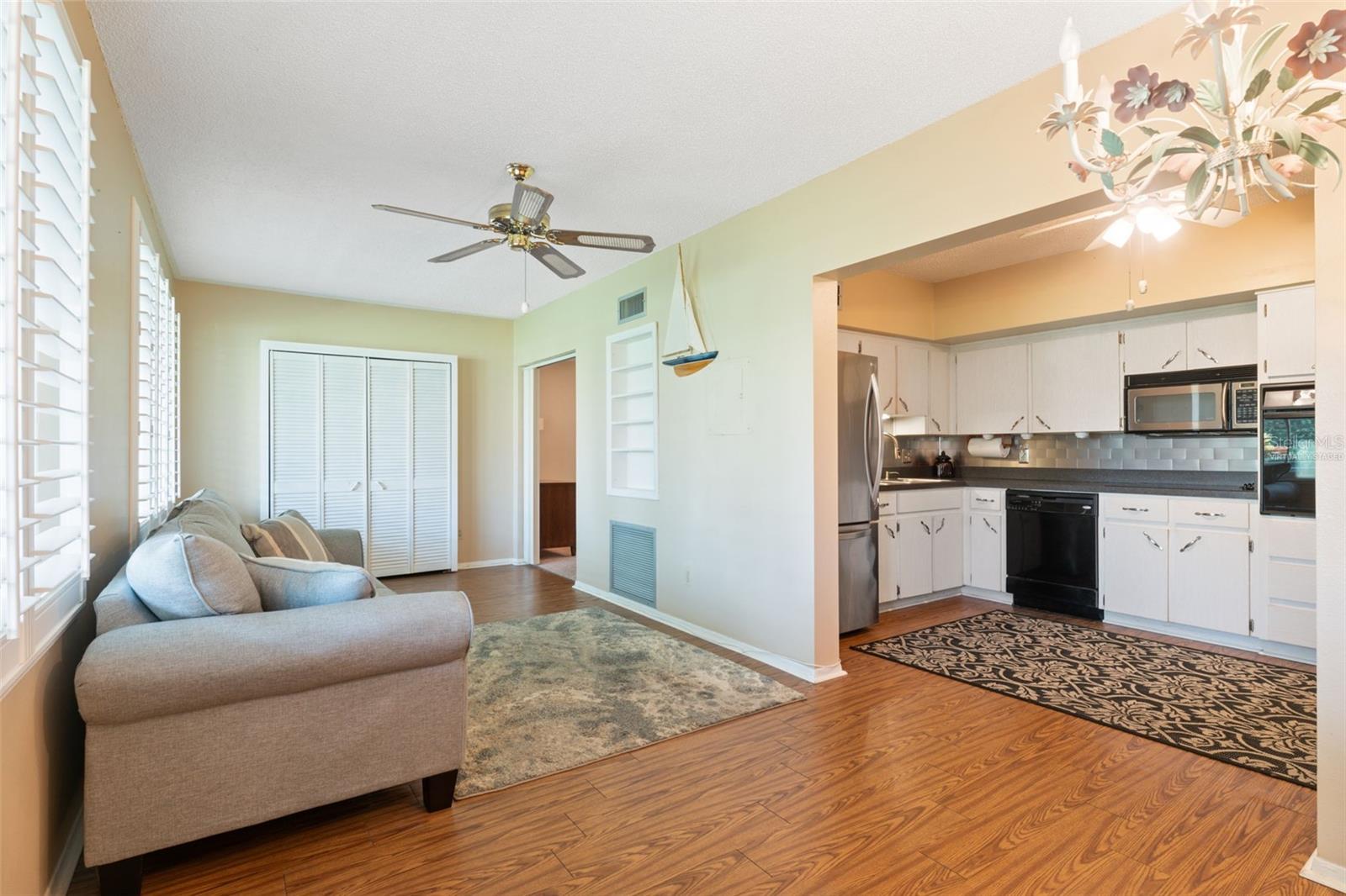One or more photo(s) has been virtually staged. Discover resort-style living in this stunning Ground Floor Condo, boasting an oversized, Covered, Fenced Patio complete with Privacy Shades. It is the perfect place for relaxing or entertaining in serene comfort. This 2 bedroom, 2 Full Bath gem features a bright Open Floor Plan designed for modern living. The kitchen shines with sleek Stainless Steel Appliances, a stylish Backsplash and under-cabinet lighting. Newer Impact Rated Windows with a Lifetime Warranty are adorned with elegant Plantation Shutters and flood the space with natural light. Have peace of mind and stay cool with a newer Trane AC. Enjoy the convenience of ample in-unit storage, exterior storage and an additional exterior bike storage room. The solid, concrete block building passed Milestone Engineering Study with flying colors, is very well-maintained and is currently getting a fresh coat of exterior paint. Savor the breathtaking Golf Course view from your private retreat, located in Clearwater's premier 55+ community, On Top of the World, that defines active living. Tee off at the community's 9 and 18 hole Golf Courses, which are Free to resident owners with an activity card. Unwind at one of the two Heated Swimming Pools. Stay fit in the conveniently located Fitness Center, play with your furry friends at the Dog Park or join one of the over 100 Clubs and Activities to connect with neighbors and pursue your passions. On Top of the World is a very well run community with healthy financials that bring tons amenities to the residents while maintaining healthy community financials. Just minutes from world-renowned Beaches, Premier Shopping, Dining, Airports and Health Facilities, this condo offers the perfect blend of luxury, convenience and leisure. Don't miss your chance to embrace an idyllic lifestyle in this move-in ready Ground Floor home. If financing, OTOW requires 35% down. Schedule your showing today!