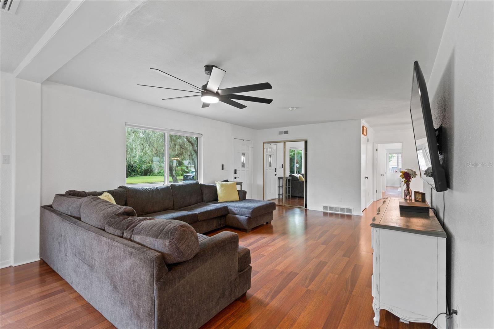 One or more photo(s) has been virtually staged. Come see this amazing home on 2 lots in the desirable Clearwater neighborhood of Glenwood! With more than 1/4 acre of land in a Non-Evacuation zone, no flood insurance required and no HOA. This 3 bed 2 bath, 2 car garage home is ready for you to move right in. Upon walking in you will feel right at home with the open floor plan which includes plenty of spaces to create a cozy nook or office around the wood burning fireplace. The bedrooms are nicely sized and primary bedroom includes an ensuite bath. The large family room in the rear offers many opportunities as a perfect flex space for play room, family space, man cave or more! Recent updates include NEW Impact Rated Windows, NEW updated electrical and panel, A/C in the garage, an 8x8 office outfitted in the garage, NEW whole home water filtration system and under sink RO by Purity Bay, irrigation on well, new sod, new fencing, new pavered patio and more! Roof is about 10 years and A/C is about 6 years. Don't miss out on this amazing opportunity!