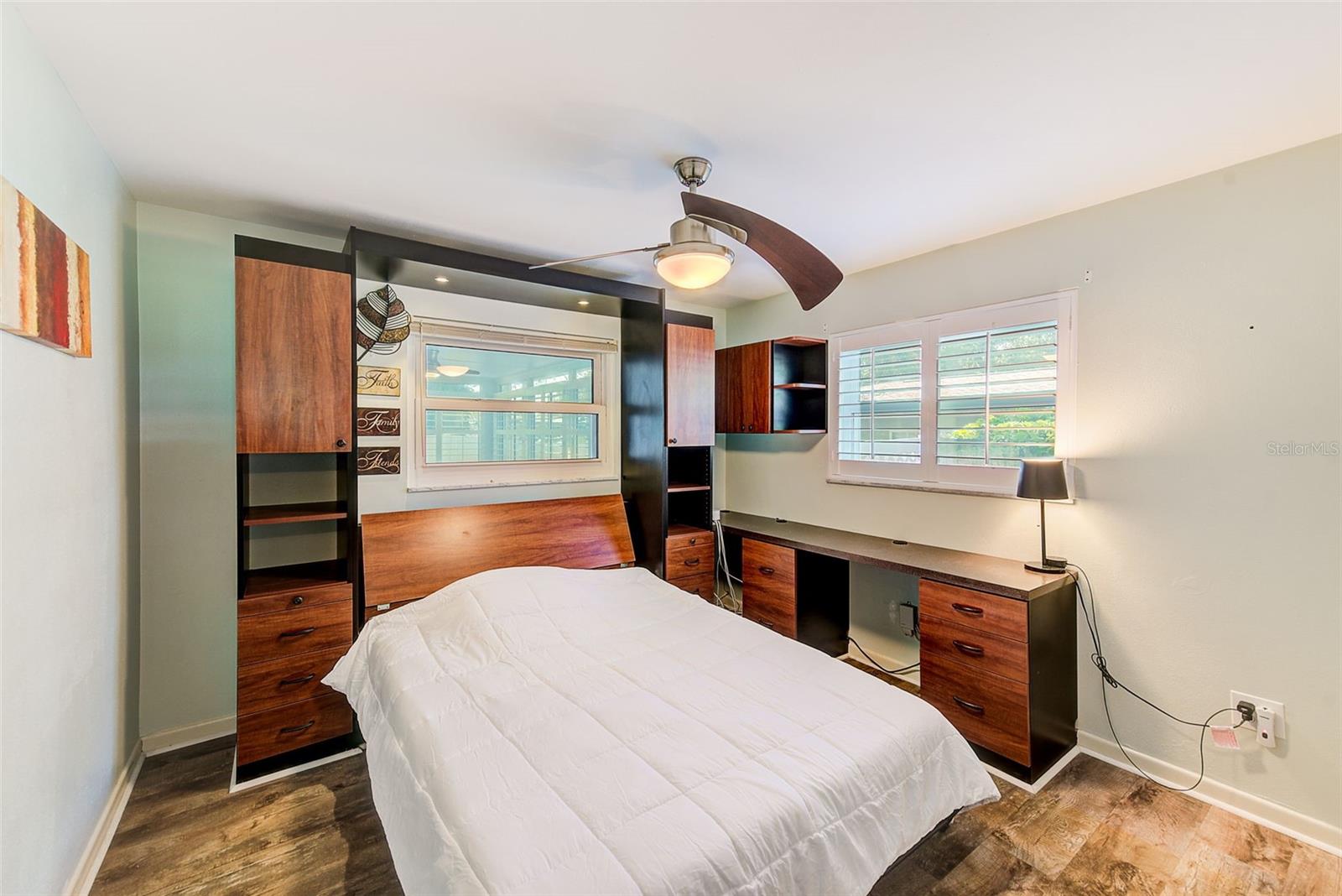 One or more photo(s) has been virtually staged. With this charming and beautifully maintained 3-bedroom, 2-bathroom block home, discover the perfect blend of style, comfort, and peace of mind. Benefit from enormously valuable and thoughtful seller upgrades including a newer metal roof, paid-off solar panels, impact-resistant Stanek windows and a tankless water heater. This home was built to last, keeping energy costs low and property protection and quality of enjoyment high. The spacious and inviting floor plan features a sunroom bathed in natural light, plantation shutters throughout, and two fully remodeled bathrooms that feel fresh, bright and modern. The kitchen features conveniently ample storage and flows seamlessly into the living and dining areas, complete with a handsome centerpiece fireplace, making this home ideal for both quiet nights in and friendly gatherings. Outside, enjoy picture-perfect landscaping, a wind-resistant Tuff Shed for extra storage, and parking made easy with a 1-car garage plus room for two extra vehicles in the driveway. Hurricane tarps for the garage and front door add even more convenience and security. Nestled in a gorgeous, established neighborhood where pride of ownership is unmistakable on every street, this property offers not just a home, but a community you’ll love experiencing every day. Listing Broker to provide a 1-year home warranty from America's Preferred Home Warranty with fully binding contract acceptable to seller.
