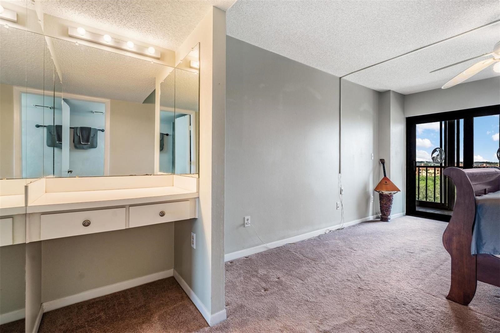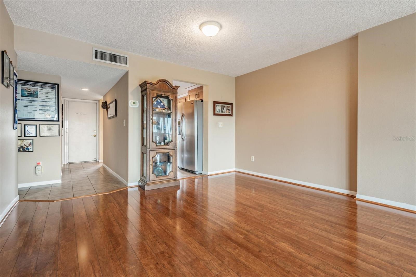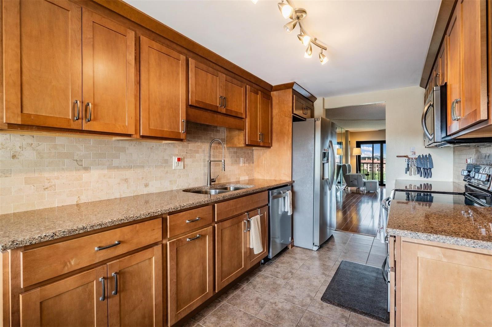 The view truly takes the cake in this stunning top-floor condo overlooking the 9th fairway of the Cove Cay Golf Course and the sparkling waters of Tampa Bay. From the moment you arrive, you’ll enjoy a front-door view of the Village 4 pool and all the amenities this ever-popular community offers. Then you will step inside to an updated kitchen featuring custom wood cabinetry, gleaming granite counters, stainless steel appliances, track lighting, and a cozy eat-in nook. The spacious living and dining area showcases engineered hardwood flooring and opens to a fabulous PGT sliding door wall. From here, step out to the expansive screened lanai where that spectacular golf and bay view will never get old. The master bedroom also enjoys upgraded sliding doors to the lanai, extending the scenery right into your private retreat. Both bathrooms were completely remodeled in May 2024 with new tile, sinks, toilets, and finishes for a fresh, modern feel. Bedroom closets feature built-in organizers, and additional updates include a newer water heater (approx. 5 years) and a washer installed in 2024. A rare opportunity to own one of the best views in Cove Cay—move-in ready, tastefully updated, and perfect for enjoying the Florida lifestyle. Lush grounds, gorgeous ripples of Tampa Bay’s sparkling waters, an available 18-hole championship golf course with full restaurant and bar open 7 days a week, a full marina available for your boating pleasures, and 24 hour security make this the Paradise known as Cove Cay