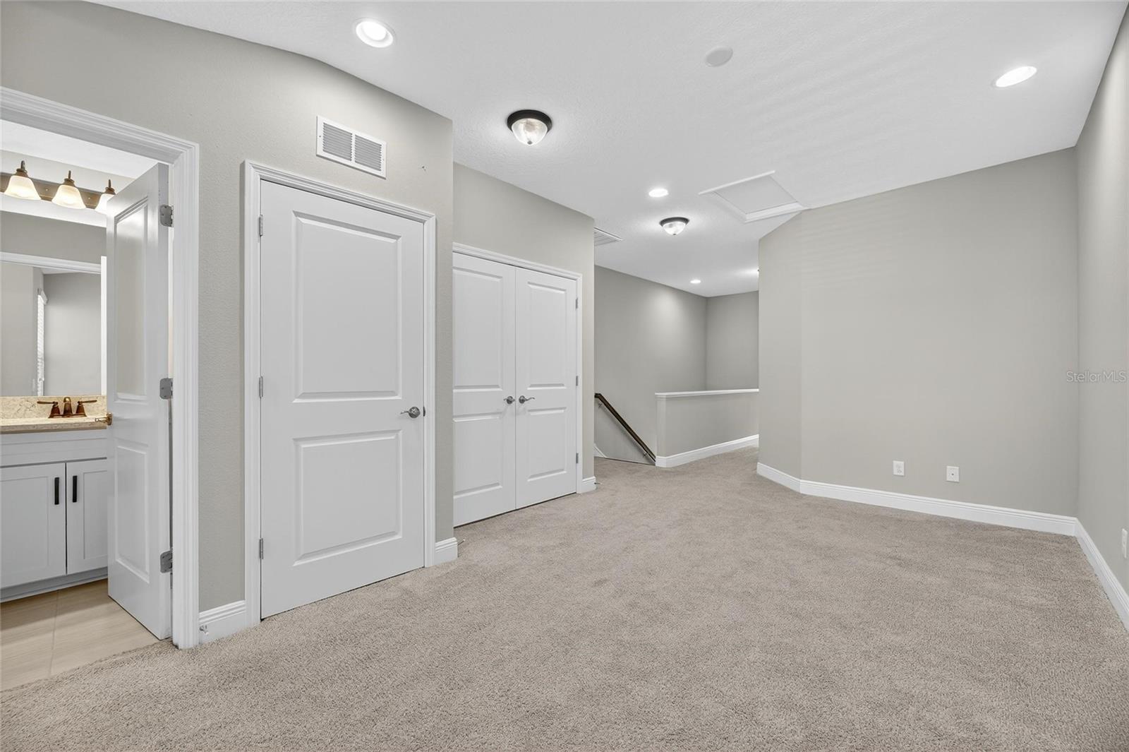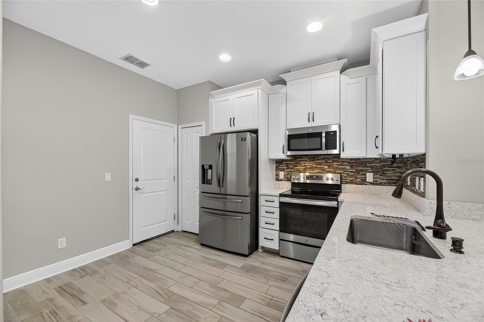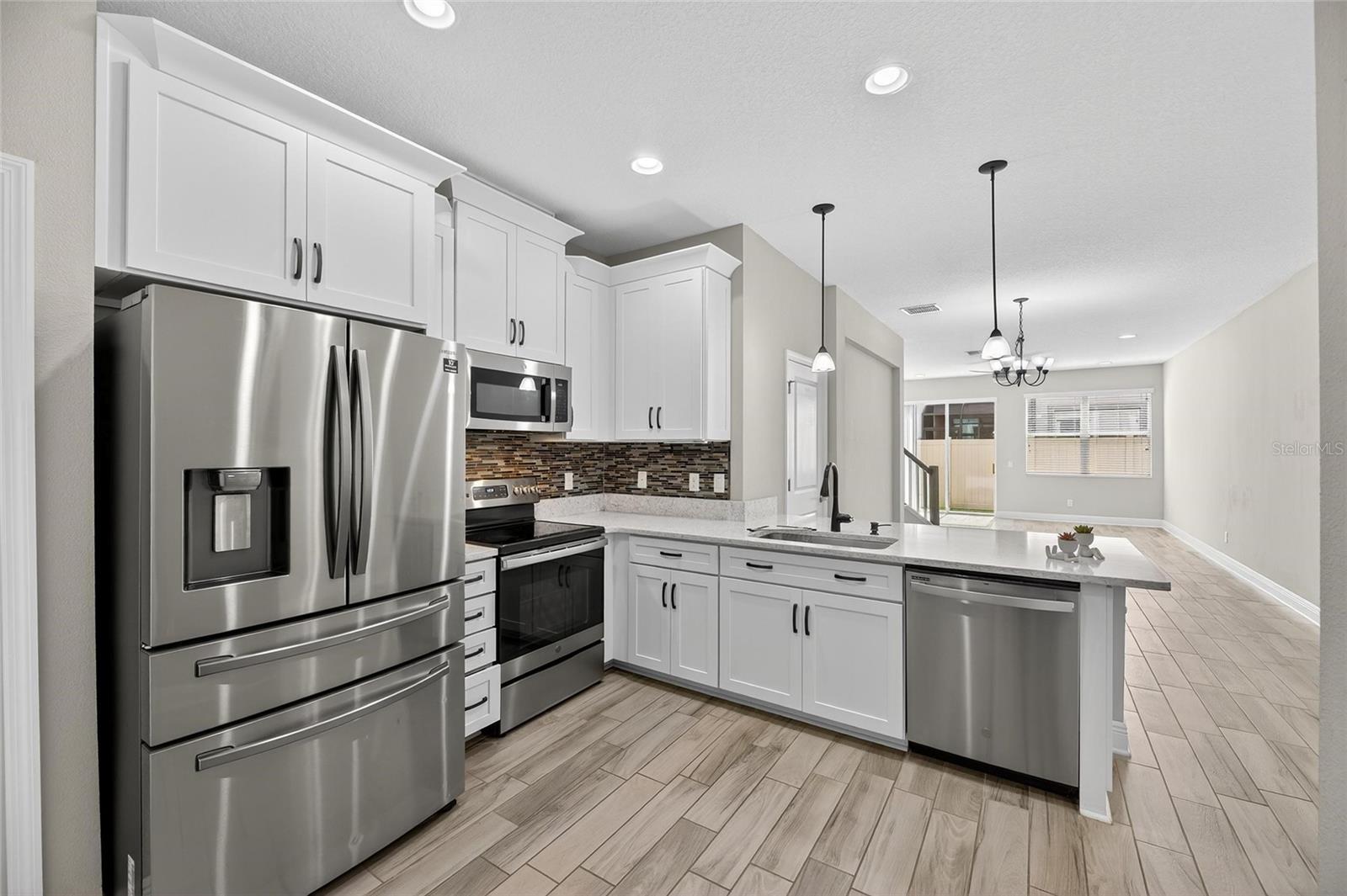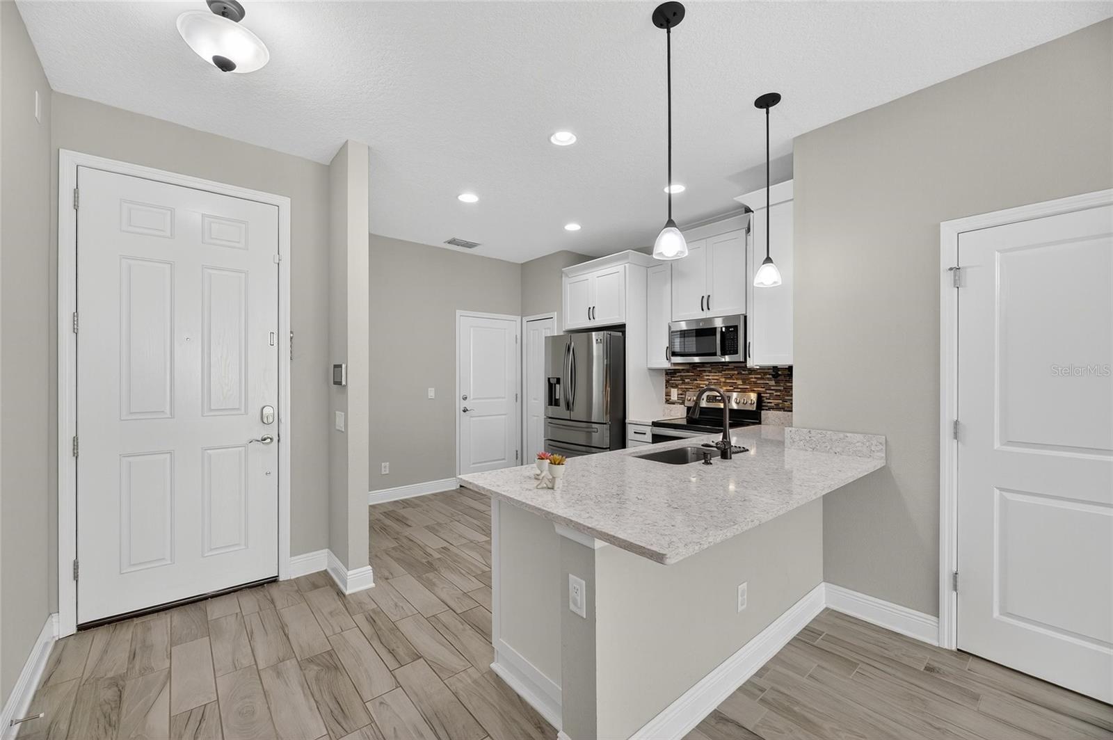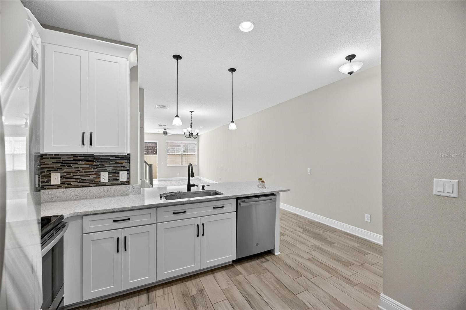 Welcome to this stunning 2-bedroom, 2.5-bathroom townhome located in the modern and stylish community of "Towns at Belleair Grove". This "Smart" home was built in 2020 and offers a spacious 1571 square feet of living space. As you enter, you will be greeted by luxury vinyl flooring throughout the downstairs area, which includes a spacious family room, kitchen, and half bath. The elevated ceilings and abundance of natural light create a bright and inviting atmosphere. The kitchen boasts quartz countertops, custom wood cabinets, stainless steel appliances, and an upgraded backsplash. Upstairs, you will find a generous loft area and a split bedroom floor plan, with two full bathrooms and a full-size laundry area for your convenience. The double-pane windows with hurricane shutters and warrantied items from manufacturers provide peace of mind. This home is a "Smart" home, which means you can control the A/C, garage door, security system all with the ease of your phone. The low maintenance fees include gated entrance, ground & pool maintenance, water, trash, sewer, and outside pest control. The "Towns at Belleair Grove" is a centrally located neighborhood that is great for traveling back and forth to Tampa, St. Pete, or Clearwater. It is also close to area attractions such as theme parks, museums, aquariums, airports, beaches, and the Pinellas Trail. The schools zoned for this area are Belcher Elem, Oak Grove Middle, and Largo High. This gated community welcomes pets and offers a recreation building and pool for its residents. NO CDD & HOA includes water, trash, sewer, community pool, and landscaping.