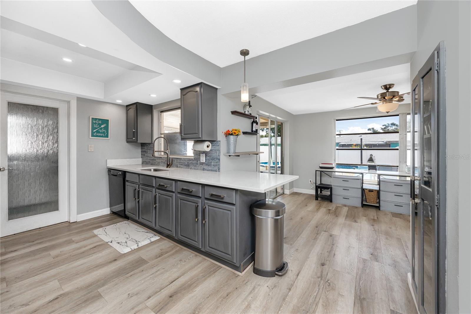 Welcome to 1271 Edenville Avenue in Clearwater, Florida, a beautifully updated Pinellas County home for sale in a quiet, family-friendly neighborhood just minutes from Clearwater Beach, St. Petersburg, and Tampa Bay amenities. This solid block-construction residence offers 3 bedrooms and 2 bathrooms, perfectly suited for both families searching for their next move and investors looking for a smart rental opportunity in one of Florida’s most desirable markets. Step inside to discover an open floor plan with newer vinyl flooring throughout, connecting bright living spaces with a modernized kitchen. Featuring newer appliances, wood cabinetry, stone countertops, a glass tile backsplash, and a custom built-in curio cabinet, the kitchen is designed for everyday function and entertaining alike. The home’s split-bedroom layout ensures privacy, while the primary bath is fully updated bathroom boasting a dual sink vanity and sleek black fixtures. One of the secondary bedrooms even offers a private side entrance, creating flexibility for a guest suite, in-law space, or potential rental. Additional features include a family room with sliders to the lanai, currently set up as a home office, and an indoor laundry room with extra storage. The backyard is a standout, with space already set up for an above-ground pool yet large enough to easily accommodate a full in-ground pool with room to spare. A storage shed adds convenience, while a newer vinyl fence encloses the property for privacy and peace of mind. Recent upgrades make this Clearwater home truly move-in ready: a new roof in 2024, HVAC system in 2021, and solar panels installed in 2020 for energy efficiency and reduced monthly utility costs — a strong plus for long-term homeowners and investors seeking ROI. Centrally located, this home offers easy access to Clearwater’s top schools, shopping centers, dining districts, and Gulf Coast attractions. Families will love the convenience, while investors will appreciate the high rental demand in this area. If you’ve been searching for a Clearwater home for sale that combines modern upgrades, energy efficiency, and a prime location in the heart of Pinellas County, 1271 Edenville Avenue delivers the perfect balance of value and lifestyle.