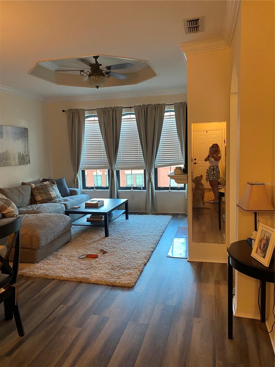 The Grand Bellagio is a gated waterfront property located on Tampa Bay. This 3rd floor, one bedroom/one bath condo features fresh neutral paint throughout. The living, dining & master bedroom area features crown molding. The living area has coffered ceiling, updated ceiling fan and a built-in Entertainment Center with gas fireplace. The 12" x 10' den may be used as your home office or additional sleeping area for guests. The Master bedroom features a spacious sitting area and oversized walk-in closet with updated closet system. New hurrcan windows ,Full size washer/dryer is conveniently located in the unit. Community amenities include a heated pool/spa, 24 hour fitness center, playground, lighted tennis courts and free car wash area. Enjoy walking or jogging the 1.5 mile paved path overlooking Tampa Bay. This is a PET friendly community. Upon entry through the 24/7guard pavilion, you will feel you have arrived in Paradise