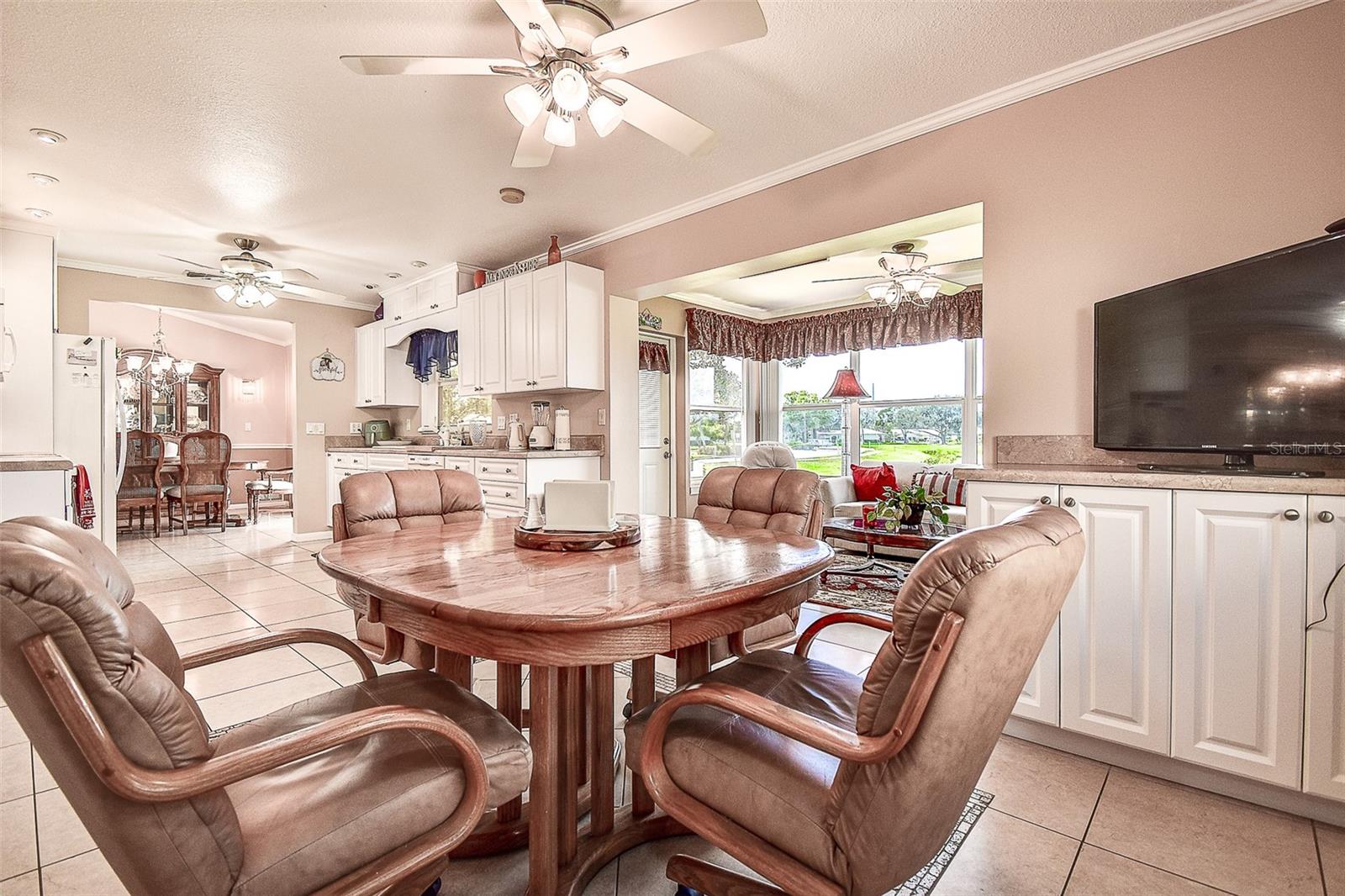 BEATIFUL AND SPACIOUS WATER VIEW IN THE LAKES. Step inside and you’ll immediately feel the airiness. With over 1,600 square feet of living space and soaring vaulted ceilings, this two-bedroom, two-bath home exudes light, space, and effortless flow. The living and dining area has that open-concept energy, made even better by the crown molding, tile flooring, and natural light filtering in through double-pane windows dressed with sleek window treatments. The galley kitchen is located between the dining room and a separate breakfast nook which is big enough to be an office. You have water views from both dining areas and the adjacent family room, which opens onto the back deck. The primary suite is generously sized with a walk-in closet, and the en-suite bathroom. The second bedroom and hall bath are on the other side of the house, for a split-bedroom layout. Inside laundry with utility sink. Two-car spacious garage with double driveway for off-street parking. Low maintenance HOA $163.17/mo provides pool, clubhouse, lawn irrigation and maintenance. Easy approach to PIE and TPA airports. The Roof is a 50-year roof with 45 years of life left in it. Attic over garage has a floor around the drop-down stairs.