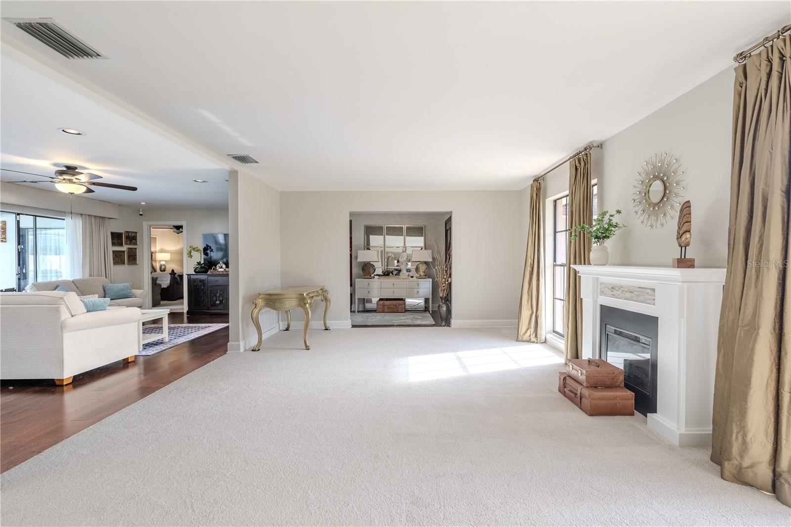 Welcome to a truly exceptional residence in Coachman Ridge, where timeless craftsmanship meets refined Florida living. Stepping through the custom solid-wood double entry doors imported from Malaysia, you are welcomed into a refined foyer that immediately sets the tone for the craftsmanship and thoughtful design throughout this home. As you move into the main living areas, rich wood and customized flooring flows gracefully through the living spaces. The carpeted formal living room with an electric fireplace, is bathed in natural light from floor-length windows and offers seamless access to the formal dining room—an elegant setting enhanced with crown moulding, elegant porcelain tile flooring and custom wall detailing, ideal for hosting memorable gatherings. Continuing into the heart of the home, the family room with custom window treatments which add both convenience, including select motorized feature, unfolds as a warm and inviting space, designed for both comfort and connection. Expansive sliding glass doors draw your eye outward, creating a seamless transition to the outdoor lanai and pool areas while filling the interior with natural light. The kitchen , updated in 2020, is thoughtfully positioned to overlook the family room and features oversized Italian tile flooring, quartz countertops, and customized wood cabinetry that balances beauty with function. An adjacent eat-in dining area, also finished with Italian tile, with French doors opening to the lanai offers a bright and welcoming space for everyday meals. A well-appointed laundry room just down the hallway adds a finished touch with matching kitchen cabinetry and Italian tile flooring. The primary suite is a serene retreat tucked away for privacy, offering generous proportions, customized wall treatments, with direct access to the lanai through the sliding doors. The spa-inspired primary en-suite bathroom showcases a walk in closed, additional built in closet, private toilet closet, elegant custom inlayed tile work, dual sinks, refined finishes that create a calming, resort-like experience. Three additional bedrooms are spacious and versatile able to accommodate king beds. The second bedroom has private access from the primary suite, perfect for a sitting room, home office, or nursery. Guest bathroom updated in 2019, features granite countertop, wood cabinetry, Home Network speaker with integrated LED lighting, and thoughtful design details throughout. A fully equipped secondary kitchen area adds exceptional flexibility and ideal for entertaining. Step outside to discover true Florida living at its finest. The screened lanai and pool create a private oasis, with the pool deck freshly repainted in 2025 and an expansive enclosure designed for year-round enjoyment. Covered seating areas with ceiling fans, a dedicated grilling space, and lush landscaping provide multiple areas to relax or entertain. The fully fenced backyard includes garden features and dual storage sheds, blending beauty with practicality. Additional highlights include a large dog door, circular driveway, a peaceful neighborhood setting with sidewalks, streetlights, and mature trees. Centrally located in Clearwater with easy access to Tampa Bay’s airports, award-winning beaches, major shopping and dining destinations, parks, and everyday conveniences, Coachman Ridge offers a peaceful residential setting that blends privacy, walkability, and exceptional connectivity to everything the region has to give.